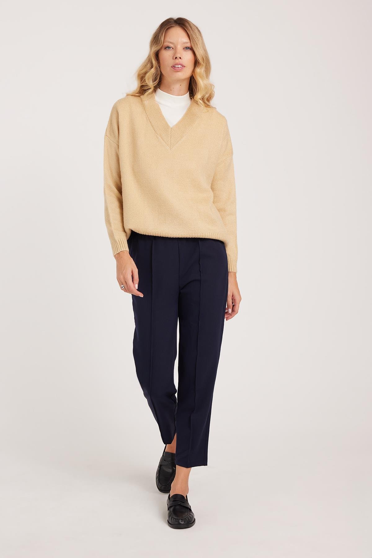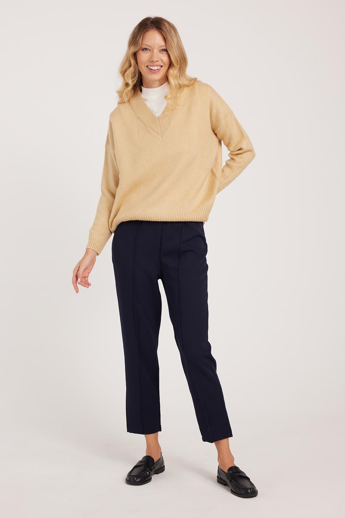 Kadın Relax Fit Rahat Kesim Yüksel Bel Düz Paça Beli Lastikli Bağcıklı Lacivert Pantolon (PN250047-47)
