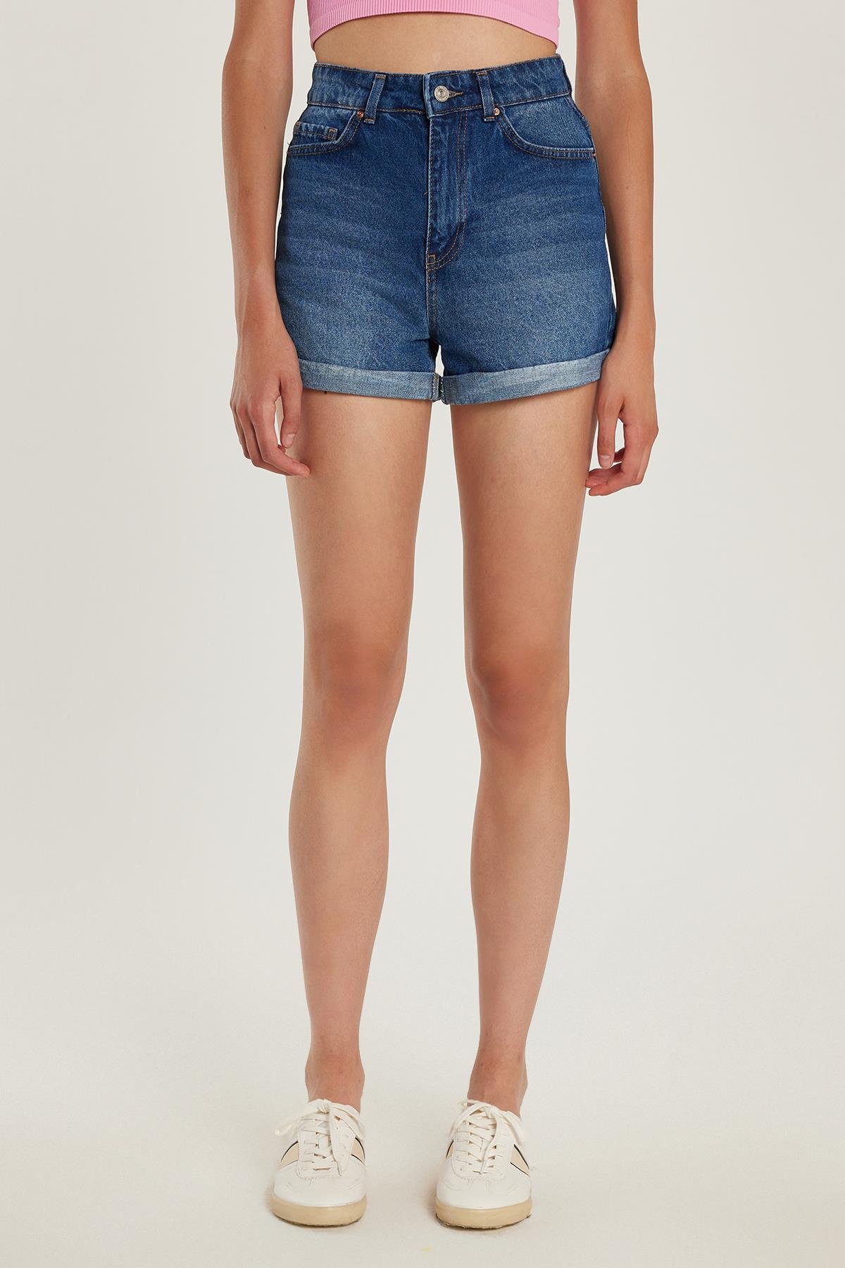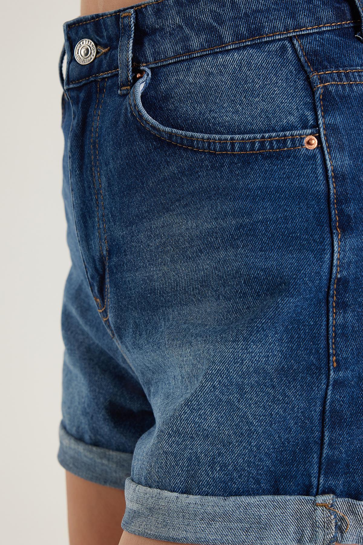 Kadın Slim Fit Dar Kesim %100 Pamuk Paça Katlamalı Açık Mavi Jean Kot Şort (KDN25254-8201)