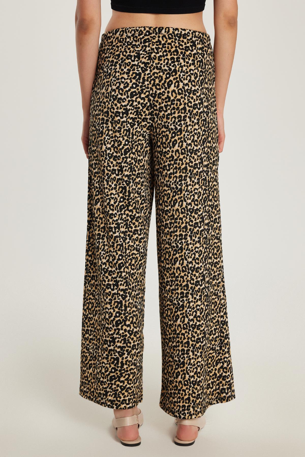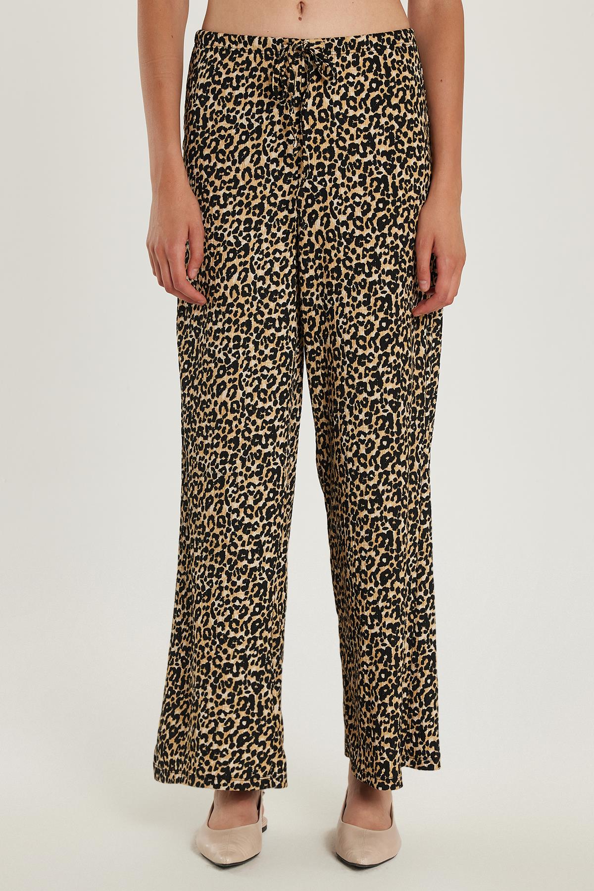 Kadın Slim Fit Dar Kesim Beli Lastikli Bağlamalı Leopar Desenli Pantolon (KDN25091-4500)