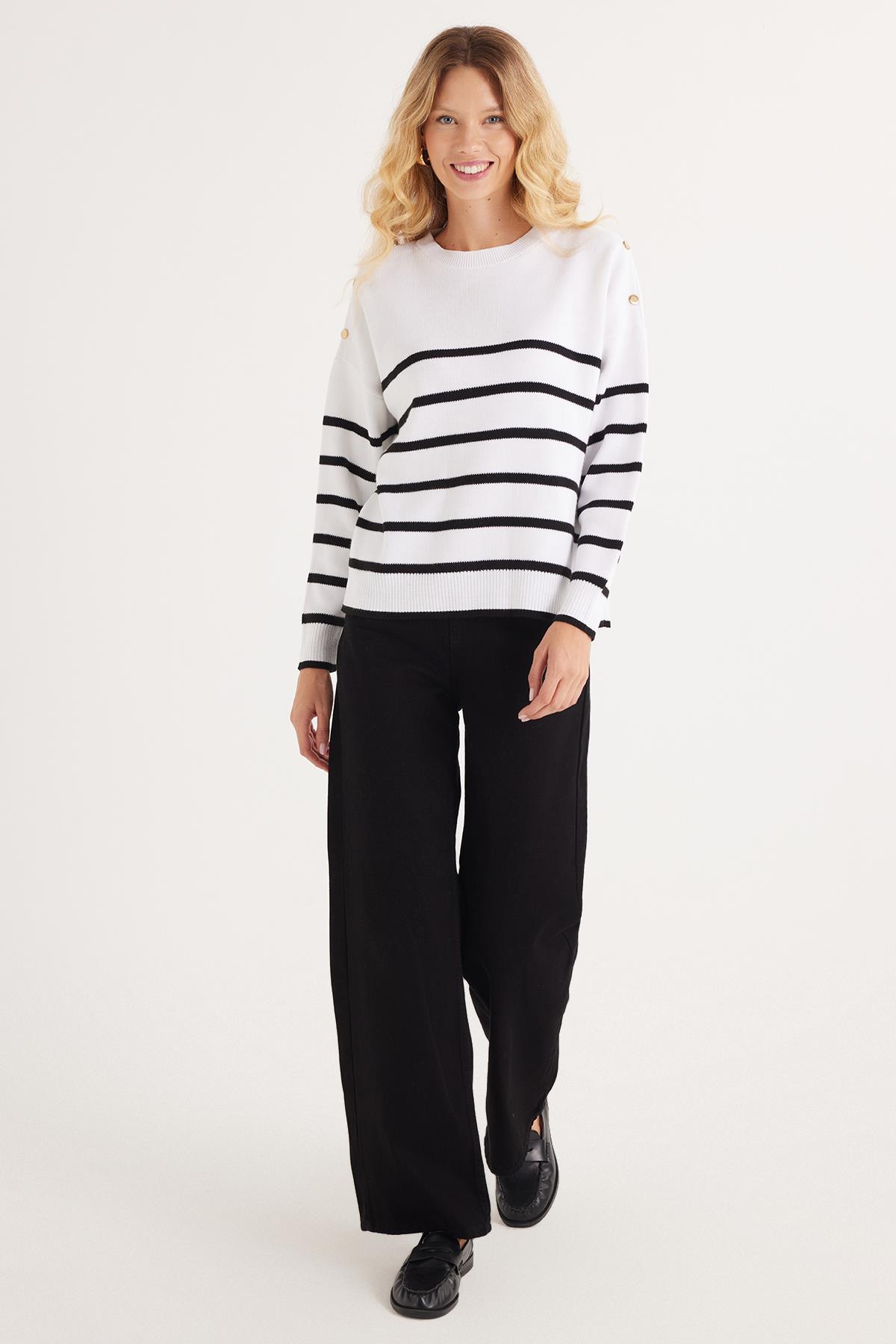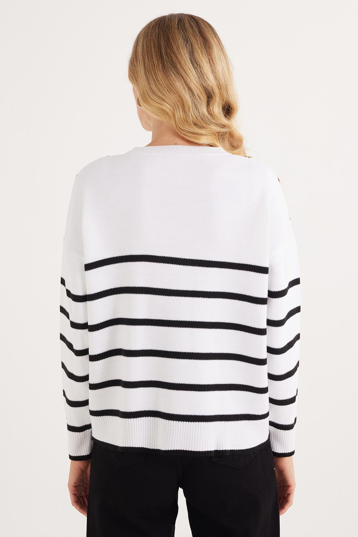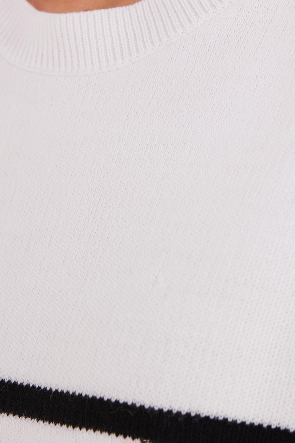 Kadın Slim Fit Dar Kesim Bisiklet Yaka Çizgili Beyaz Kazak (BYKZ2515-01)