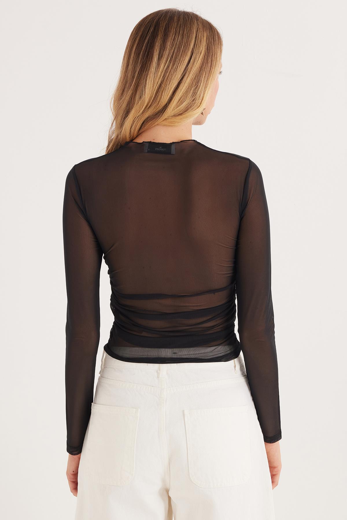 Kadın Slim Fit Dar Kesim Bisiklet Yaka Siyah Body