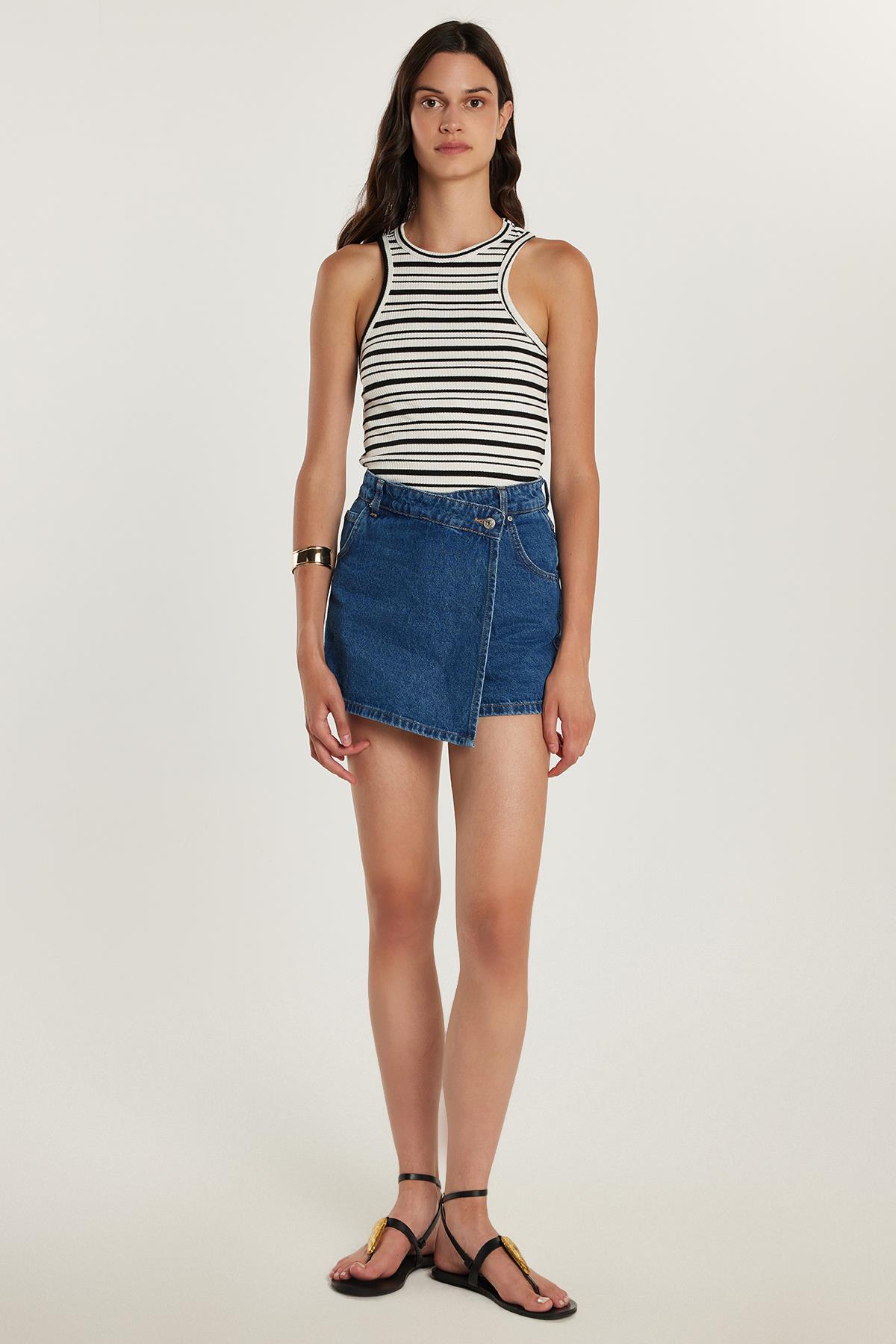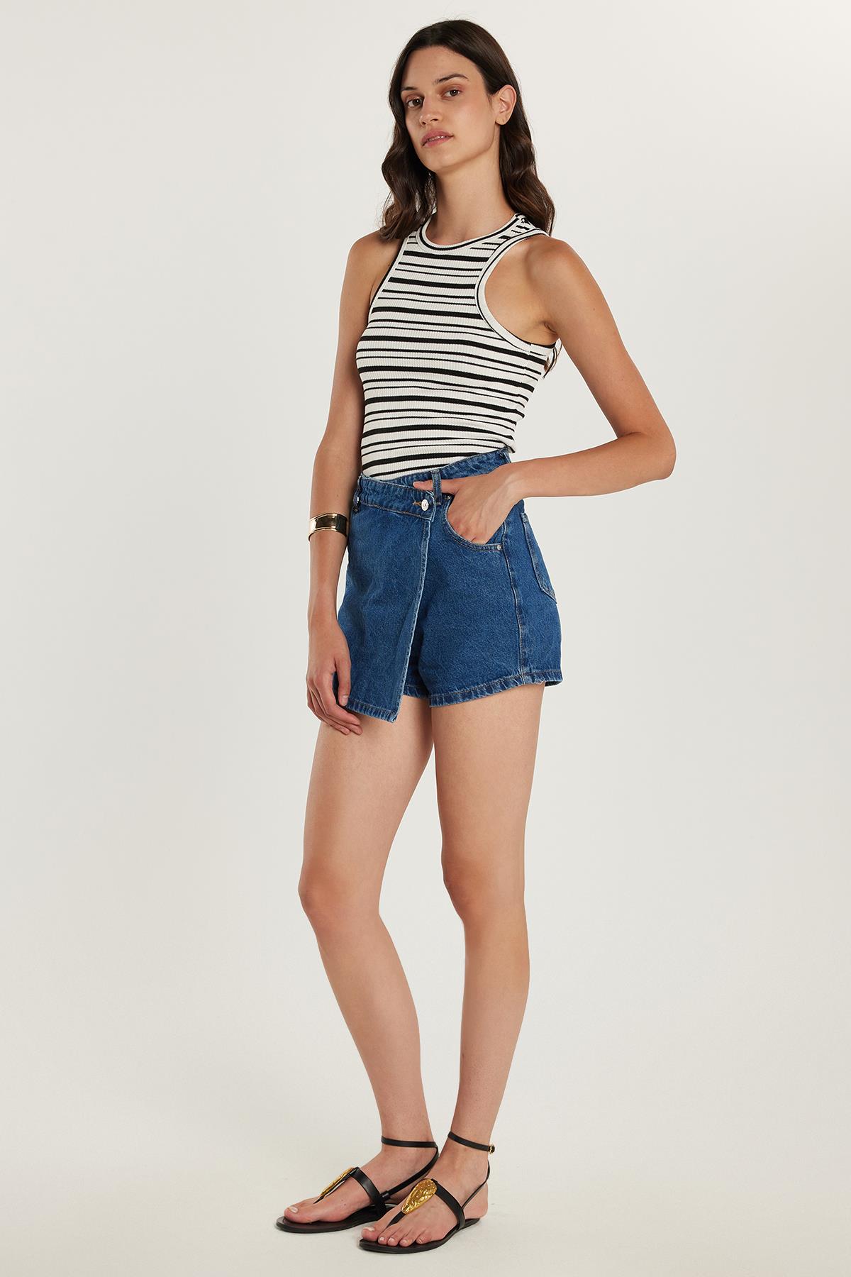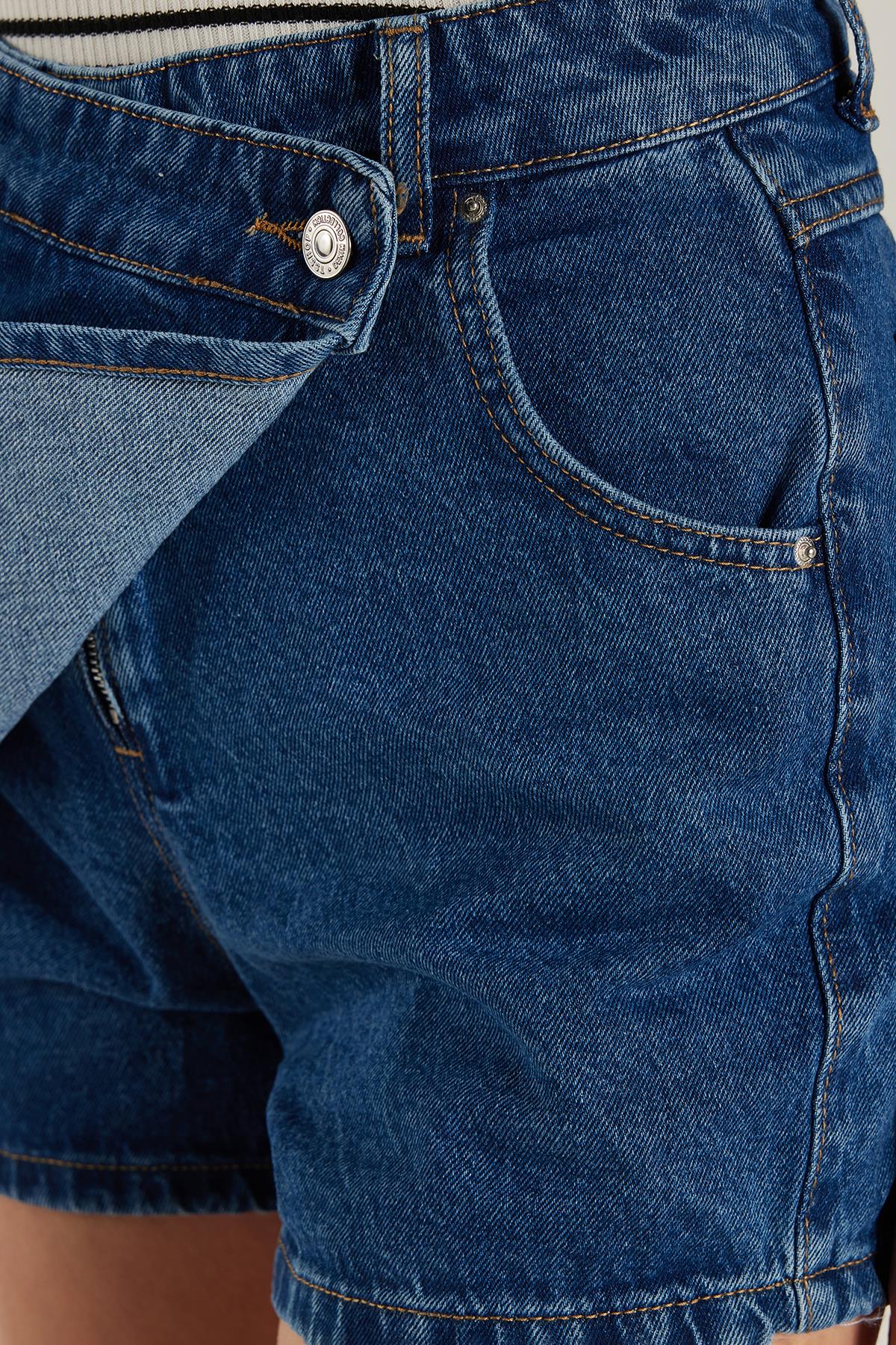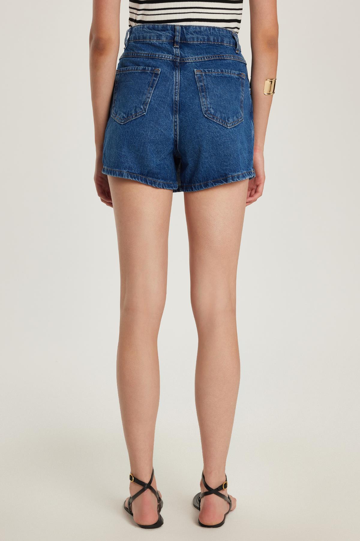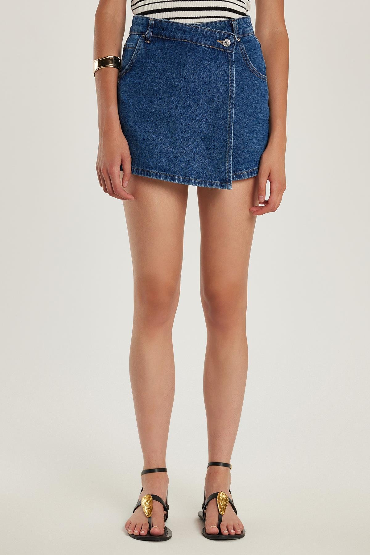 Kadın Slim Fit Dar Kesim Çift Cepli Açık Koyu Mavi Şort Etek