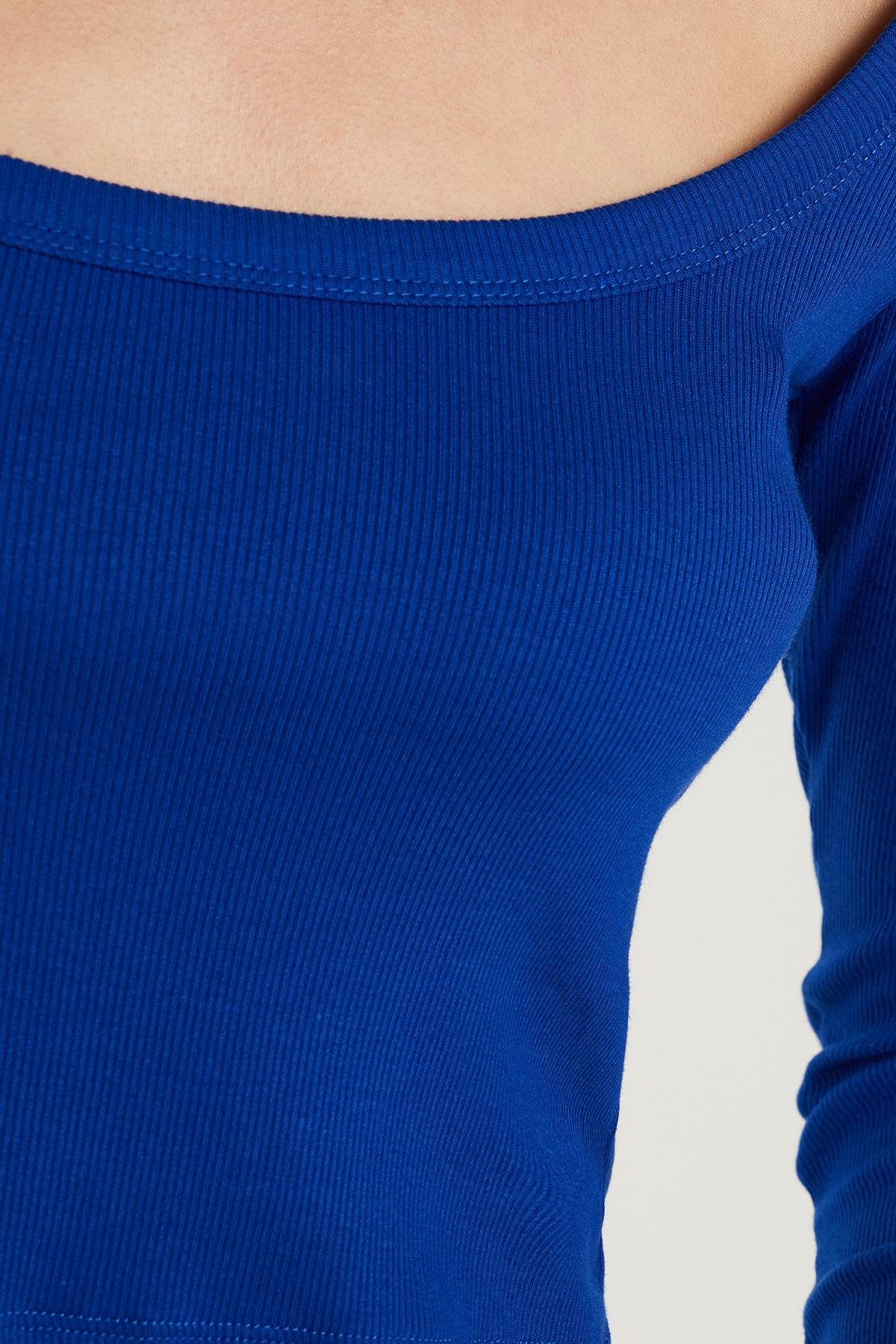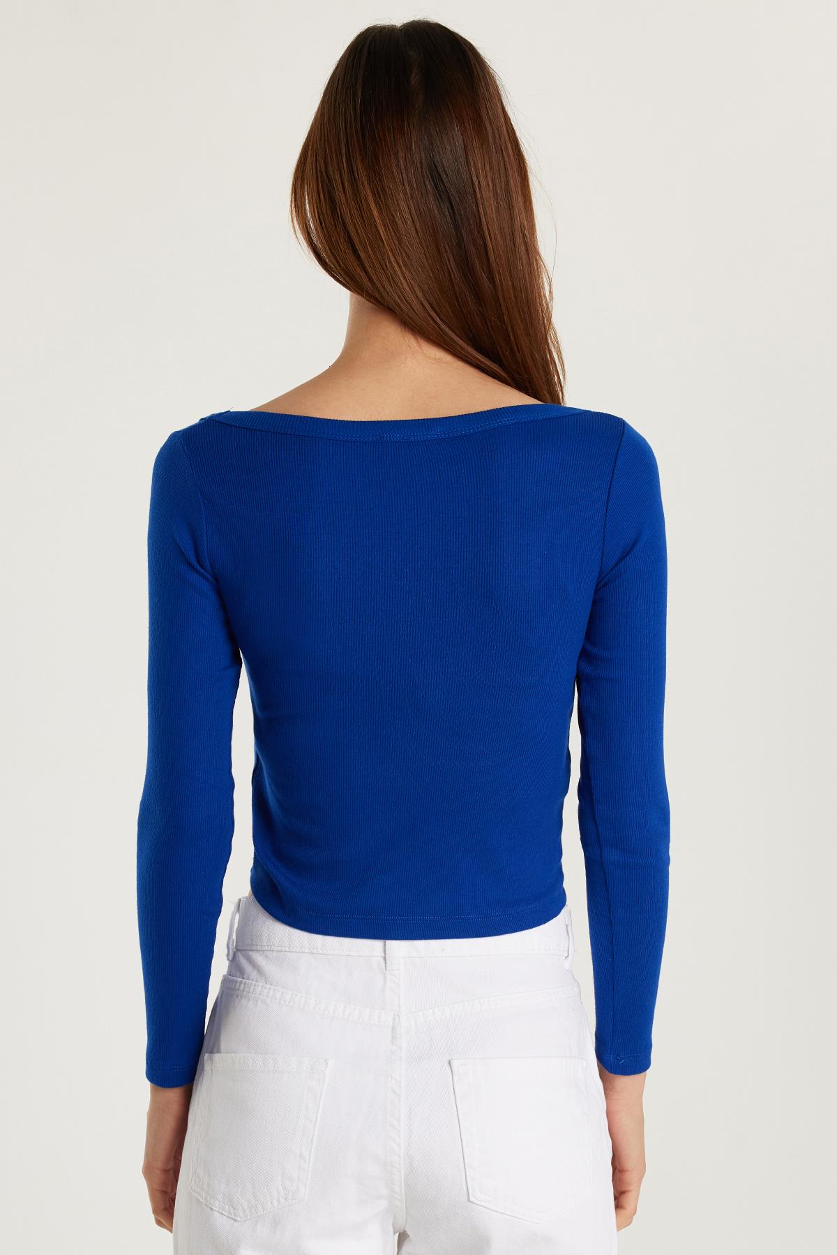 Kadın Modal Kumaş Slim Fit Dar Kesim Kare Yaka Mavi Bluz