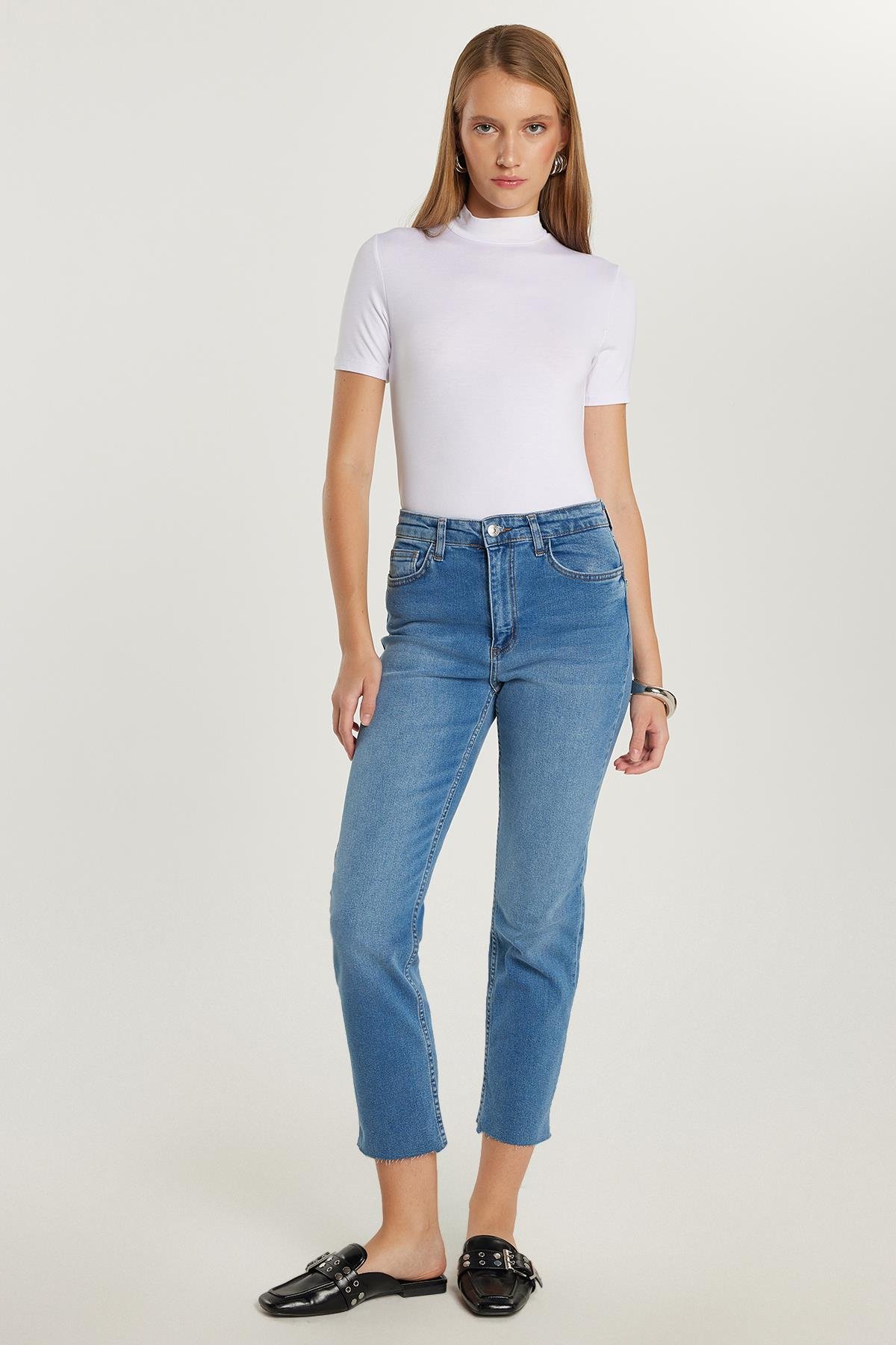 Kadın Slim Fit Dar Kesim Kısa Boru Paça Mavi Jean Kot Pantolon