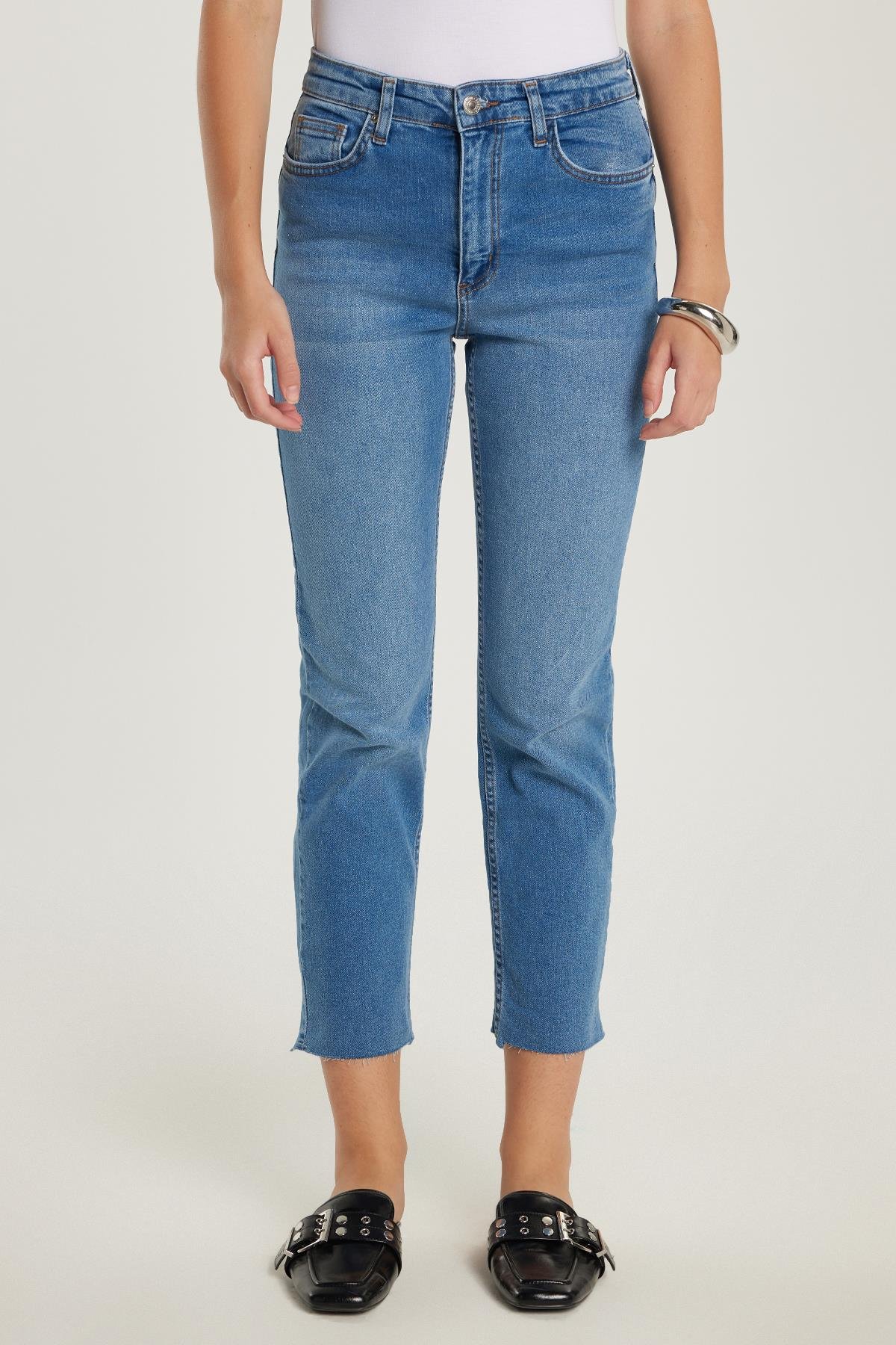 Kadın Slim Fit Dar Kesim Kısa Boru Paça Mavi Jean Kot Pantolon (KDN25242-3002)