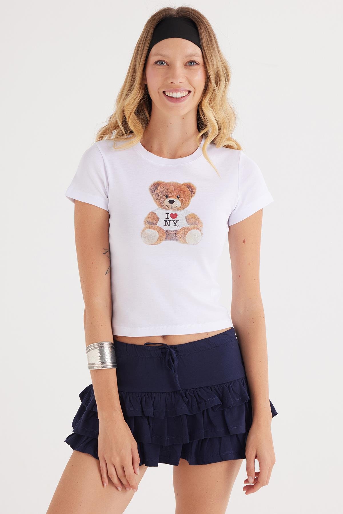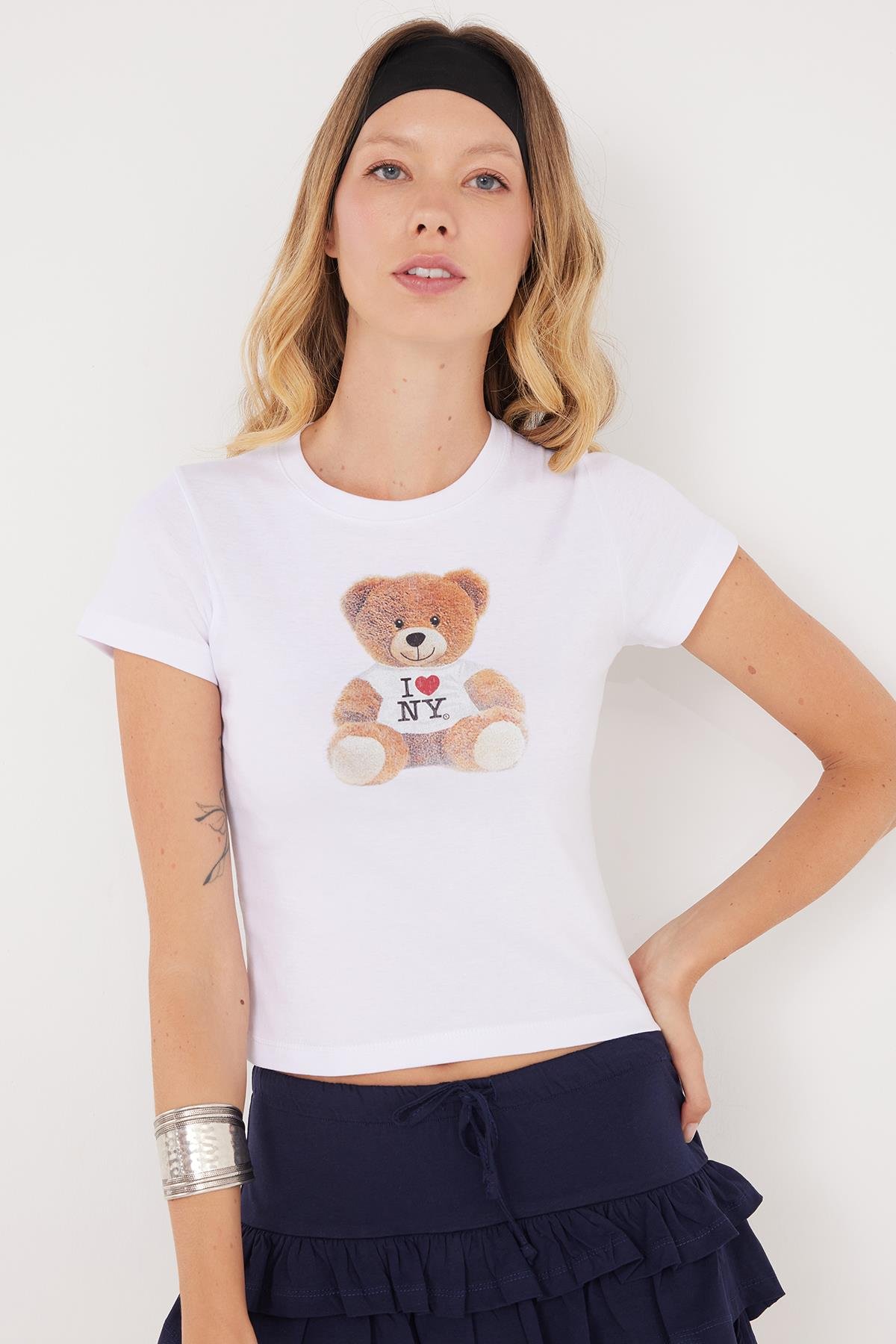 KADIN RİBANALI AYICIK BASKILI 9437 TİŞÖRT
