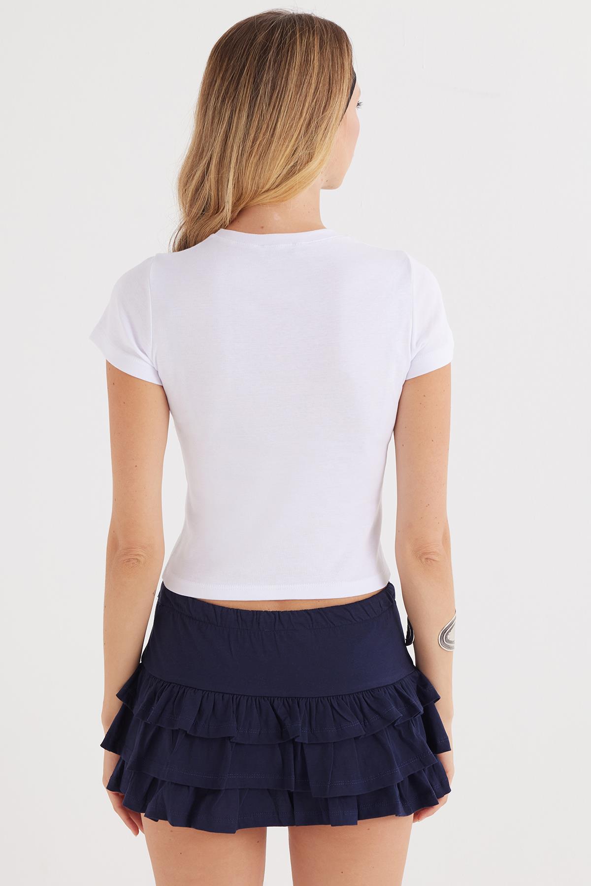 Kadın Slim Fit Dar Kesim Kısa Kollu Bisiklet Yaka Baskılı Beyaz Tişört (KTS25009-1)