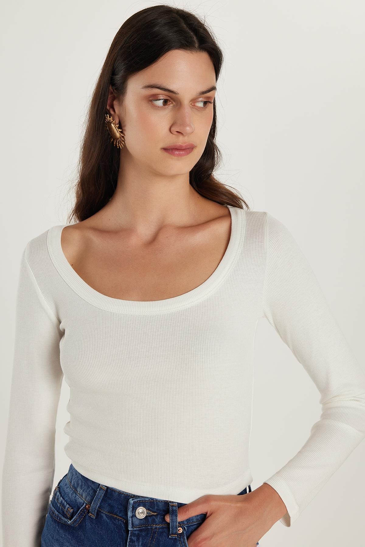 Kadın Slim Fit Dar Kesim Kısa Kollu Geniş Yaka Ekru Bluz