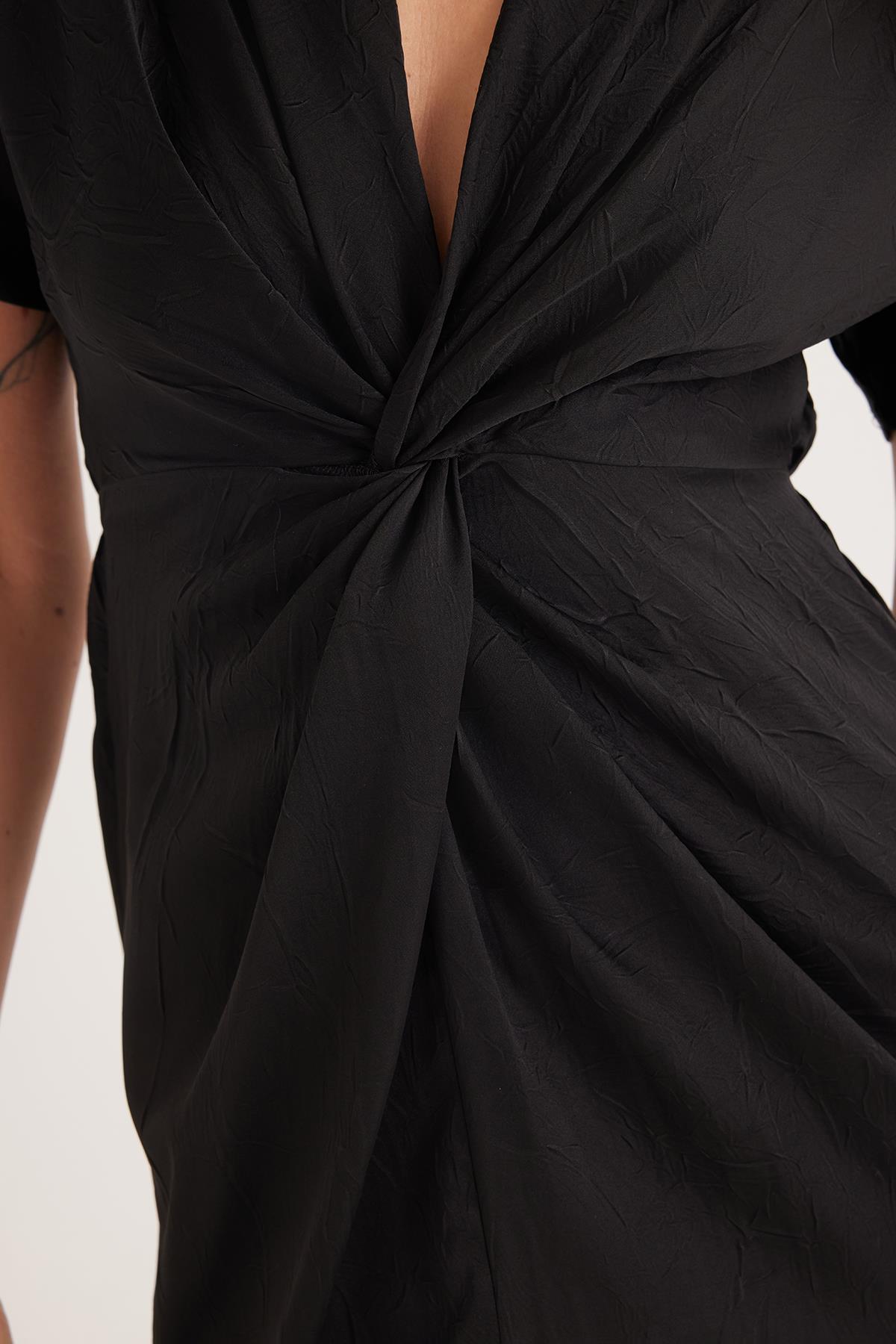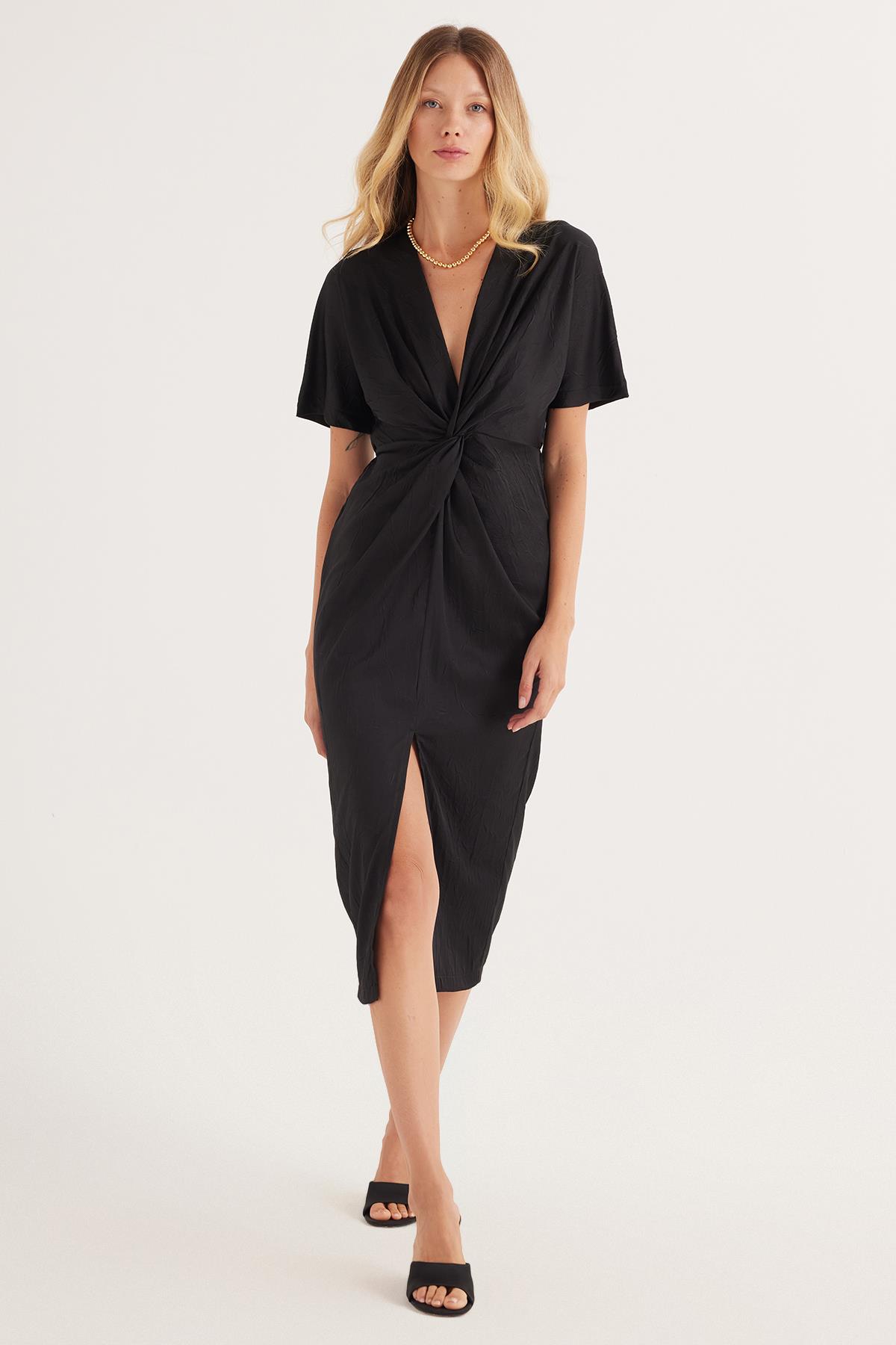Kadın Slim Fit Dar Kesim Kısa Kollu V Yaka Siyah Elbise