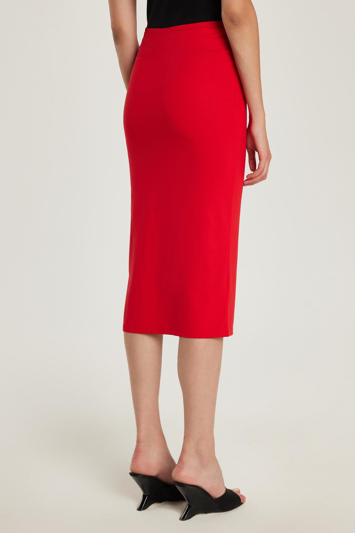 Kadın Slim Fit Dar Kesim Midi Boy Kırmızı Etek (KDN25166-06)