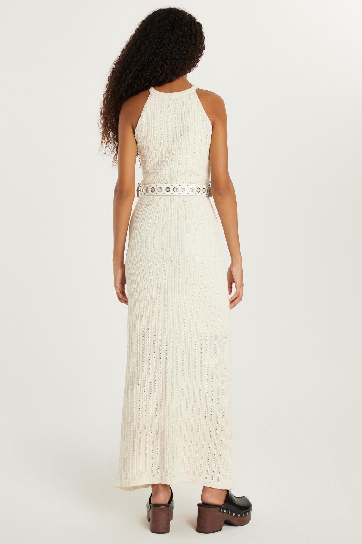 Kadın Slim Fit Dar Kesim Örgü Desen Bisiklet Yaka Ekru Elbise