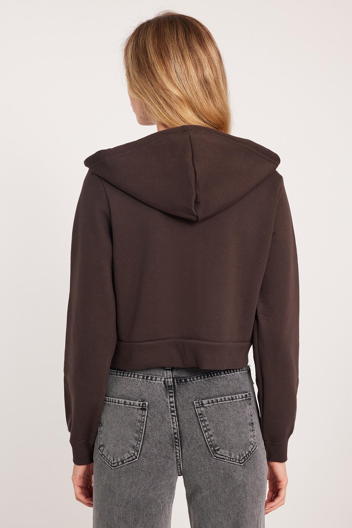 Kadın Slim Fit Dar Kesim Pamuklu Çift Cepli Kapüşonlu Fermuarlı Kahverengi Hırka (BYKZ2525-07)