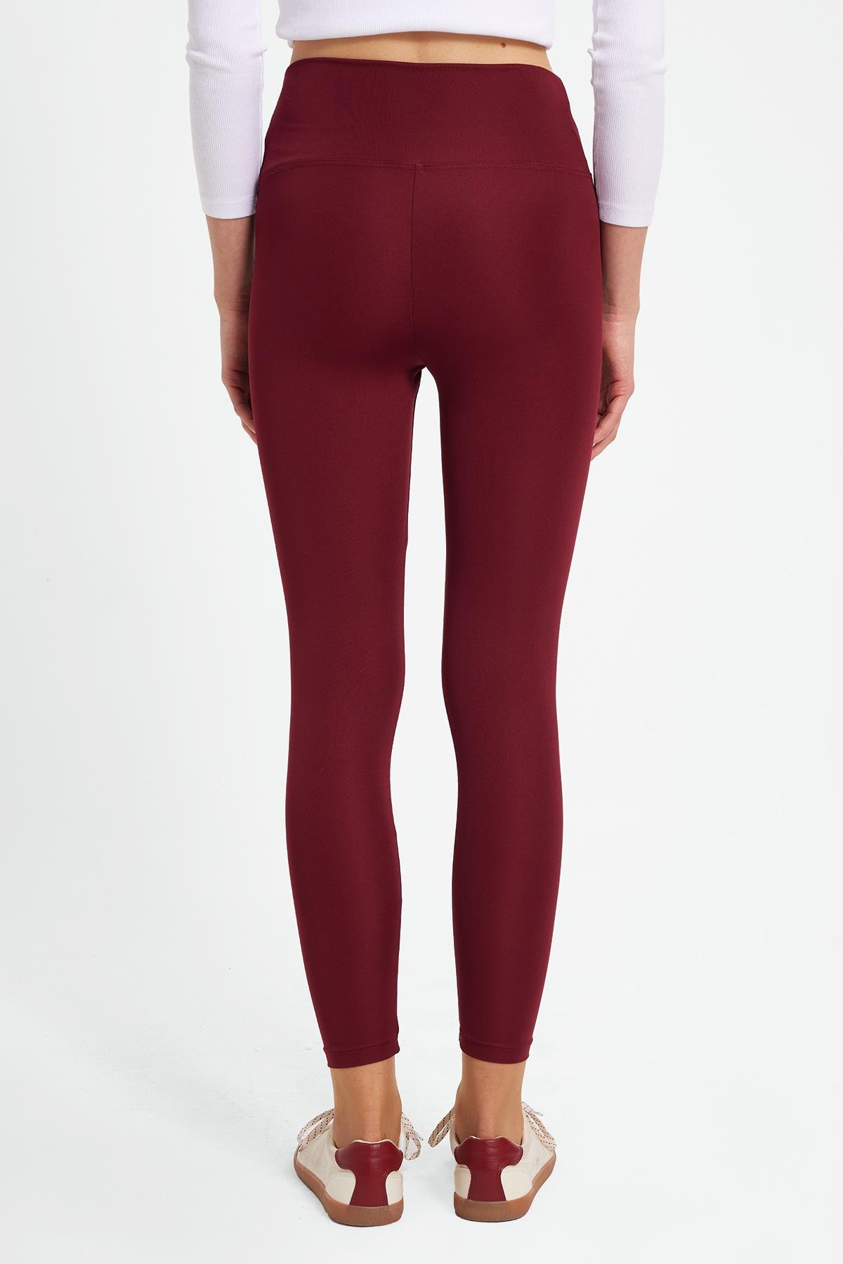Kadın Slim Fit Dar Kesim Scuba Kumaş Beli Lastikli Bordo Tayt (TAYT2502-08)