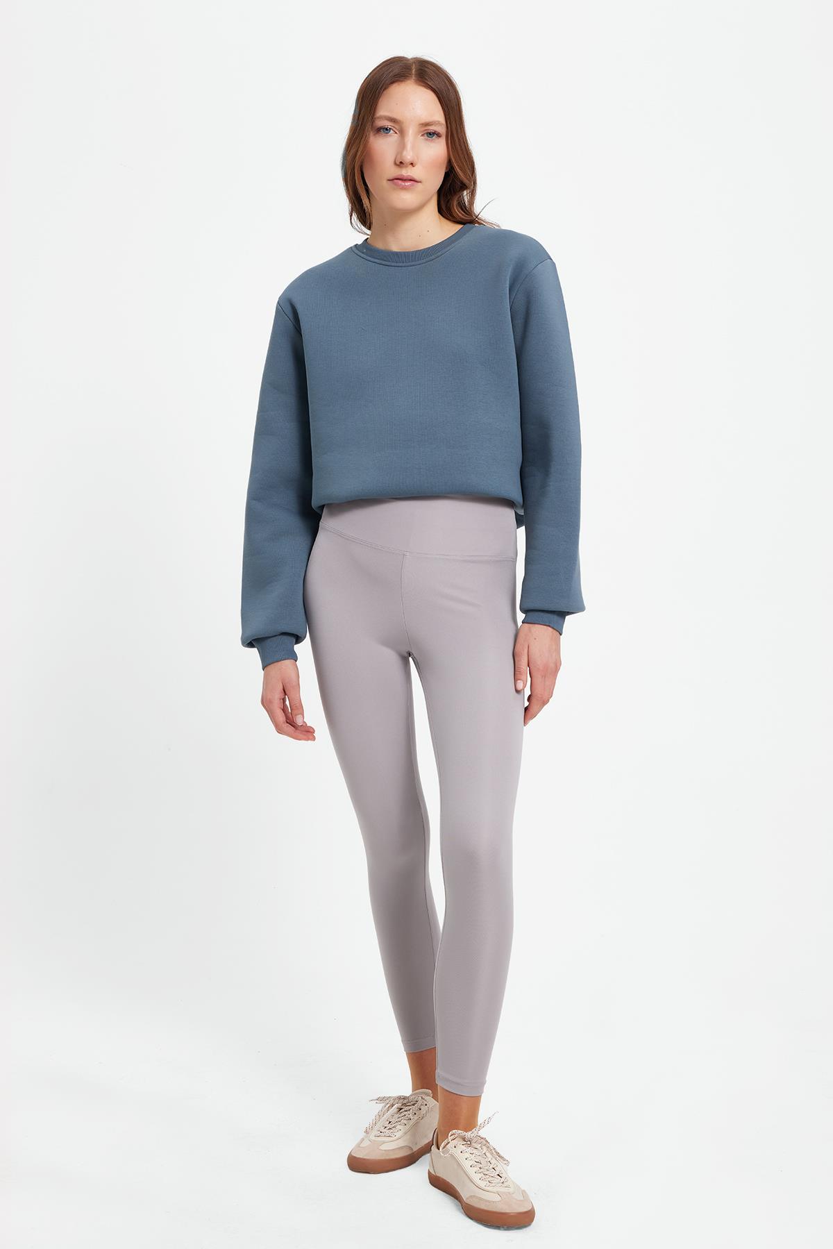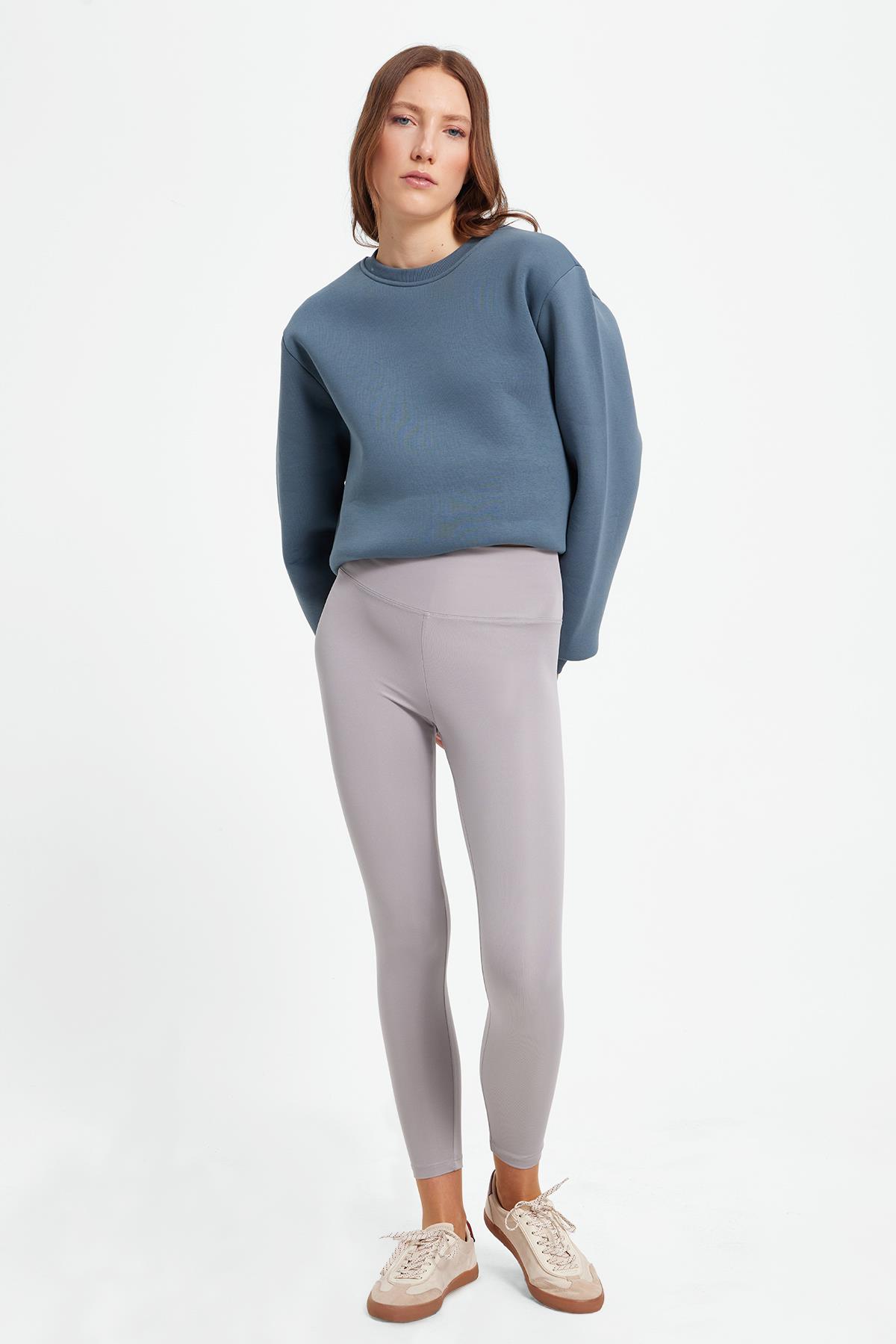 Kadın Slim Fit Dar Kesim Scuba Kumaş Beli Lastikli Gri Tayt (TAYT2502-11)