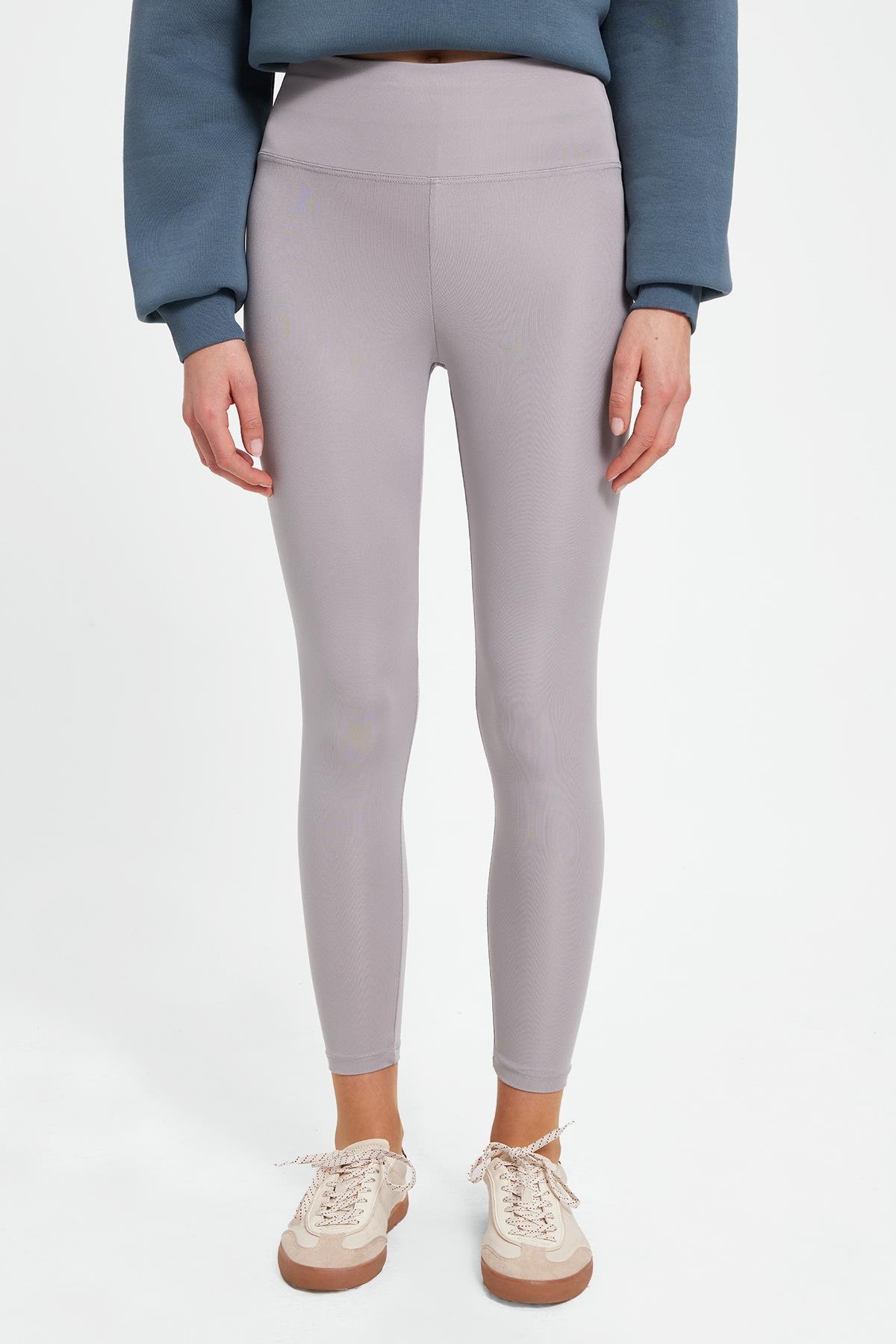 Kadın Slim Fit Dar Kesim Scuba Kumaş Beli Lastikli Gri Tayt