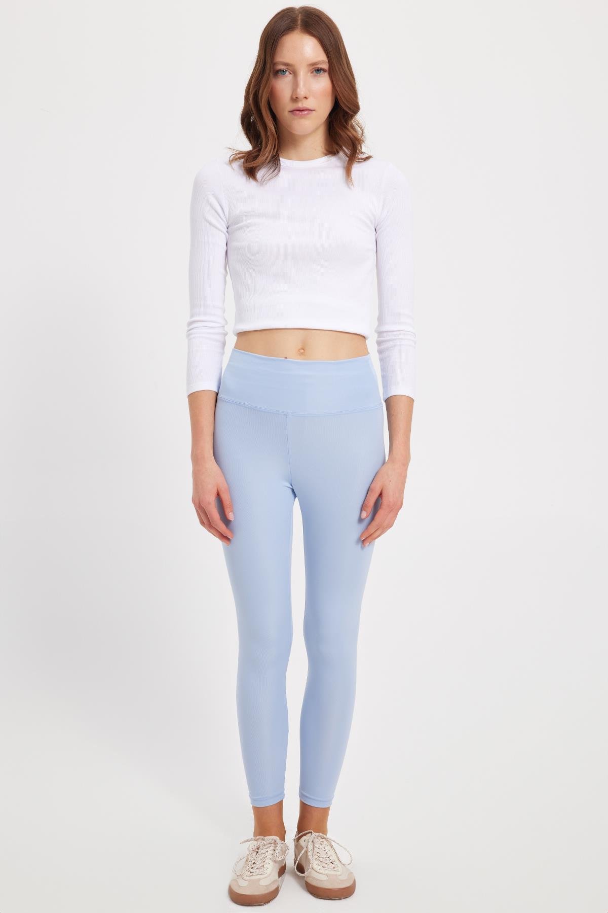 Kadın Slim Fit Dar Kesim Scuba Kumaş Beli Lastikli Mavi Tayt (TAYT2502-22)