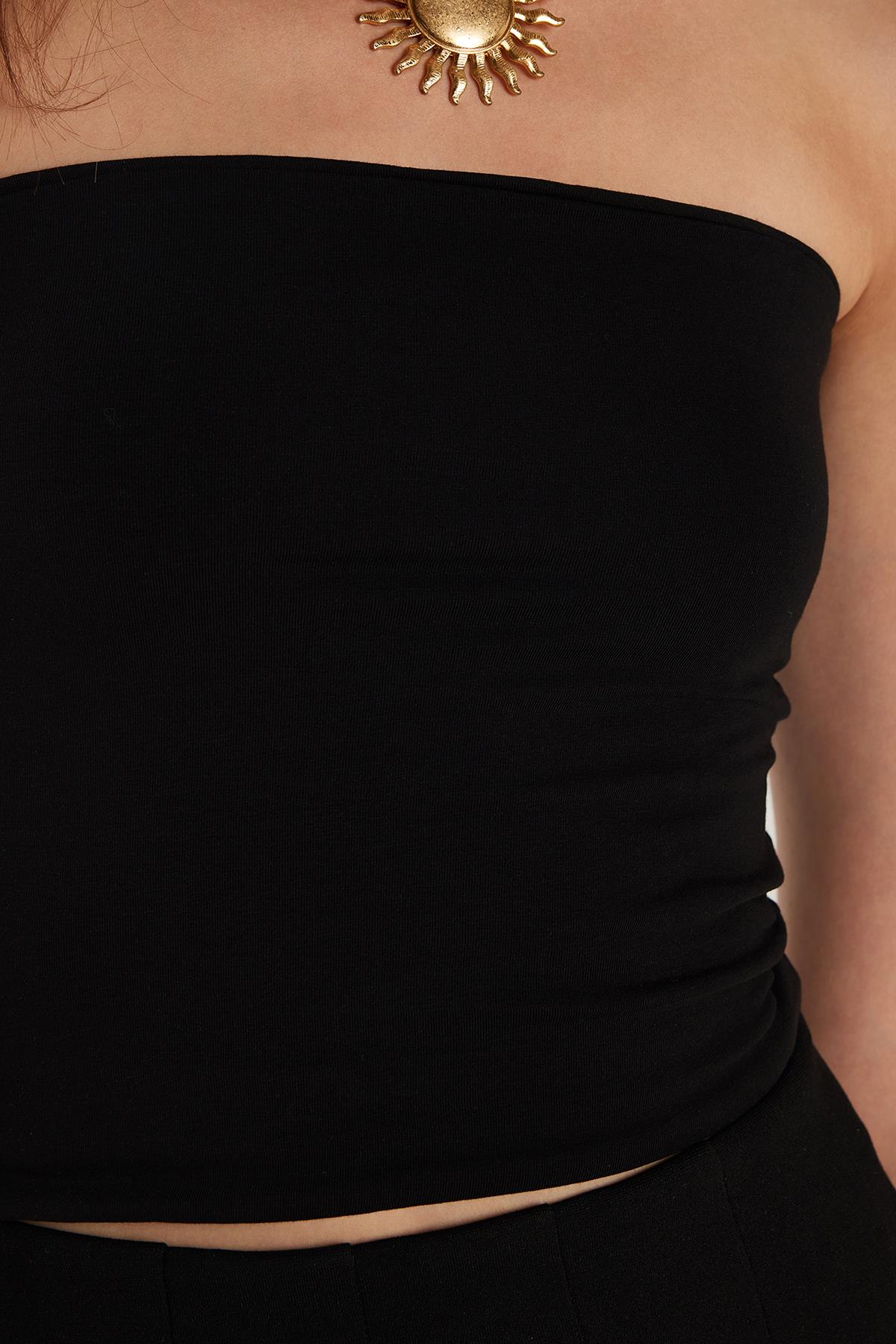 Kadın Slim Fit Dar Kesim Straplez Siyah Body