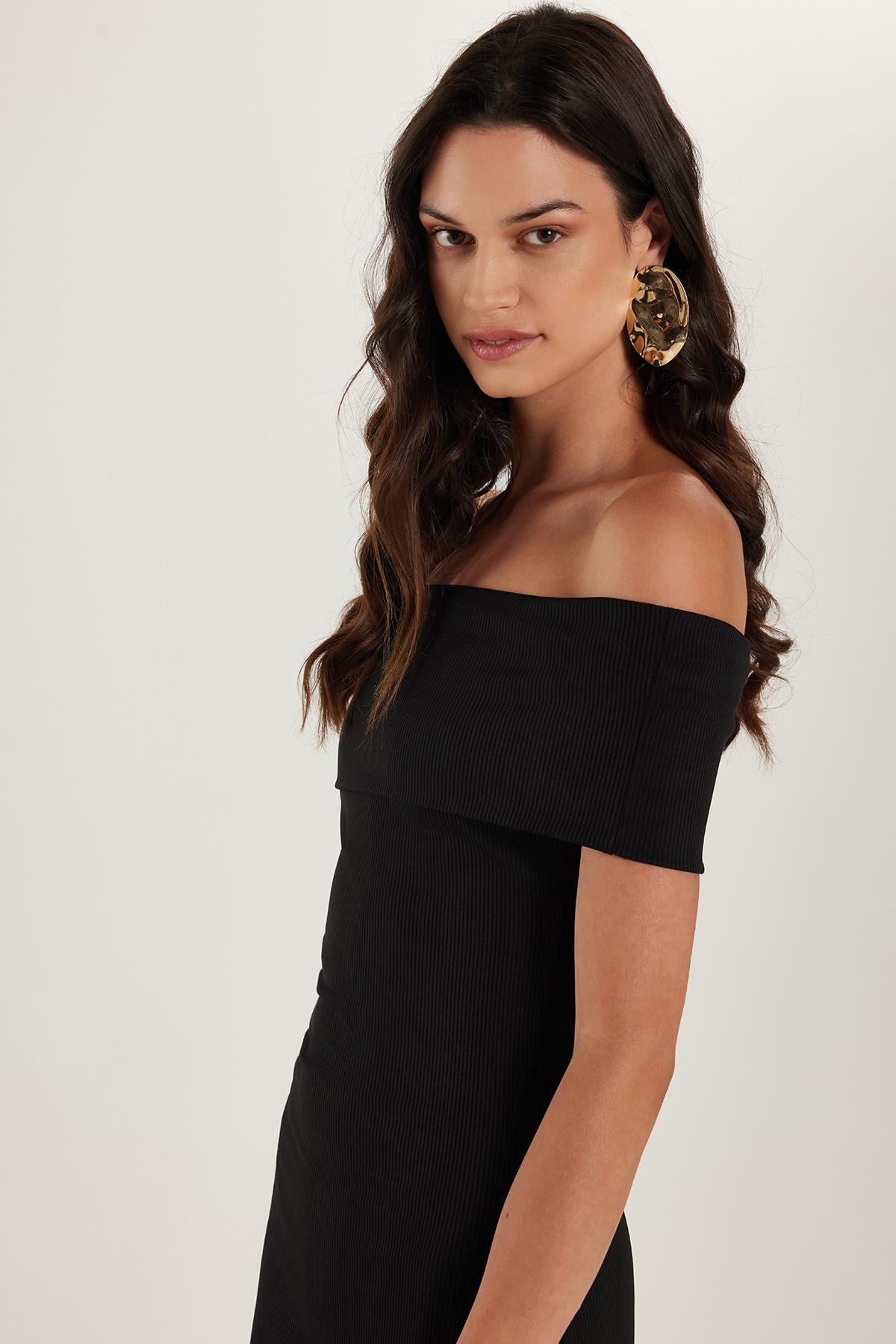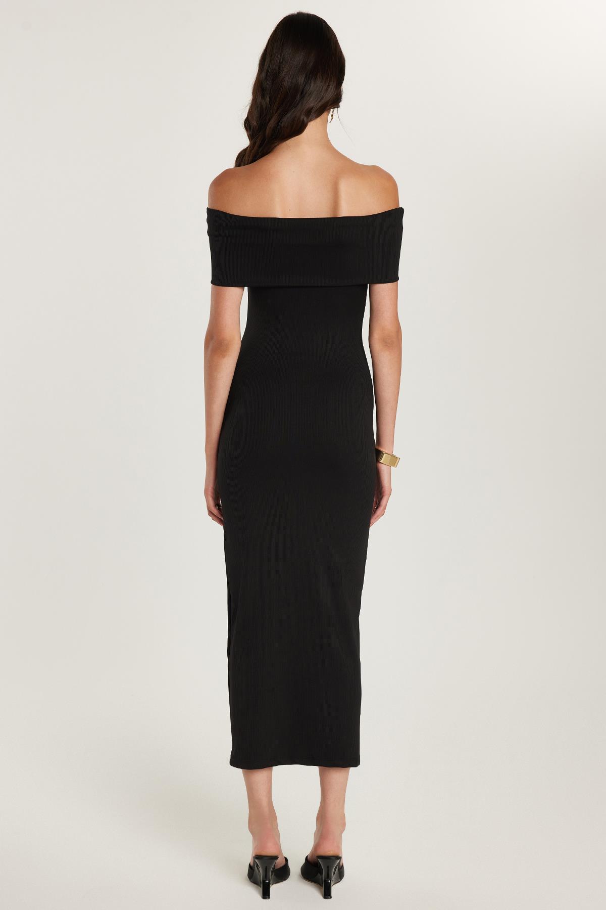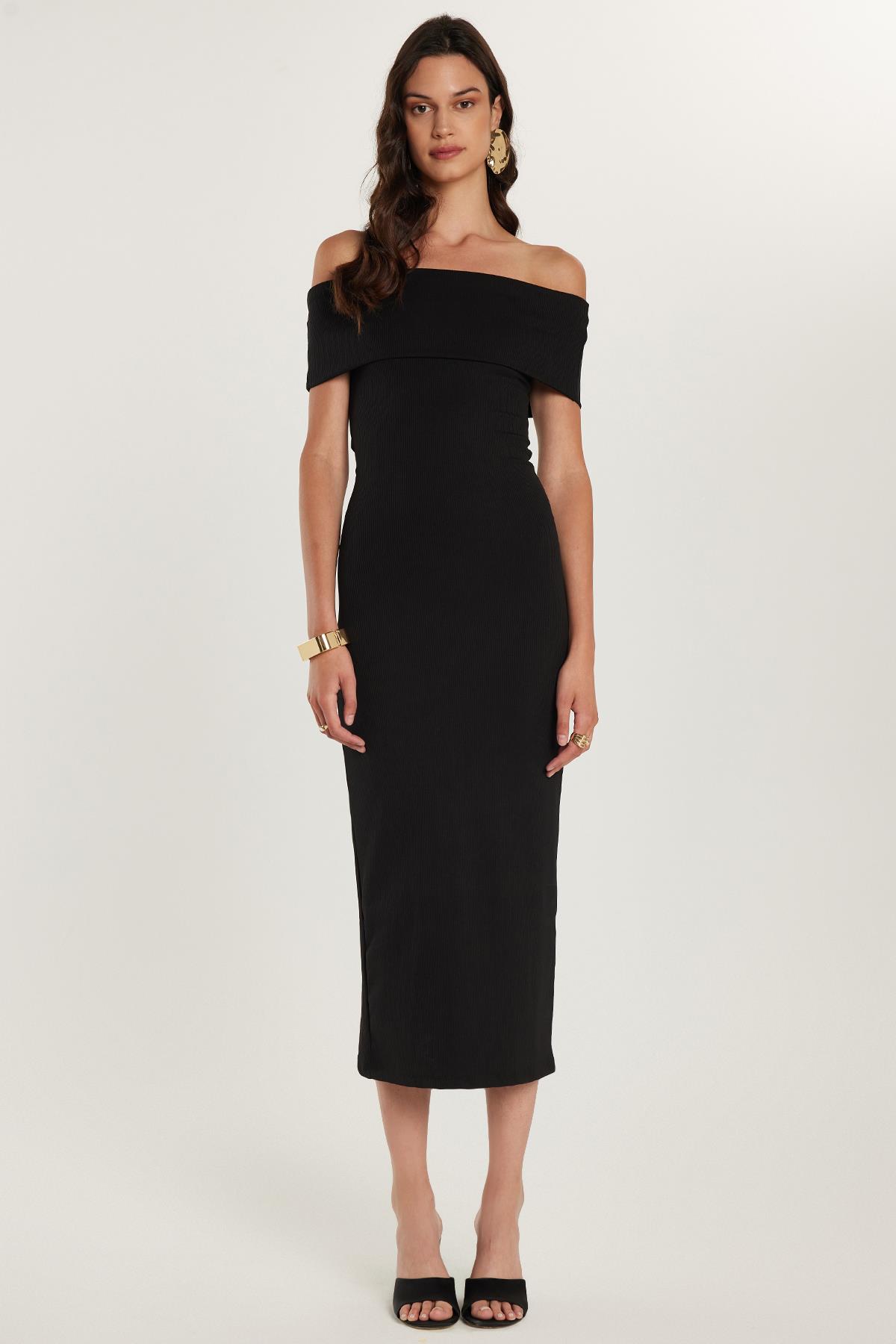 Kadın Slim Fit Dar Kesim Straplez Siyah Midi Boy Elbise (KDN25181-02)