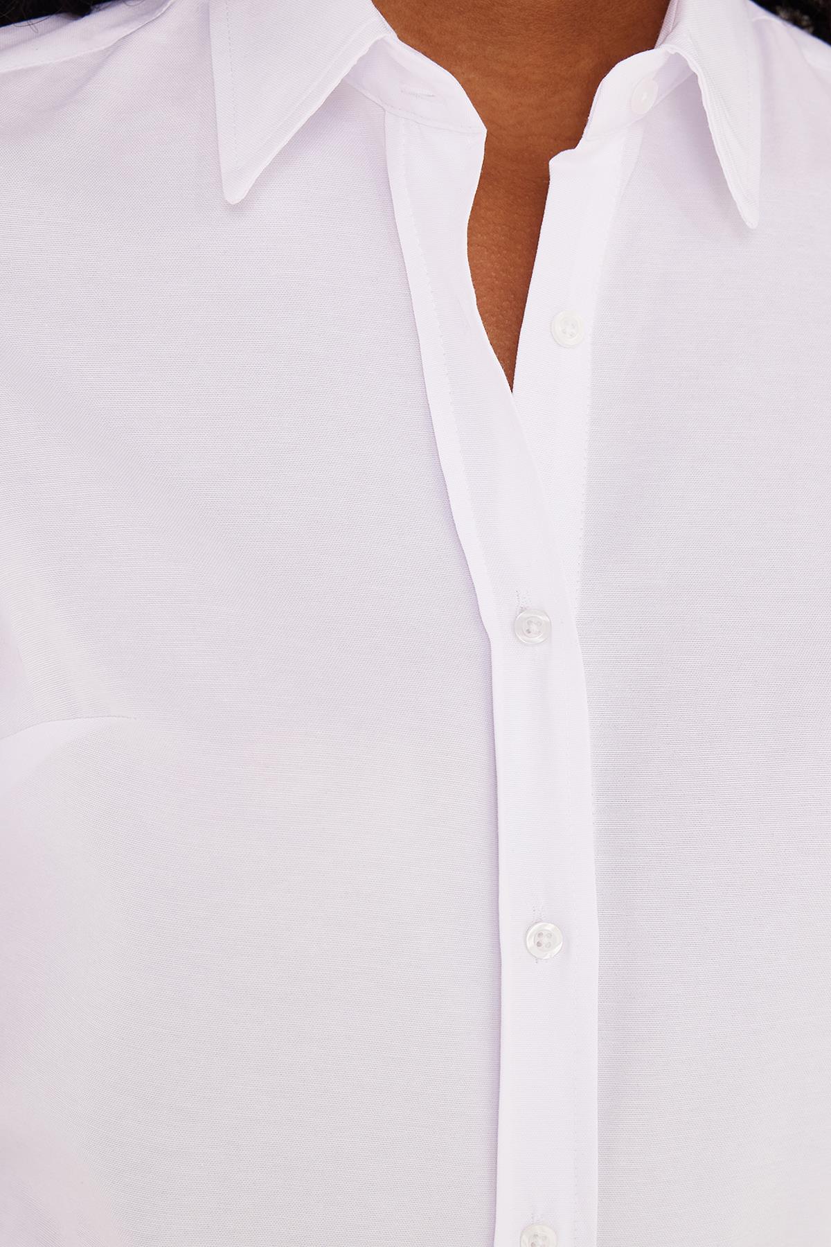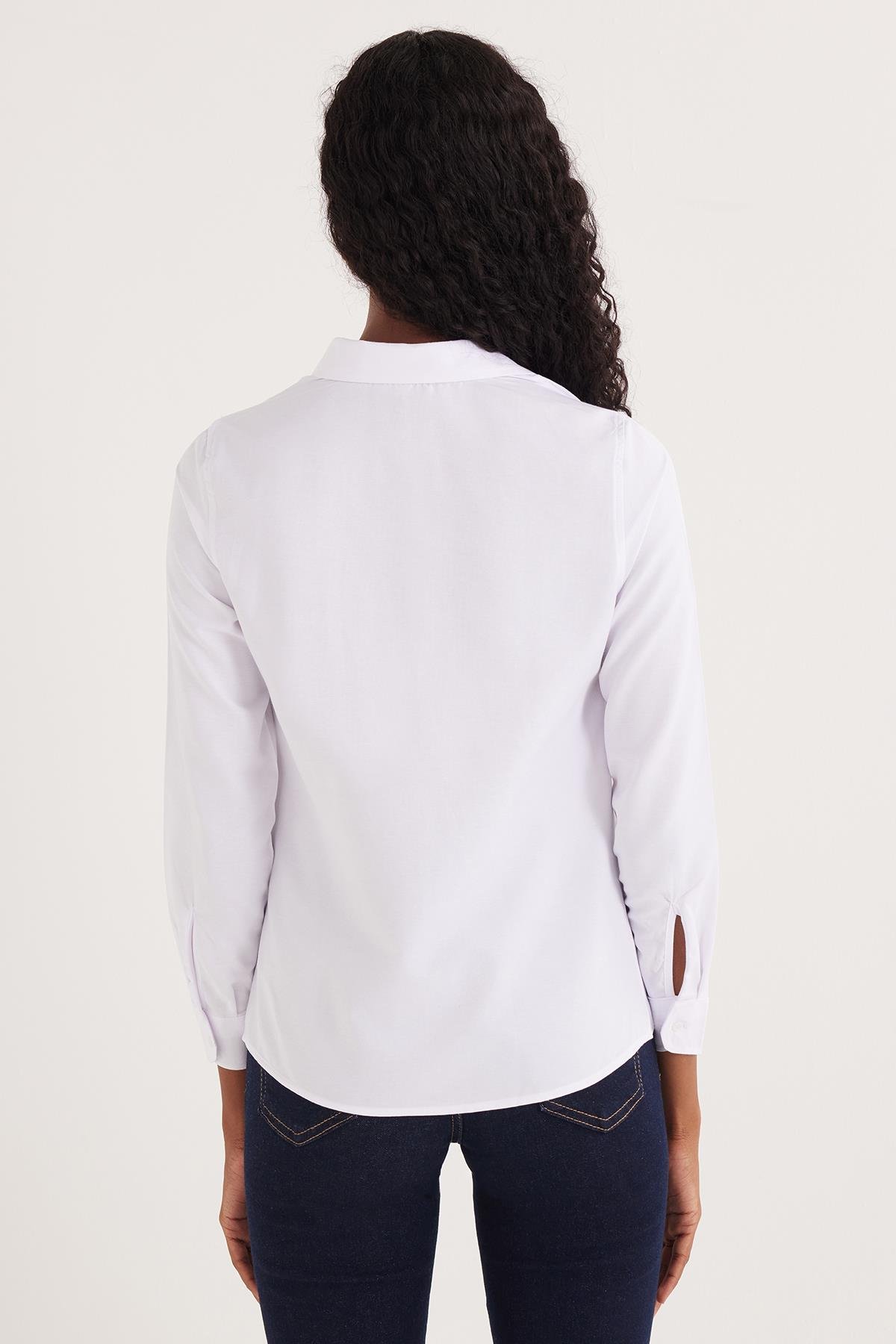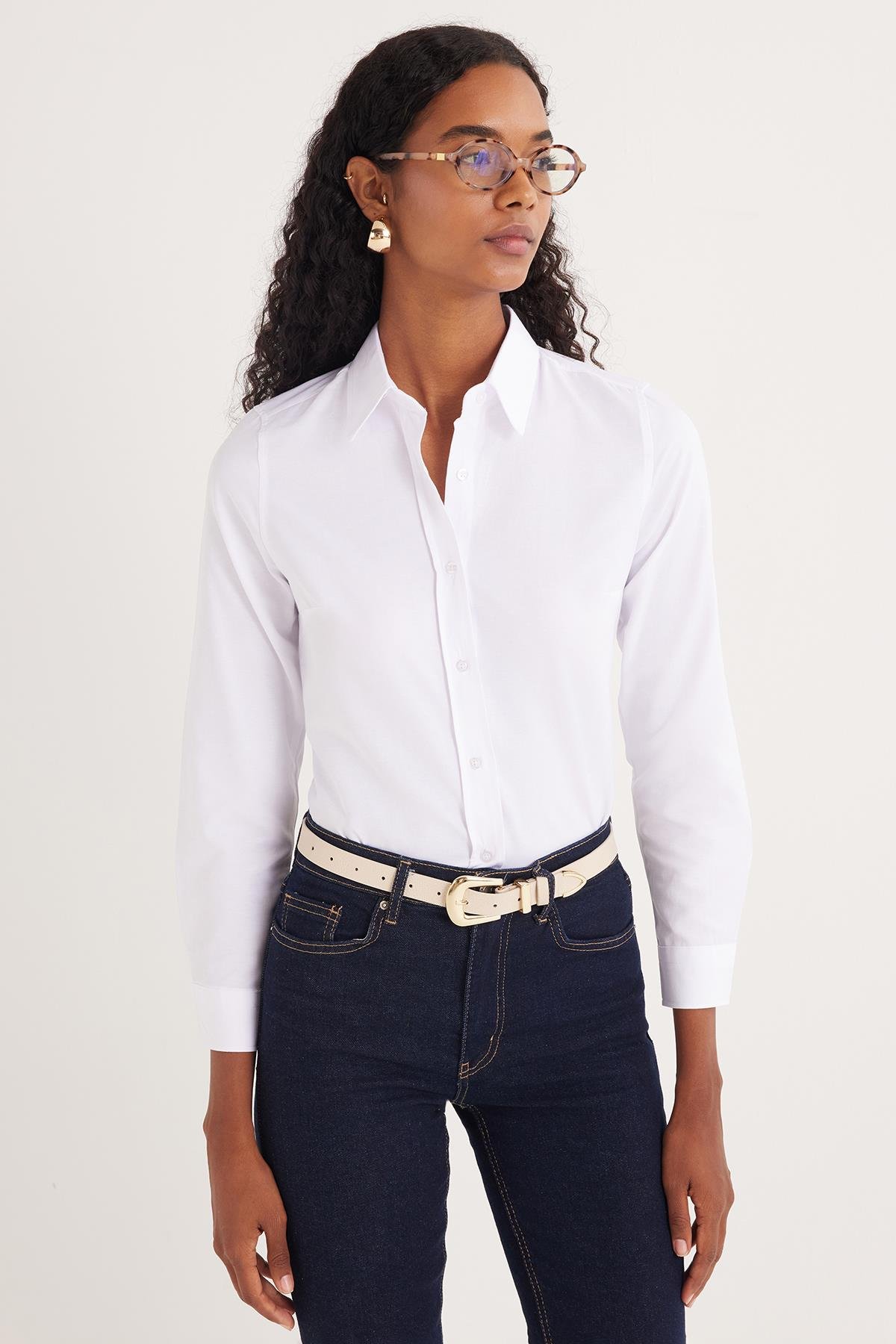 Kadın Slim Fit Dar Kesim Uzun Kollu Pamuklu Vücuda Oturan Dokulu Beyaz Basic Gömlek