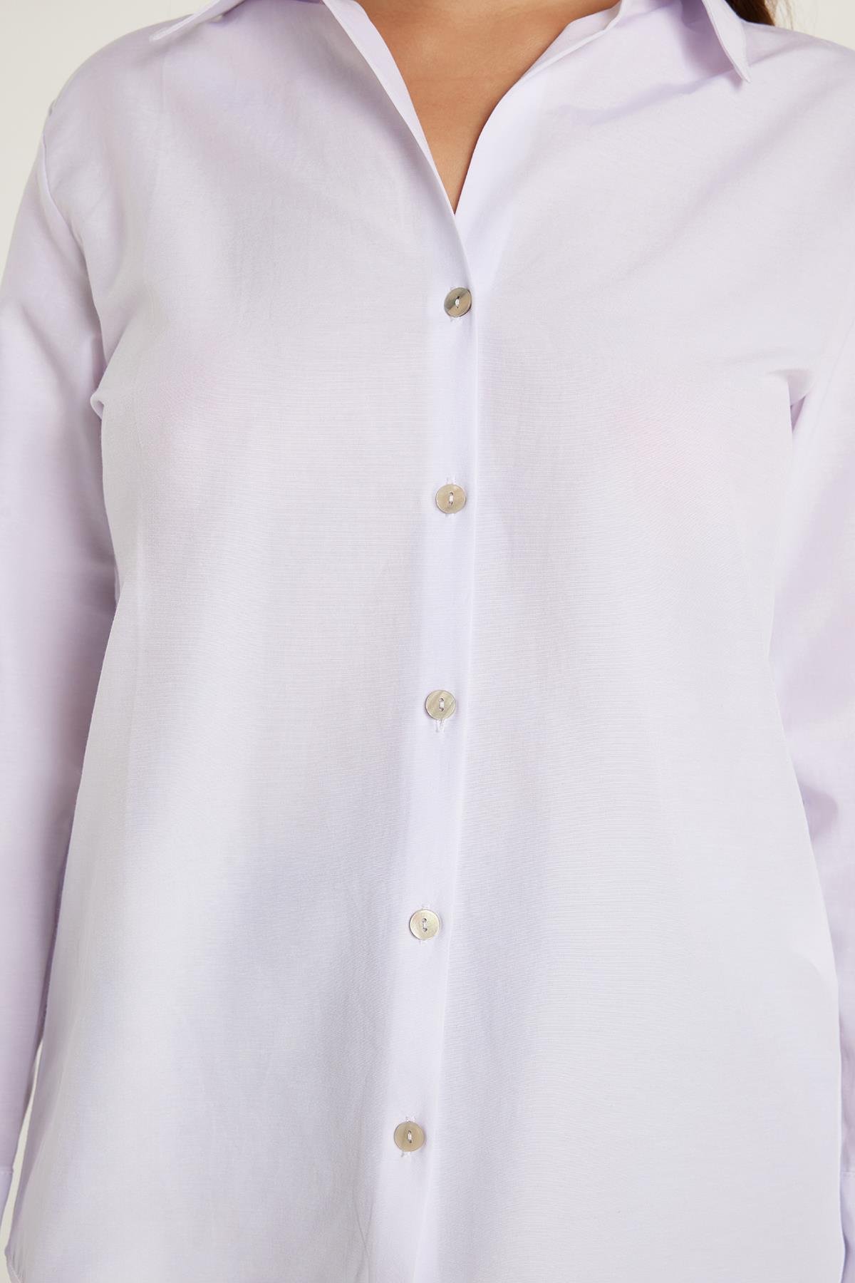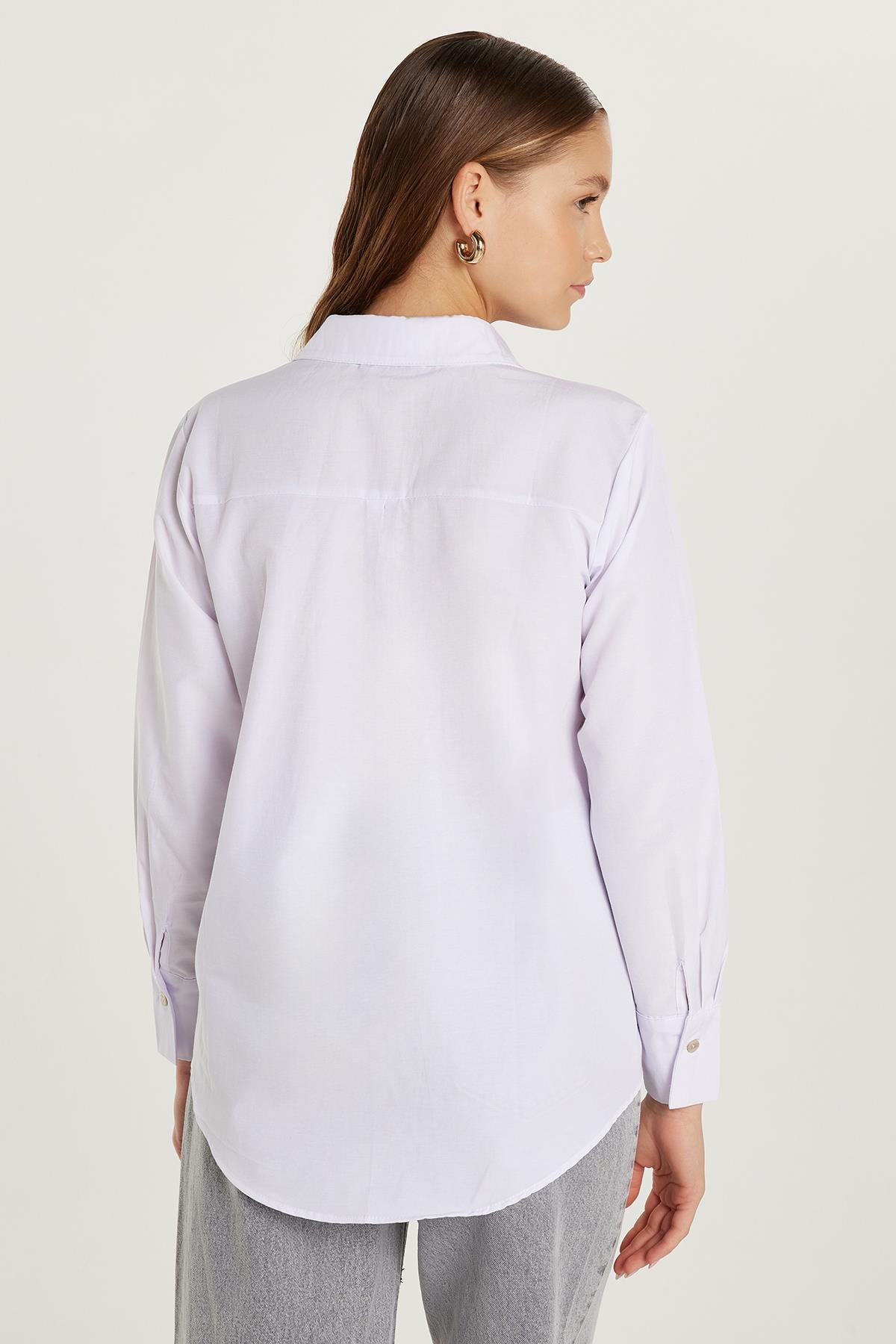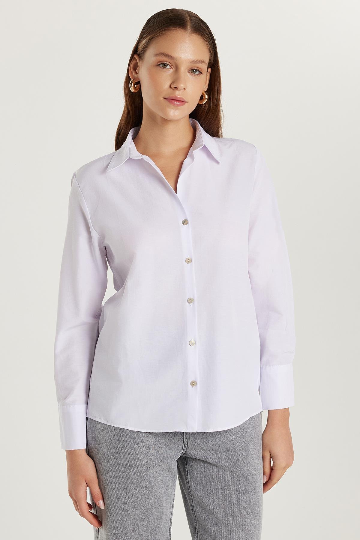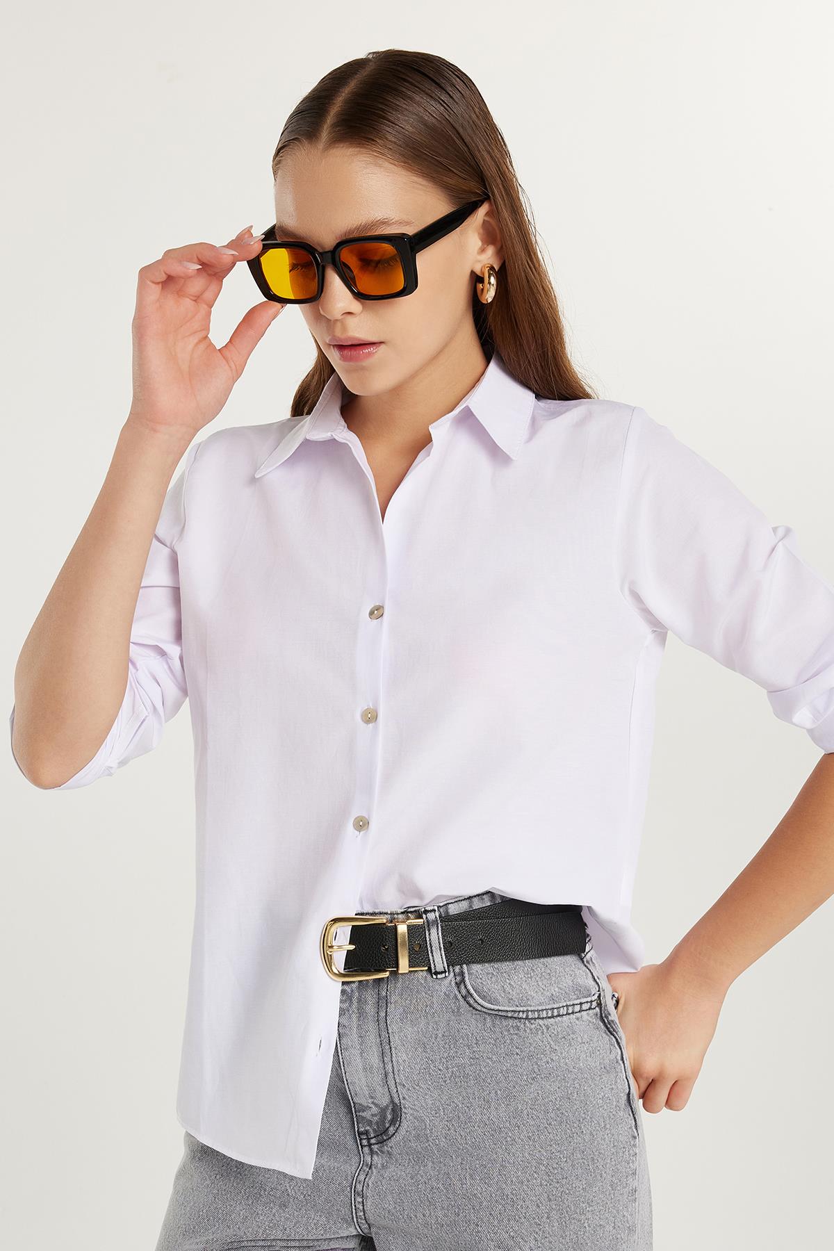 Kadın Slim Fit Dar Kesim Uzun Kollu Spor Yaka Beyaz Gömlek (KDN25157-01)
