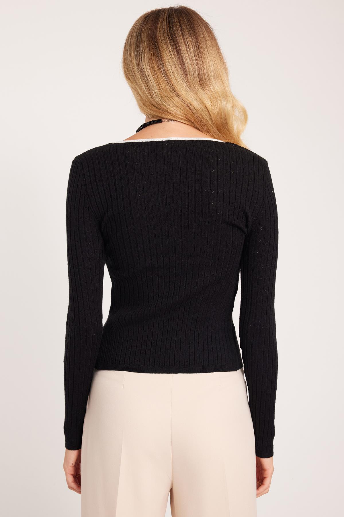 Kadın Slim Fit Dar Kesim Uzun Kollu U Yaka Bağlama Detaylı Siyah Hırka (BYKZ2524-02)