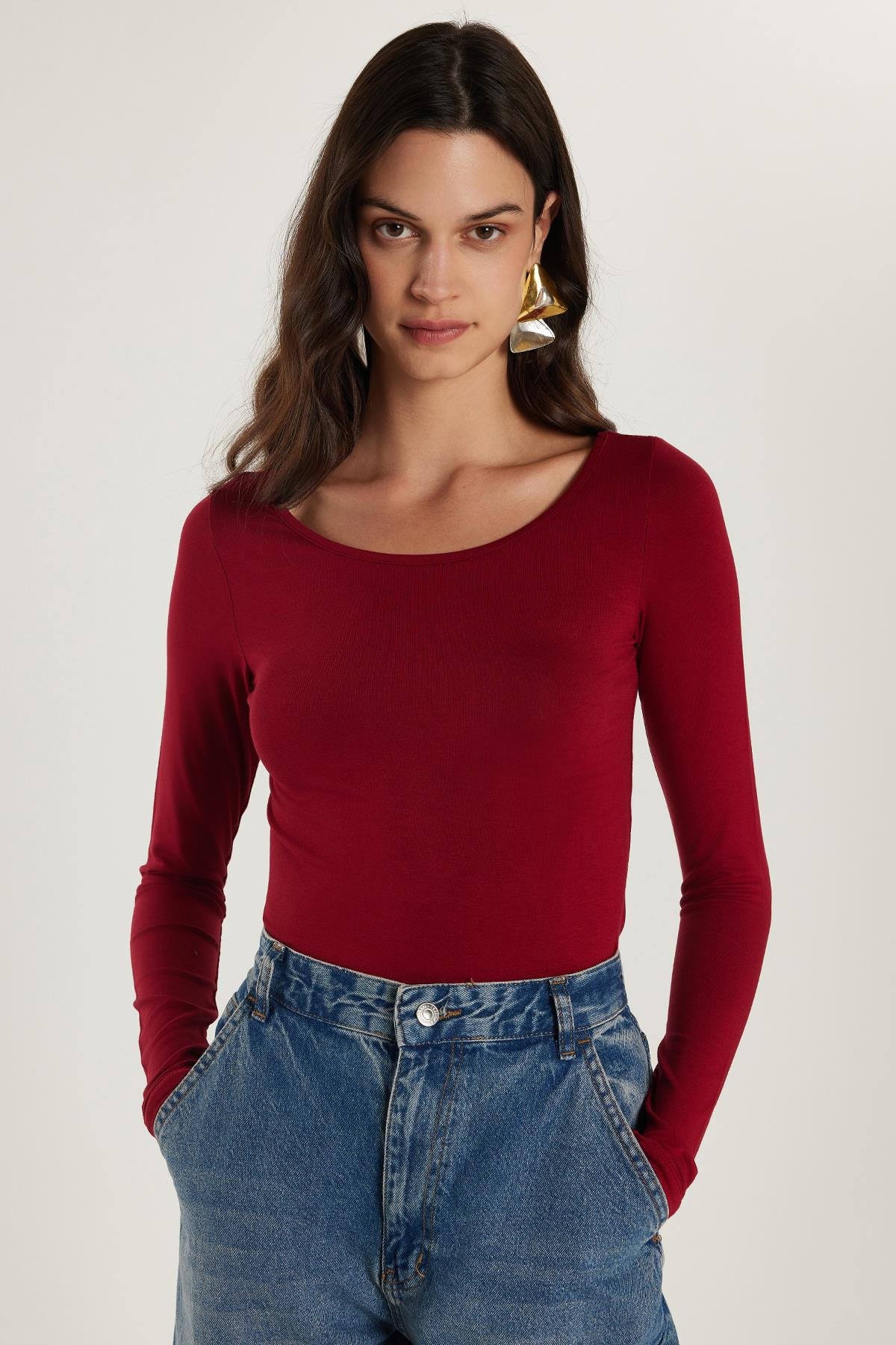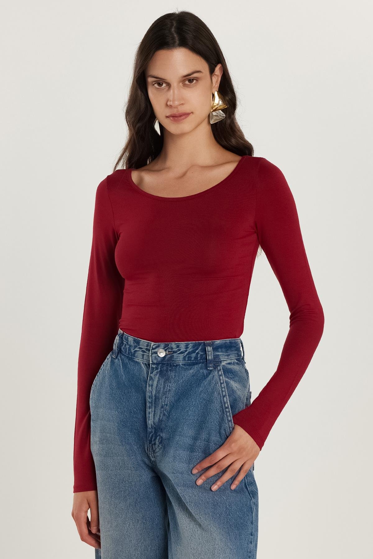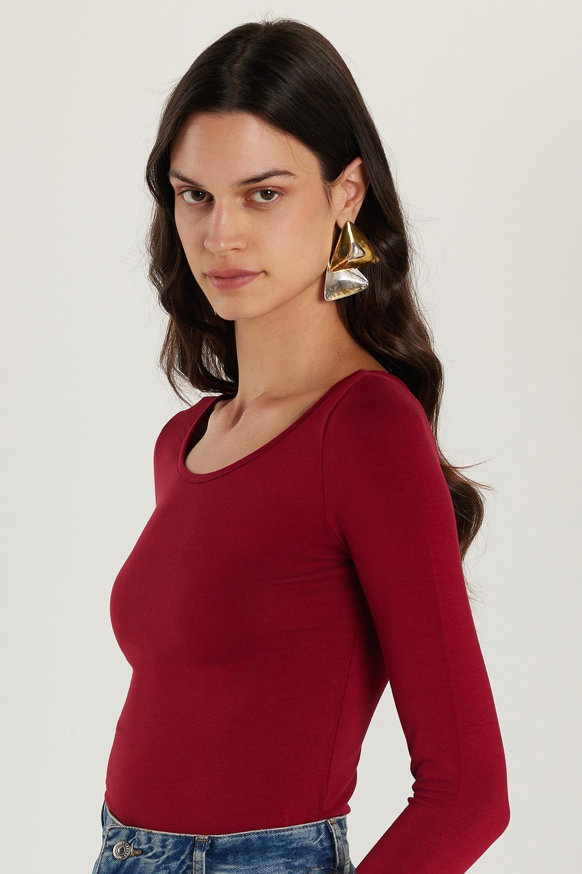 Kadın Slim Fit Dar Kesim Uzun Kollu Viskon Bordo Bluz (BYGM2546-08)