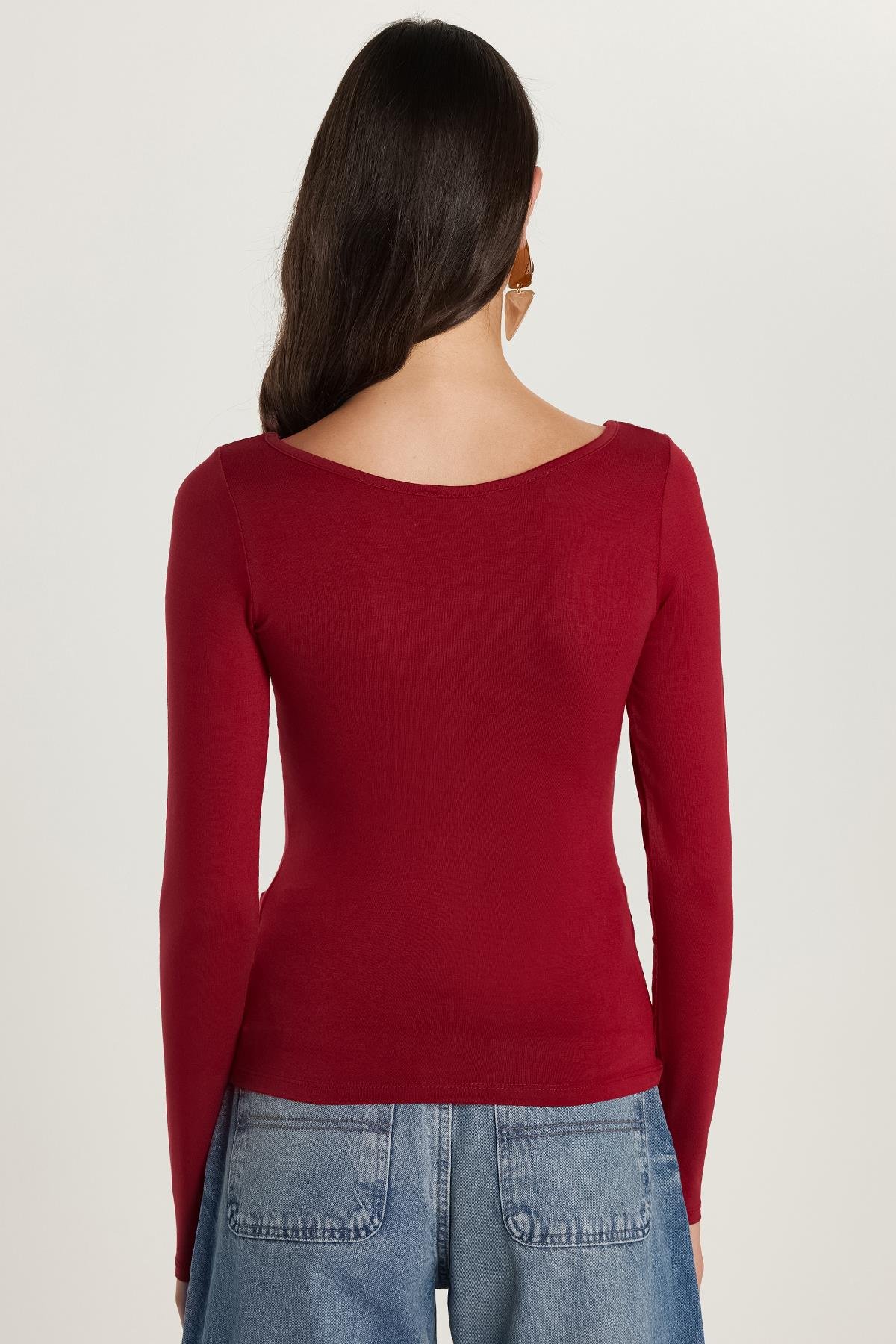Kadın Slim Fit Dar Kesim Uzun Kollu Viskon Bordo Bluz