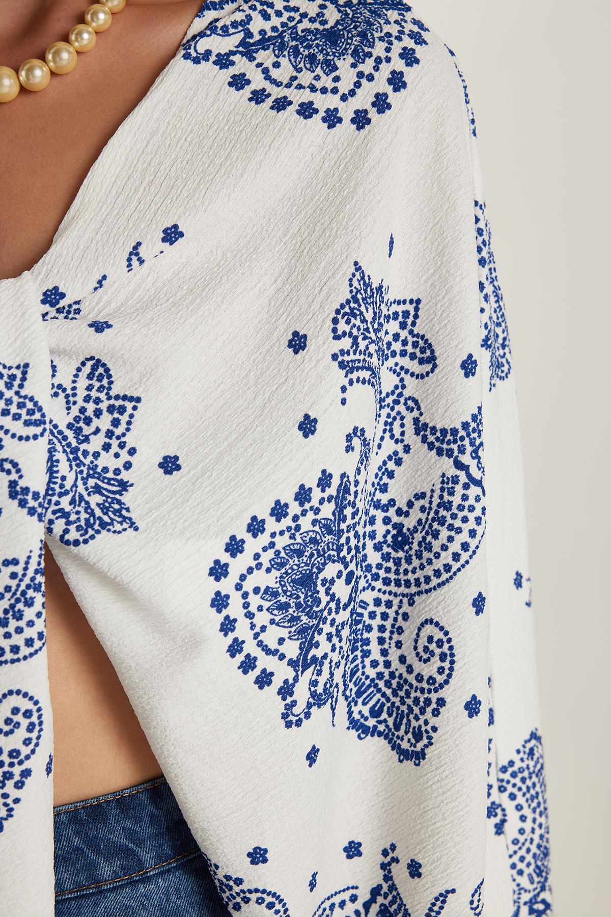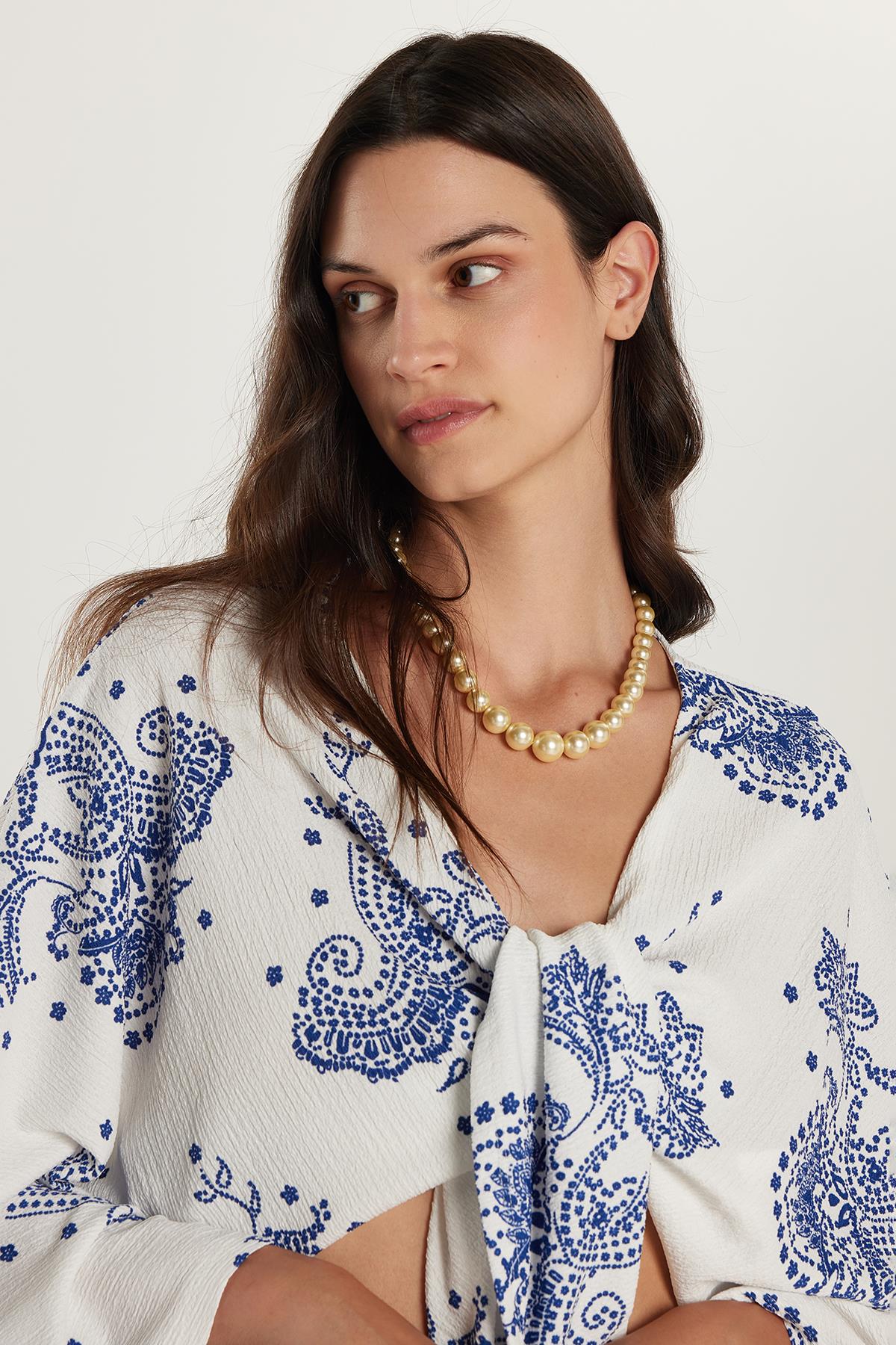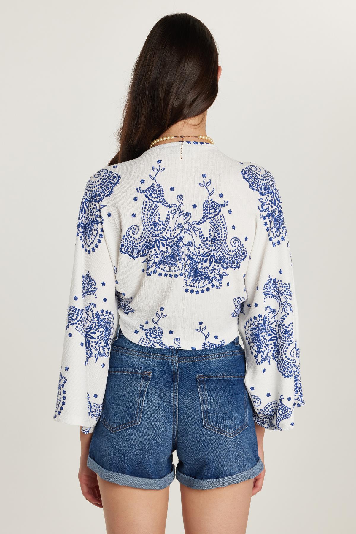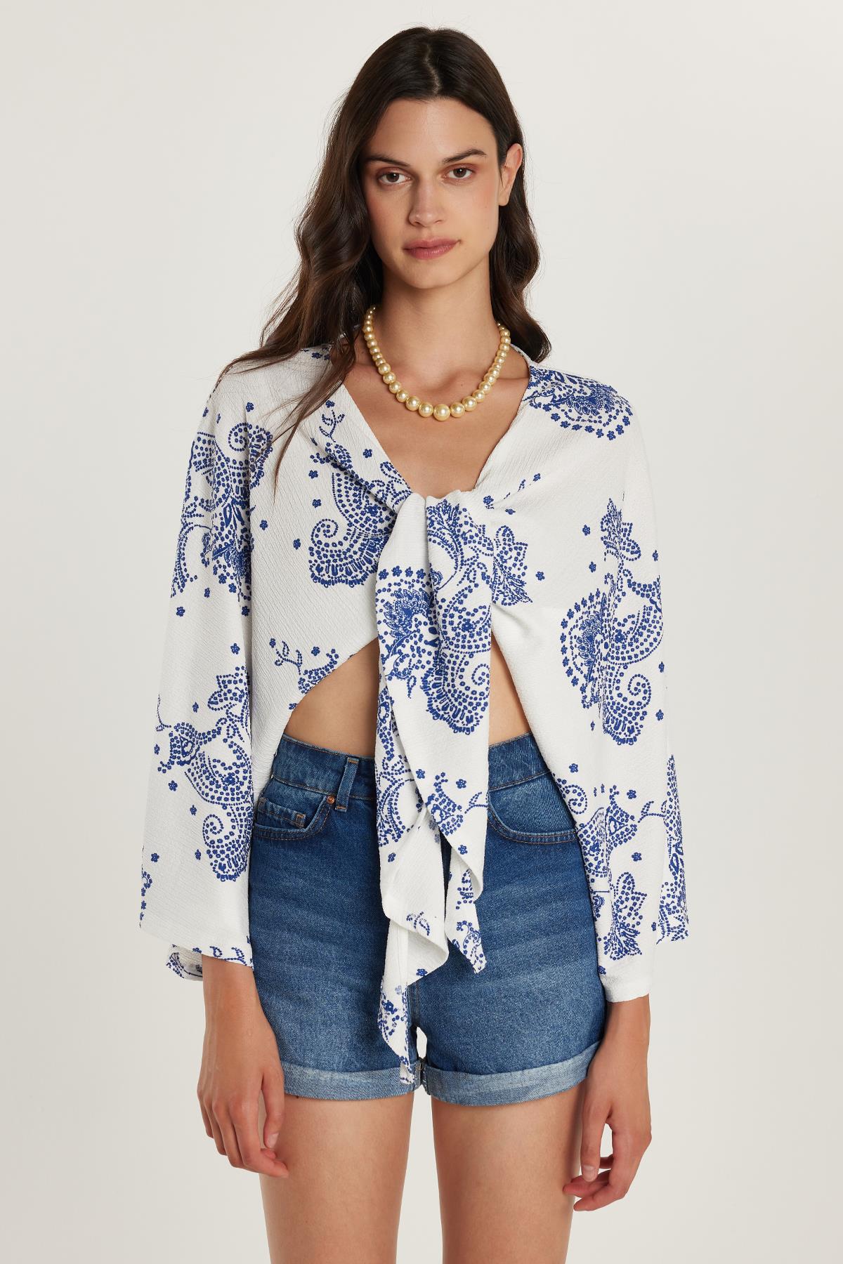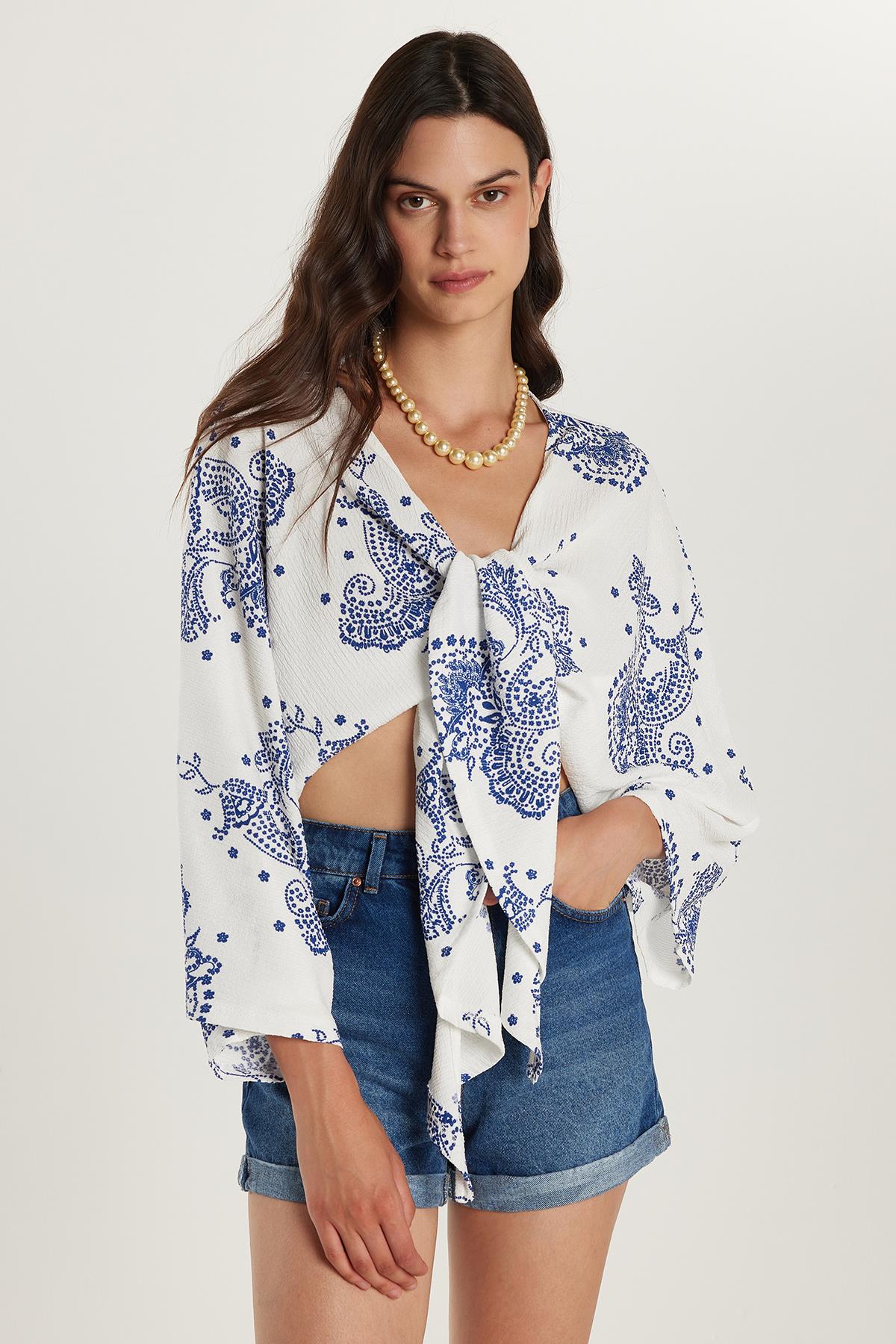 Kadın Slim Fit Dar Kesim V yaka Önü Bağlama Detaylı Bluz