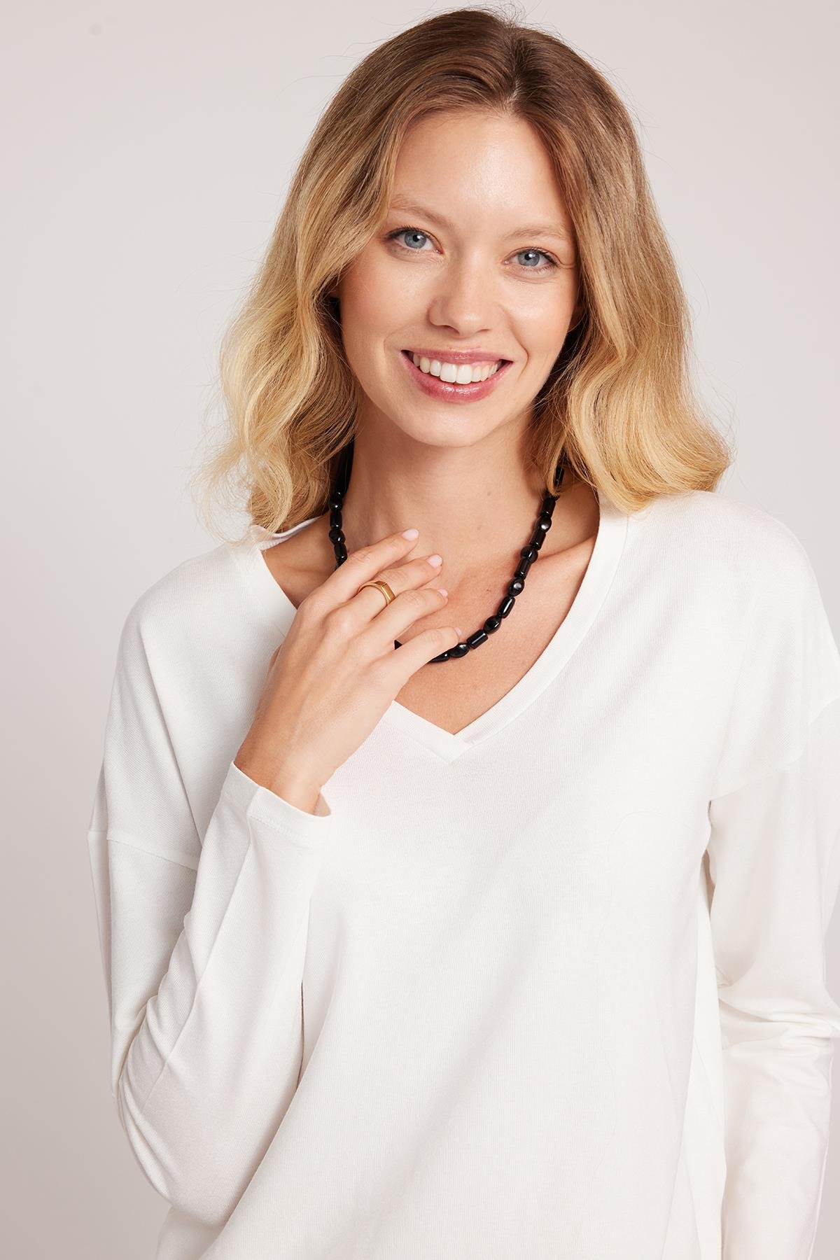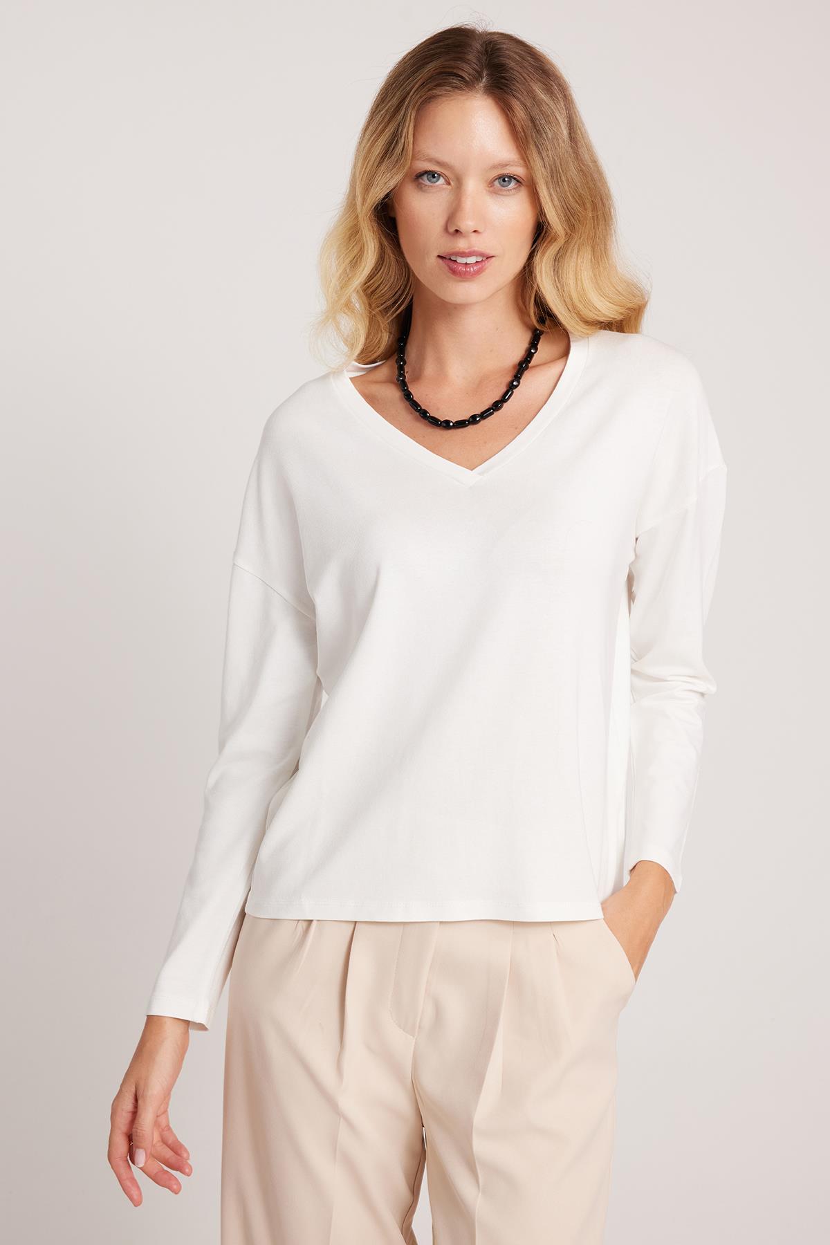 Kadın Slim Fit Dar Kesim Viskonlu Kumaş V Yaka Ekru Bluz