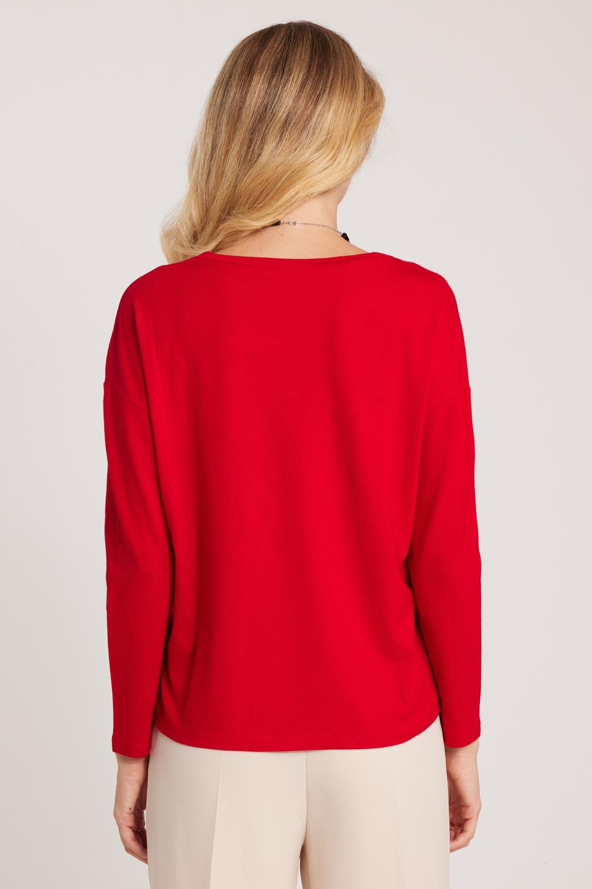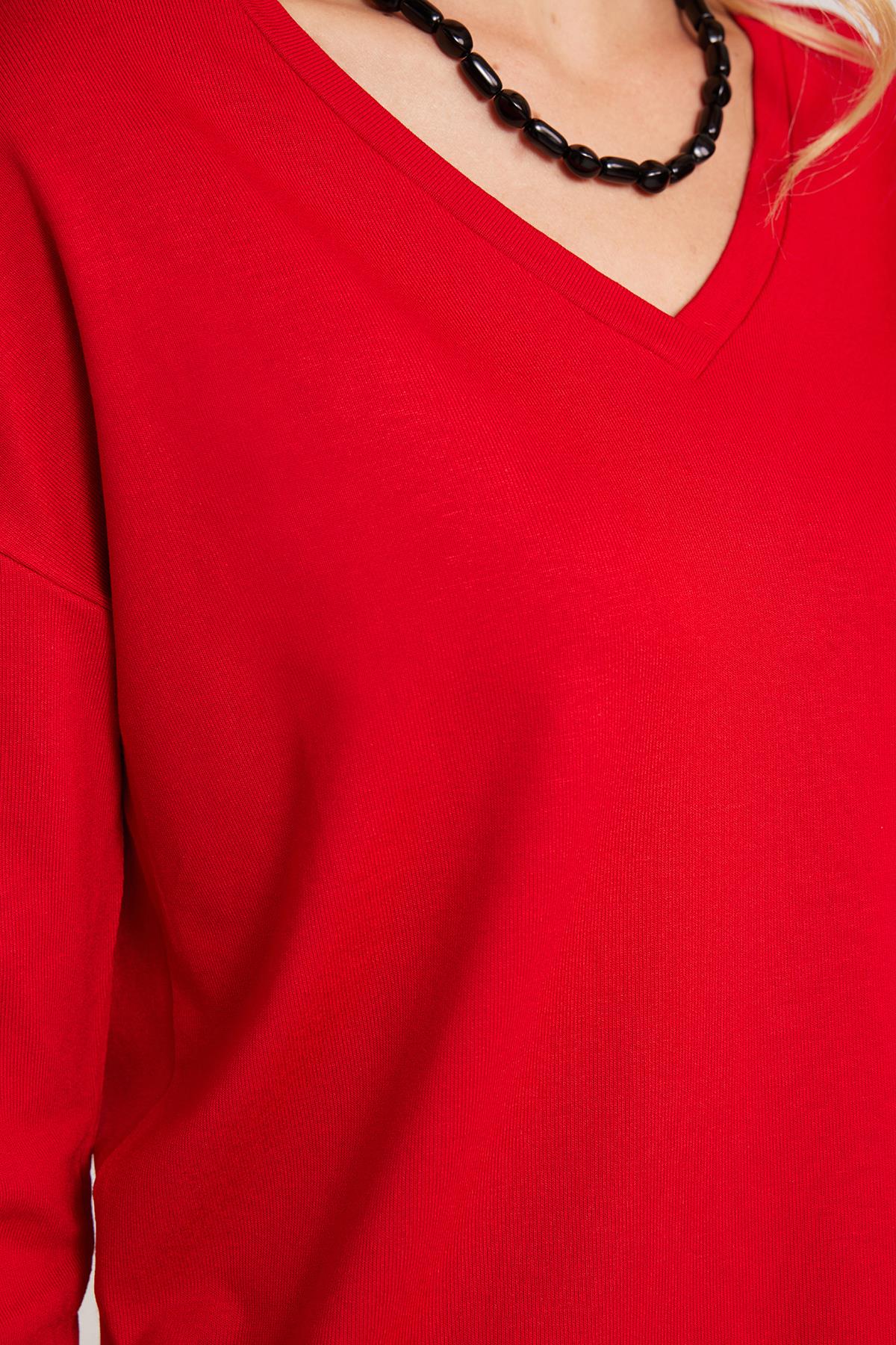 Kadın Slim Fit Dar Kesim Viskonlu Kumaş V Yaka Kırmızı Bluz (BYGM2579-06)