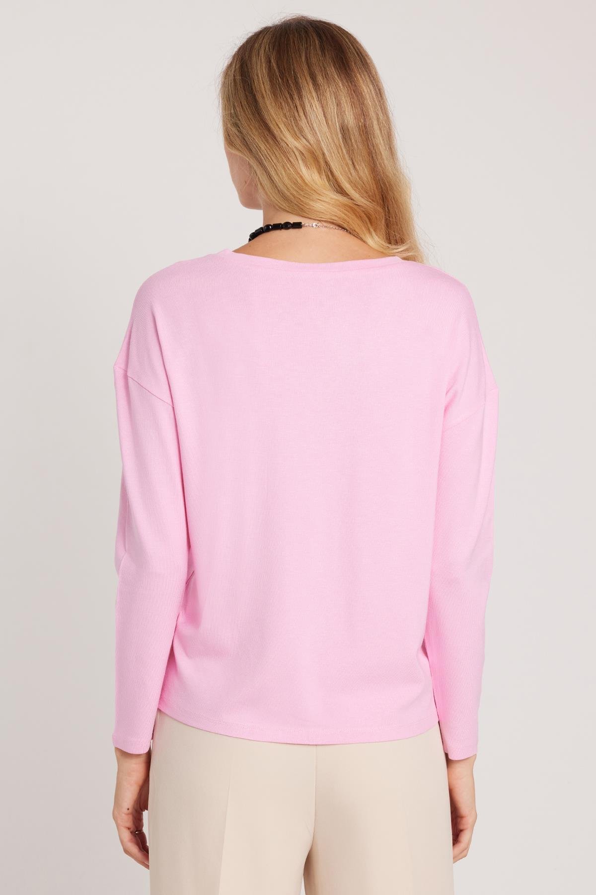Kadın Slim Fit Dar Kesim Viskonlu Kumaş V Yaka Pembe Bluz (BYGM2579-15)