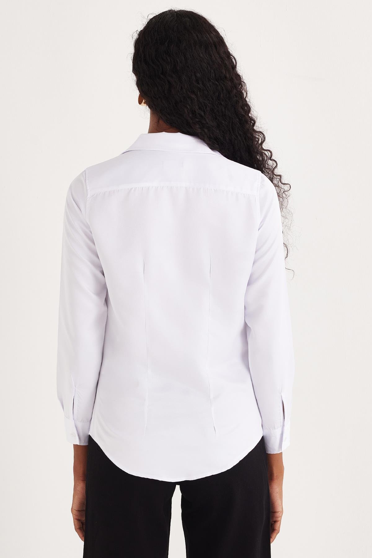 Kadın Slim Fit Dar Kesim Vucüda Oturan Uzun Kollu Beyaz Basic Gömlek