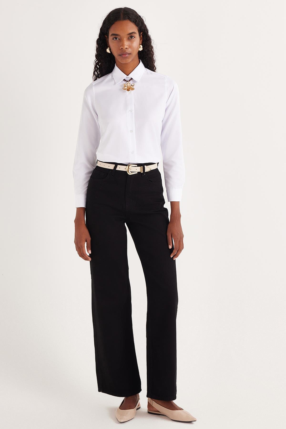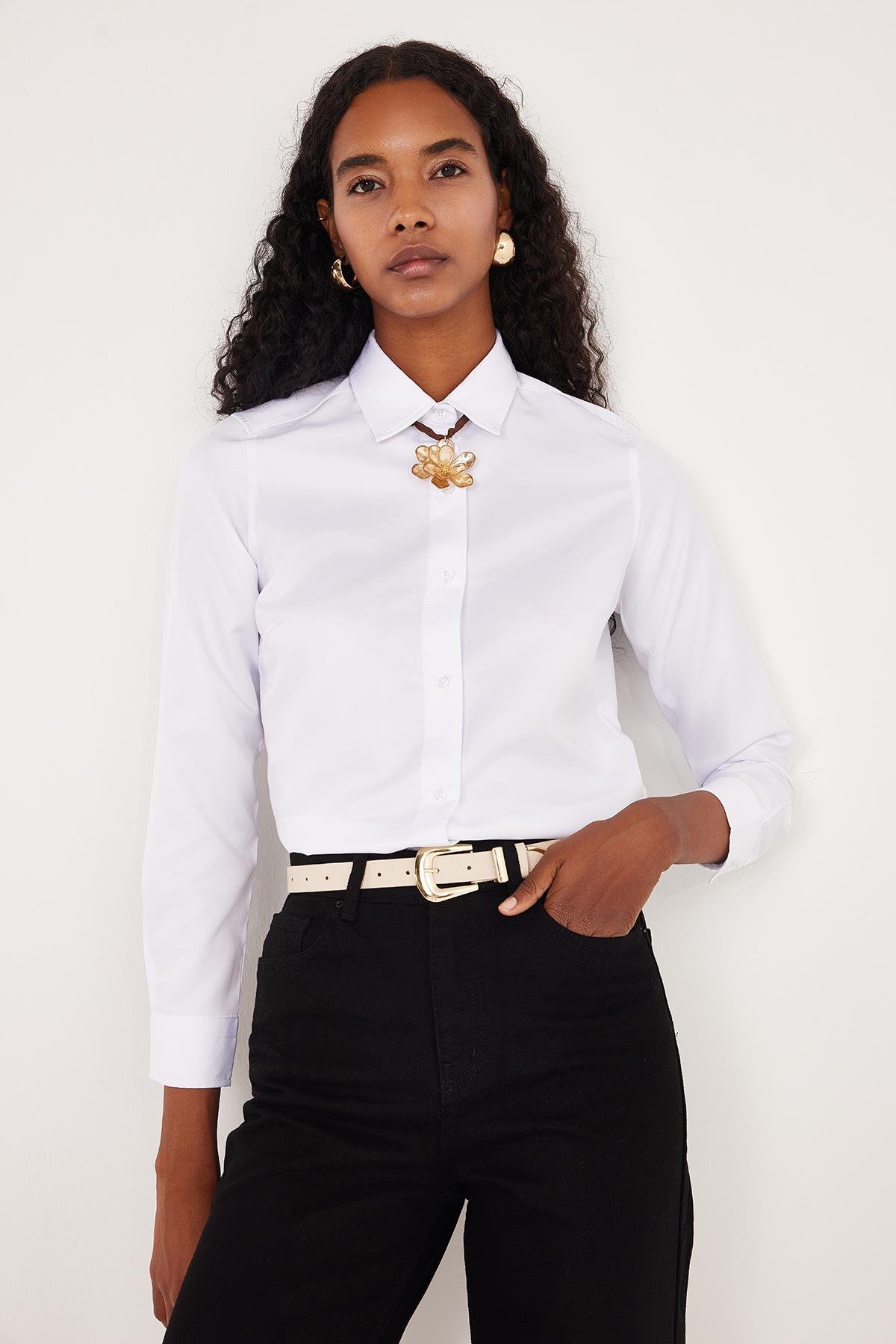 Kadın Slim Fit Dar Kesim Vucüda Oturan Uzun Kollu Beyaz Basic Gömlek (BYGM2550-01)
