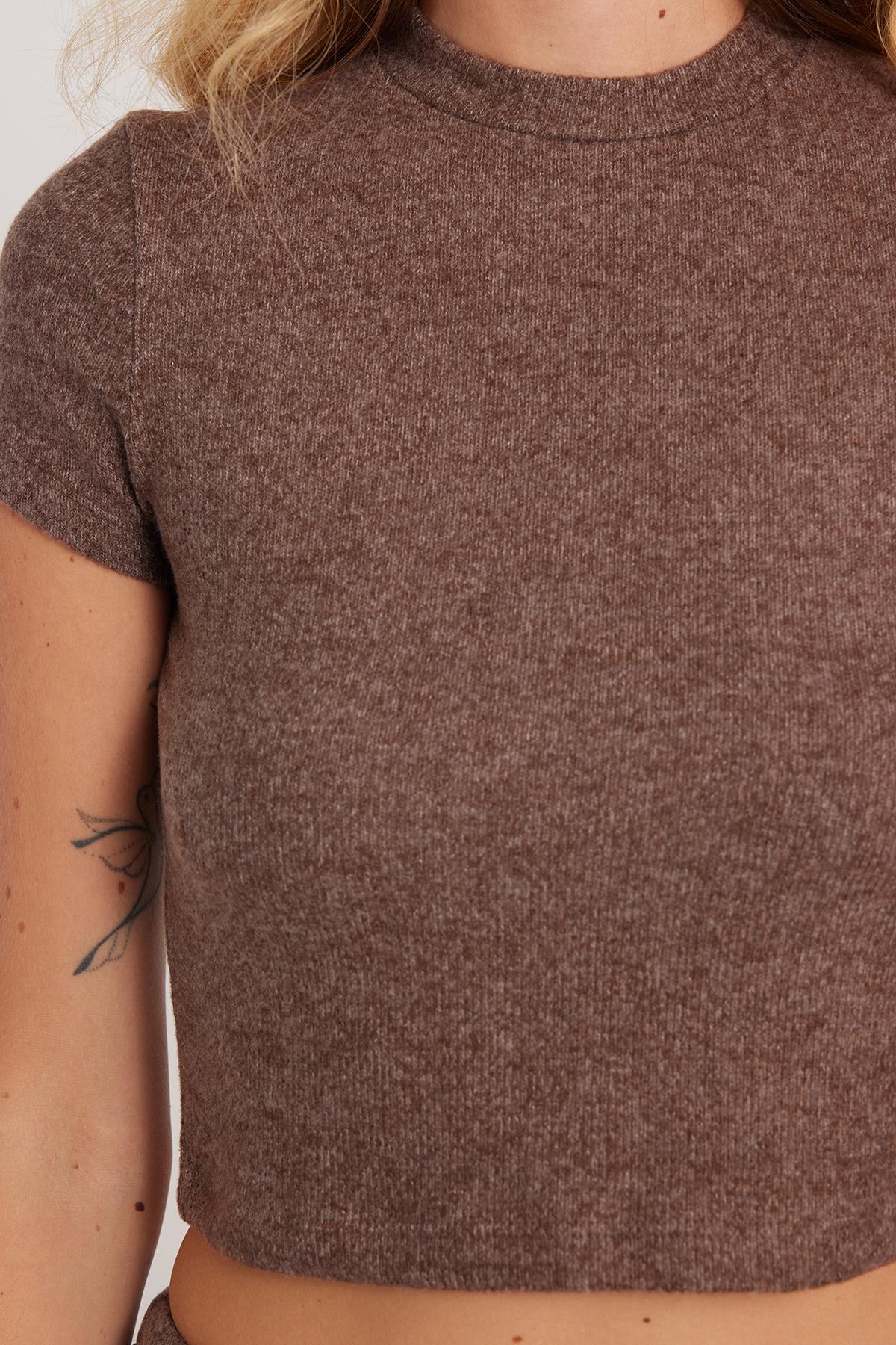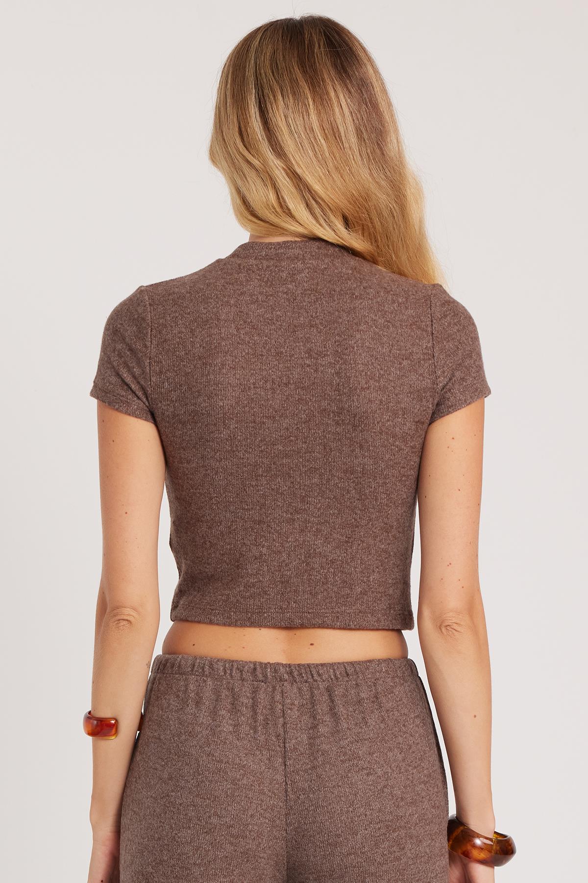 Kadın Slim Fit Dar Kesim Yarım Balıkçı Yaka Kısa Kollu Kahverengi Bluz