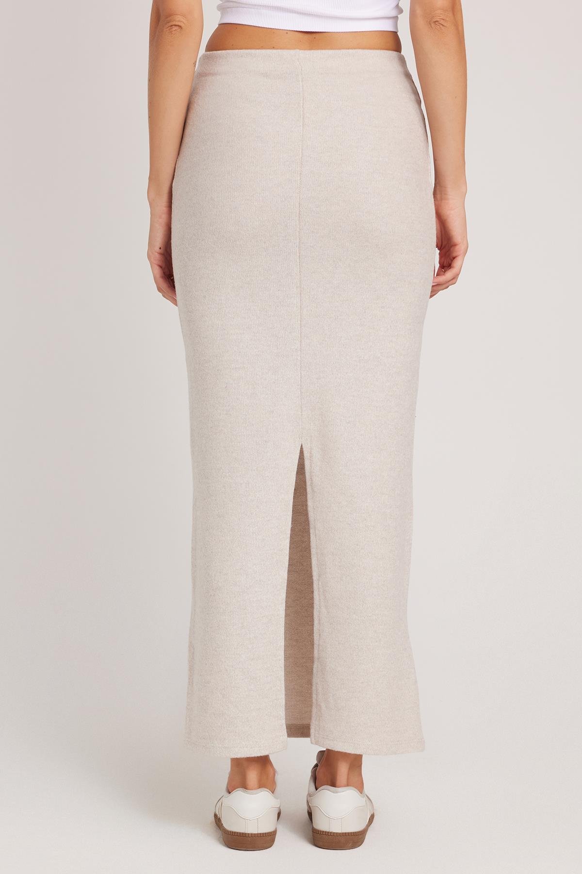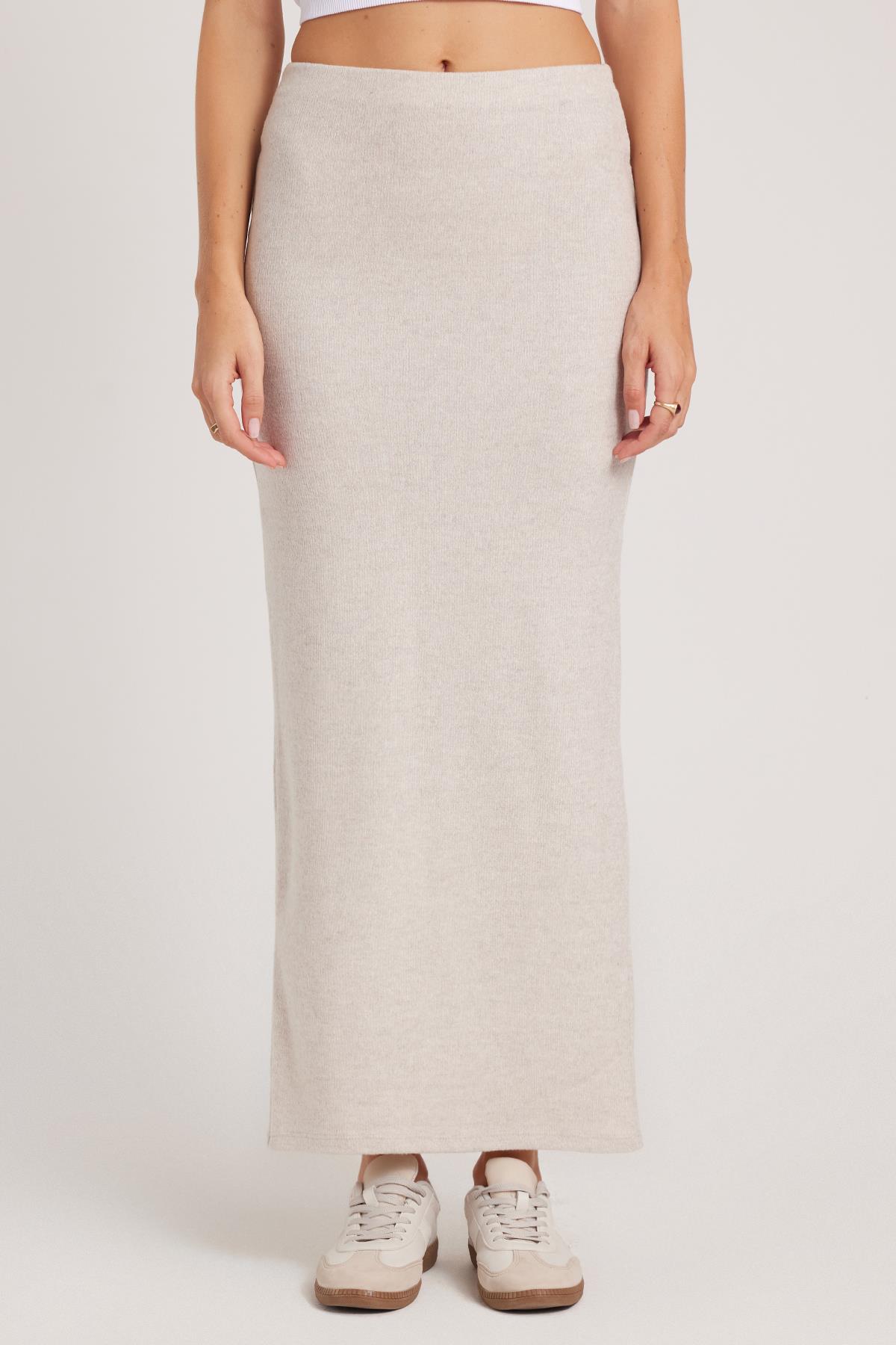 Kadın Slim Fit Dar Kesim Yırtmaçlı Bej Etek
