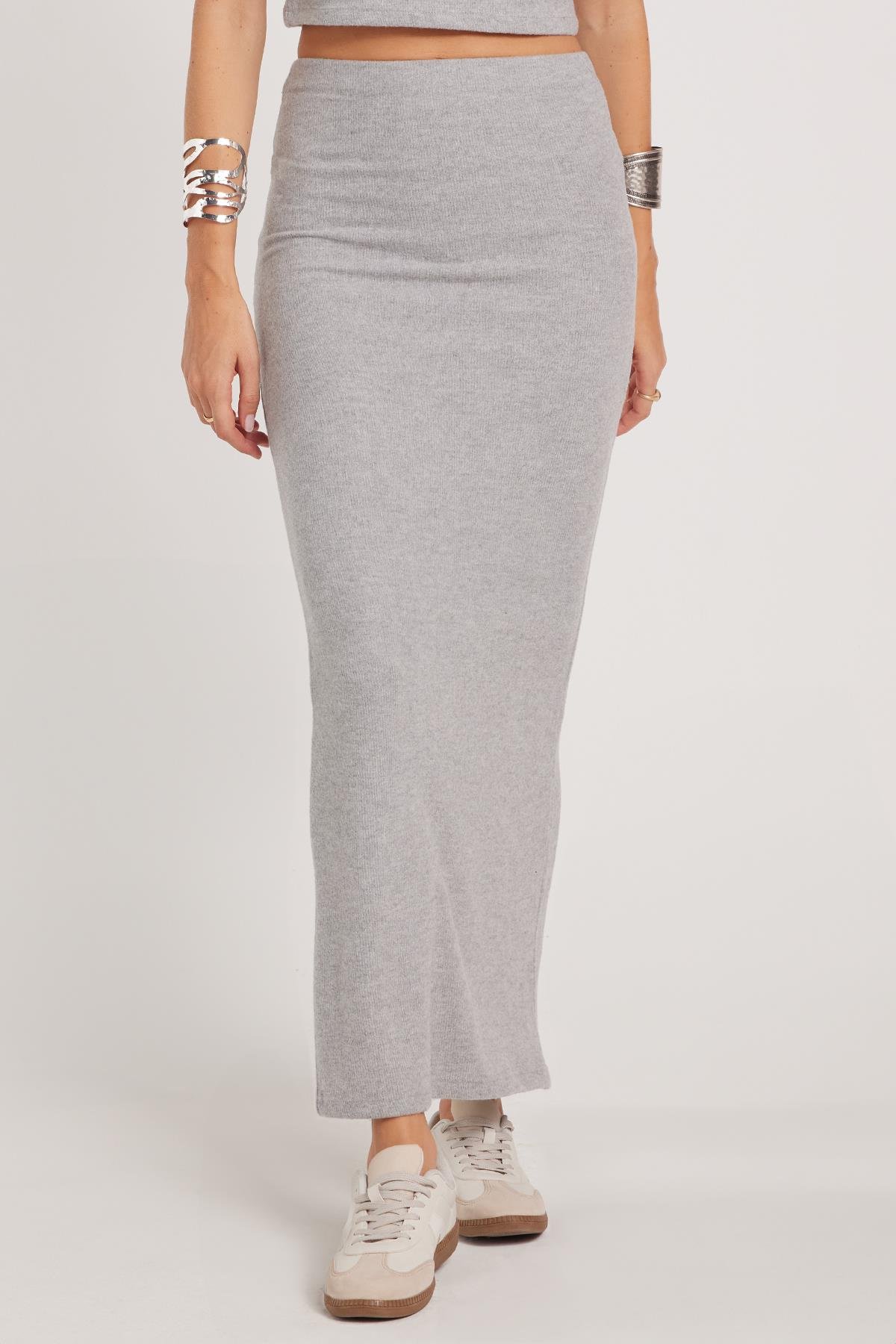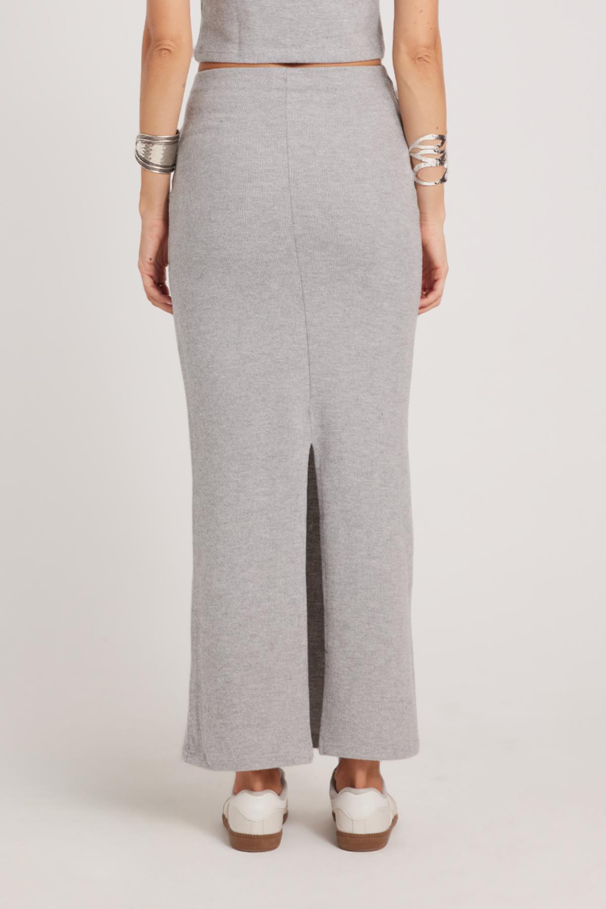 Kadın Slim Fit Dar Kesim Yırtmaçlı Gri Etek (ETEK2516-076)