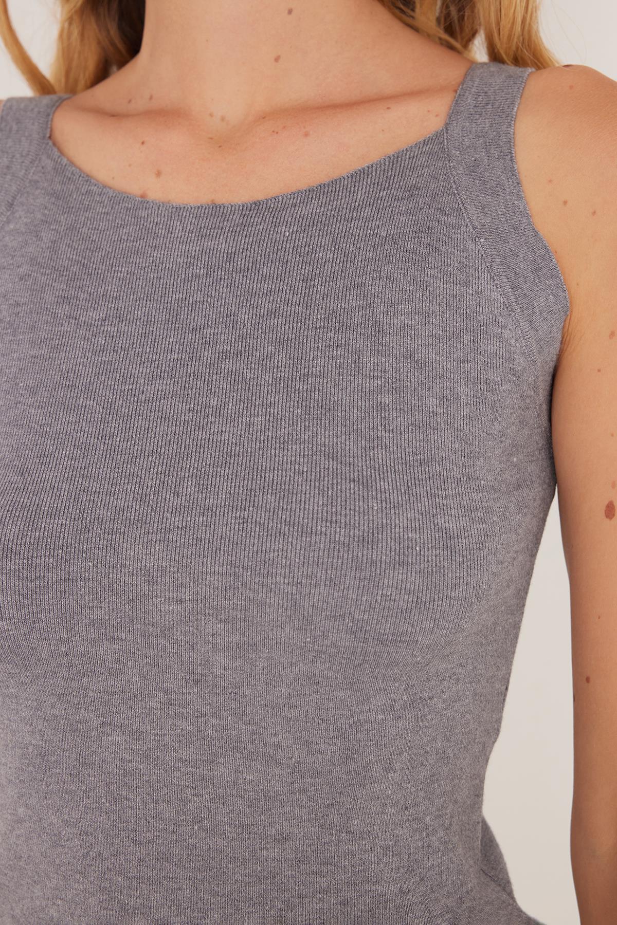 Kadın Slim Fit Geniş Yaka Gri Body Atlet