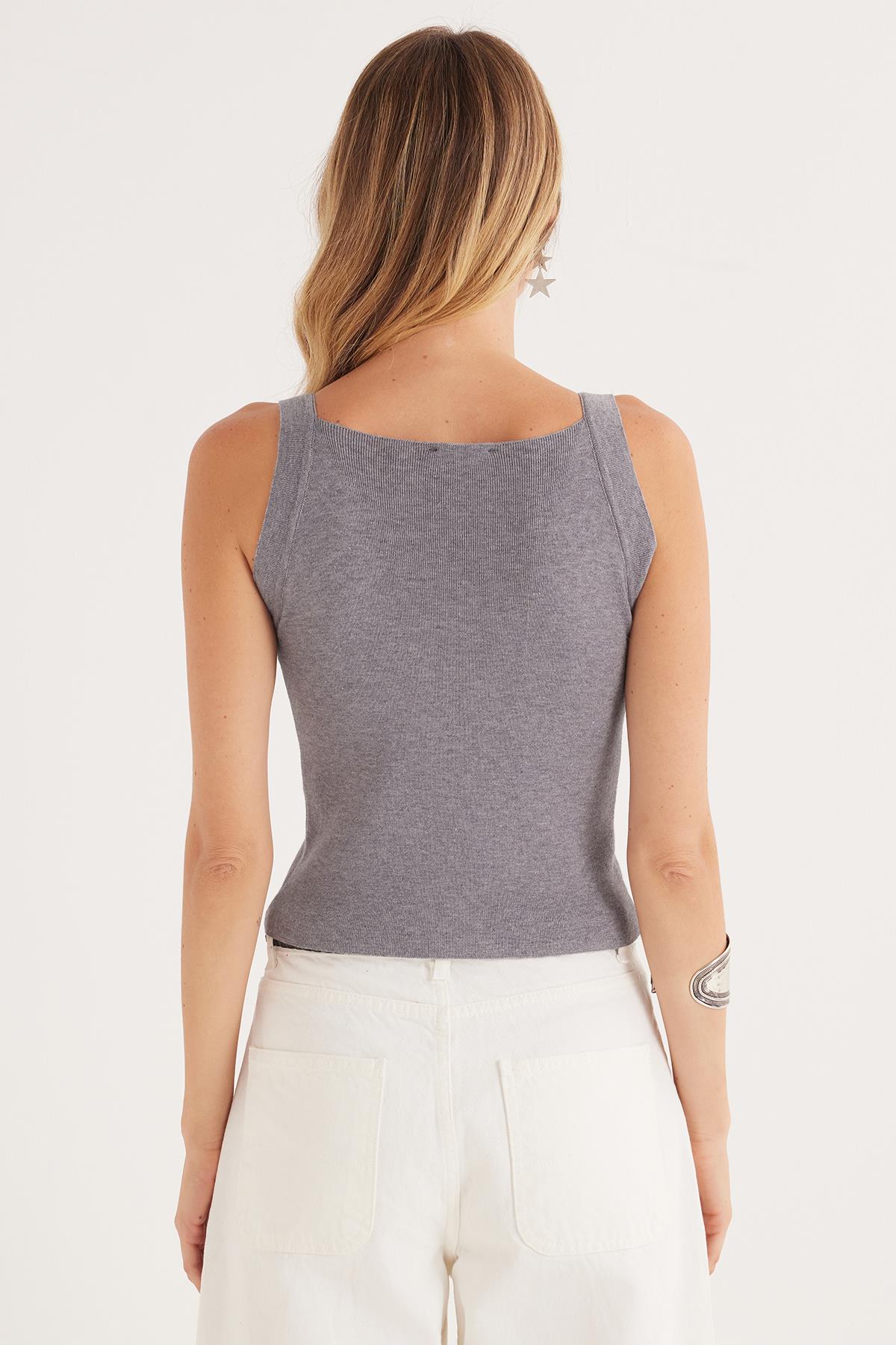 Kadın Slim Fit Geniş Yaka Gri Body Atlet (KDN25263-076)
