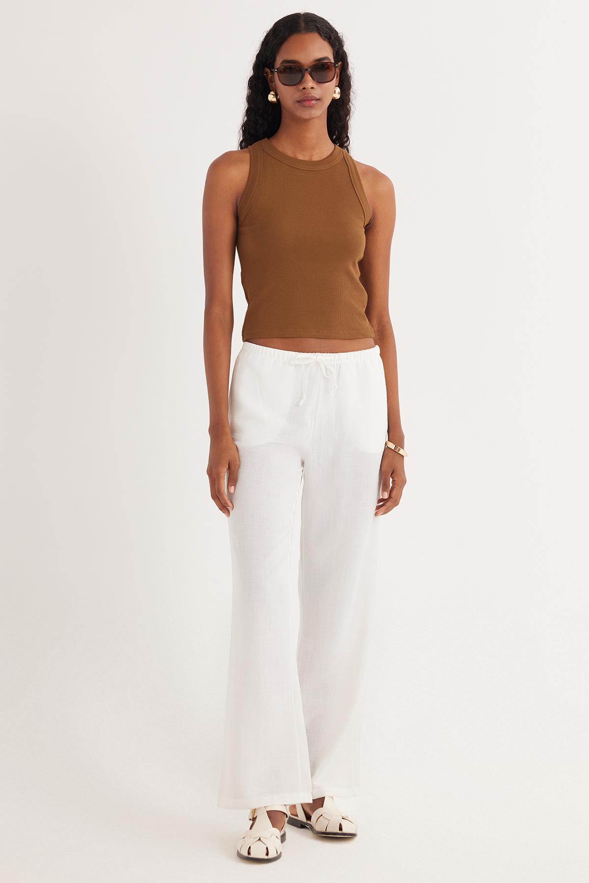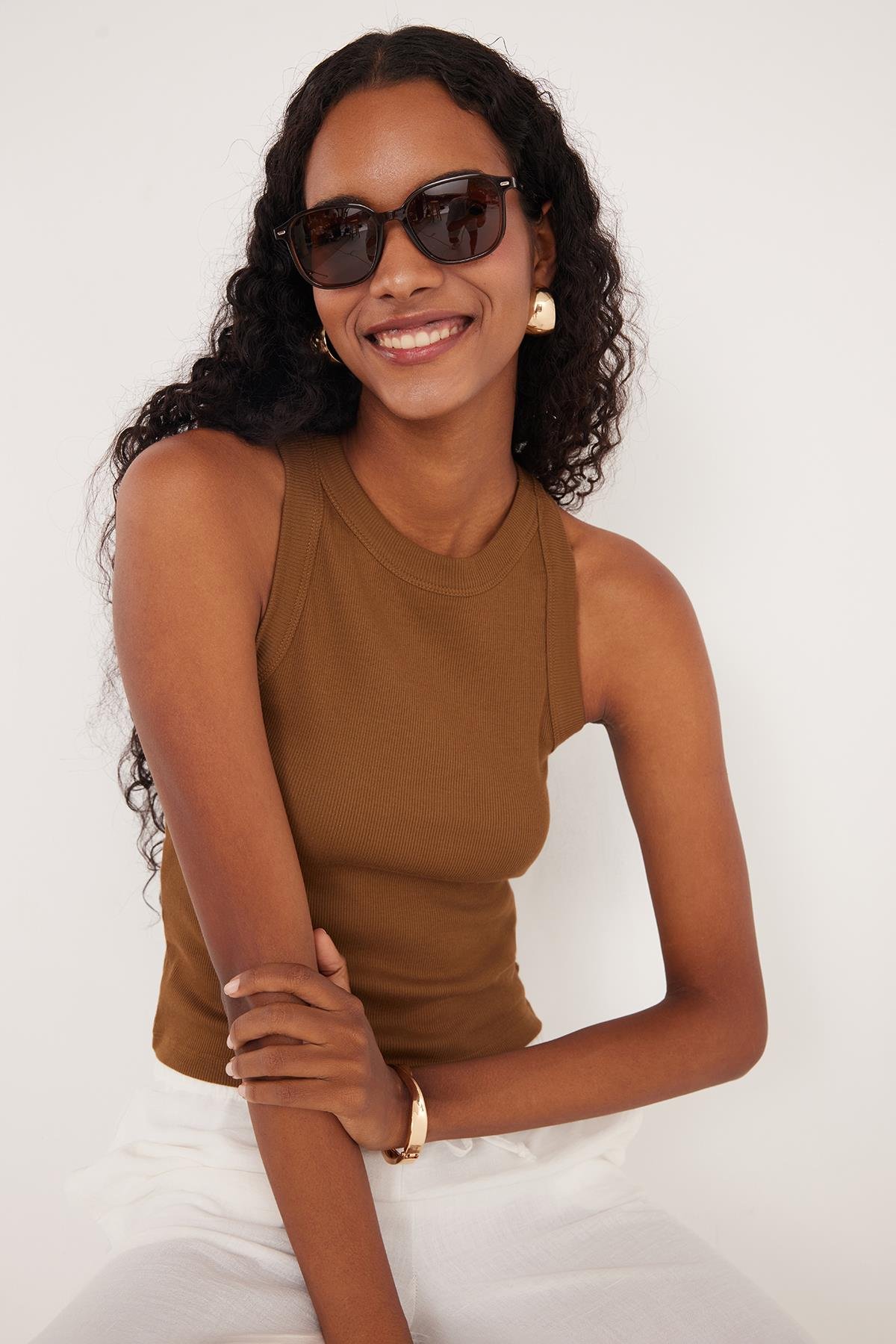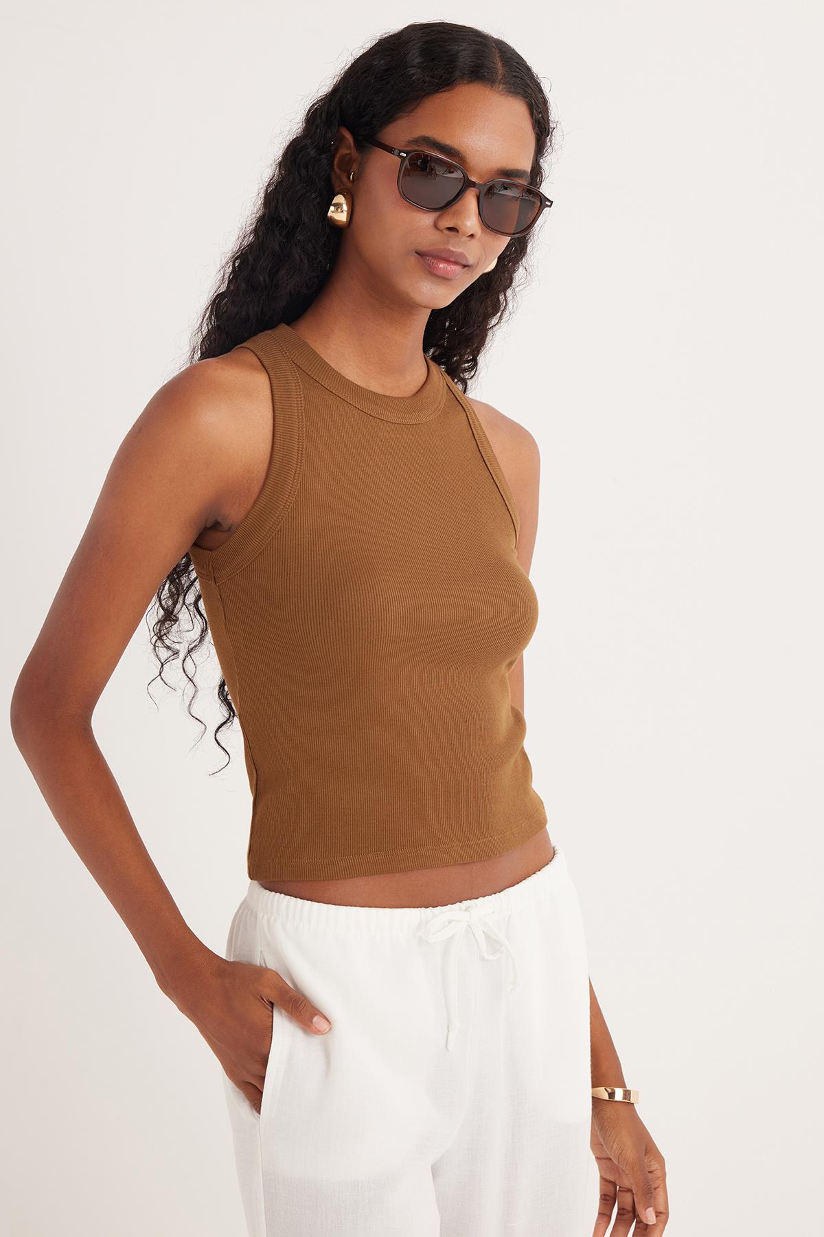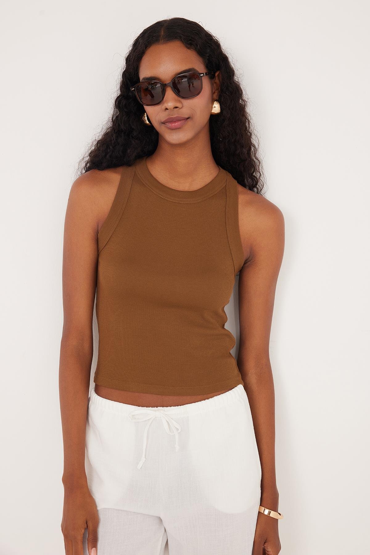 Kadın Slim Fit Halter Yaka Modal Kumaş Kahverengi Body Atlet
