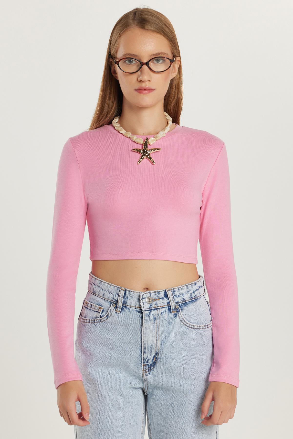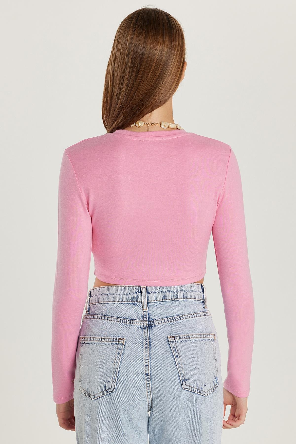 Kadın Slim Fit Modal Kumaş Pamuklu Bisiklet Yaka Pembe Bluz (BYGM2516-15)