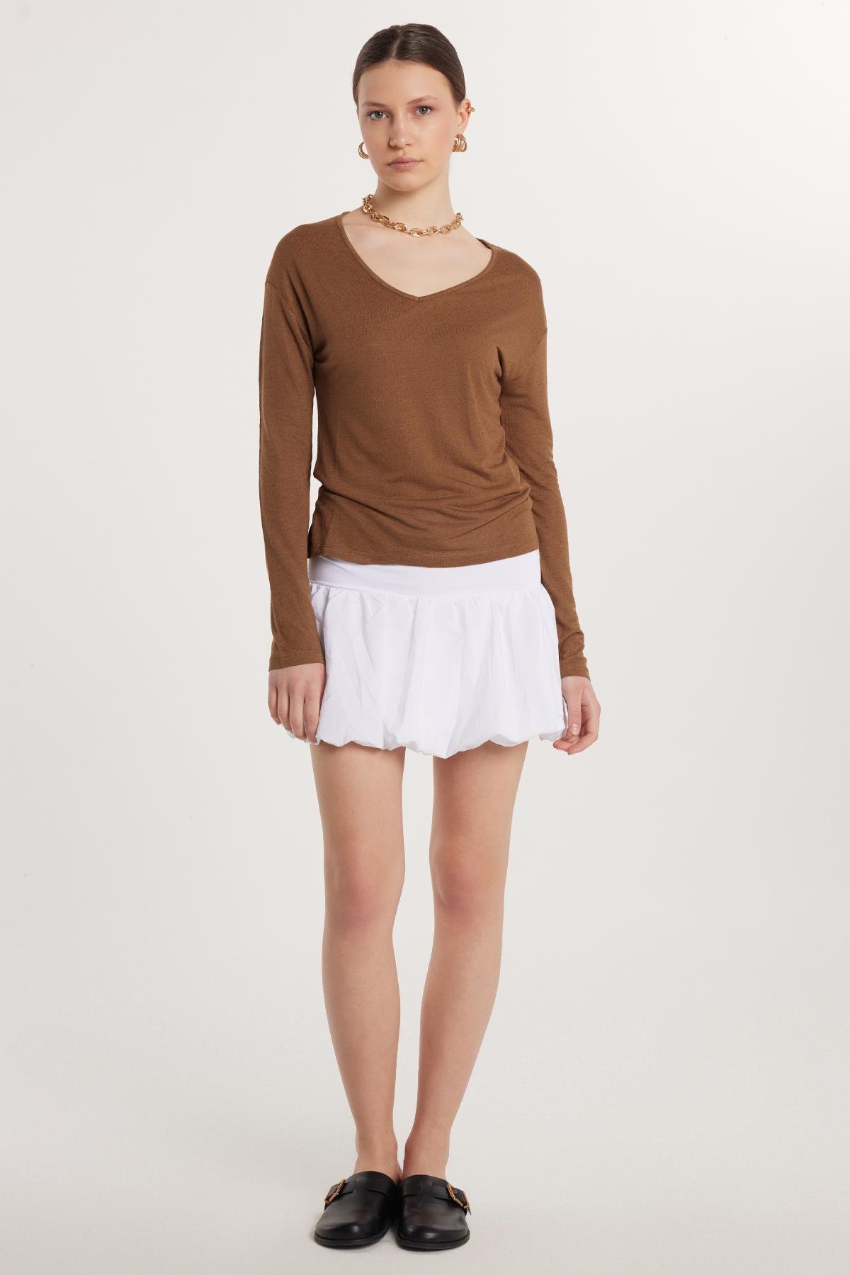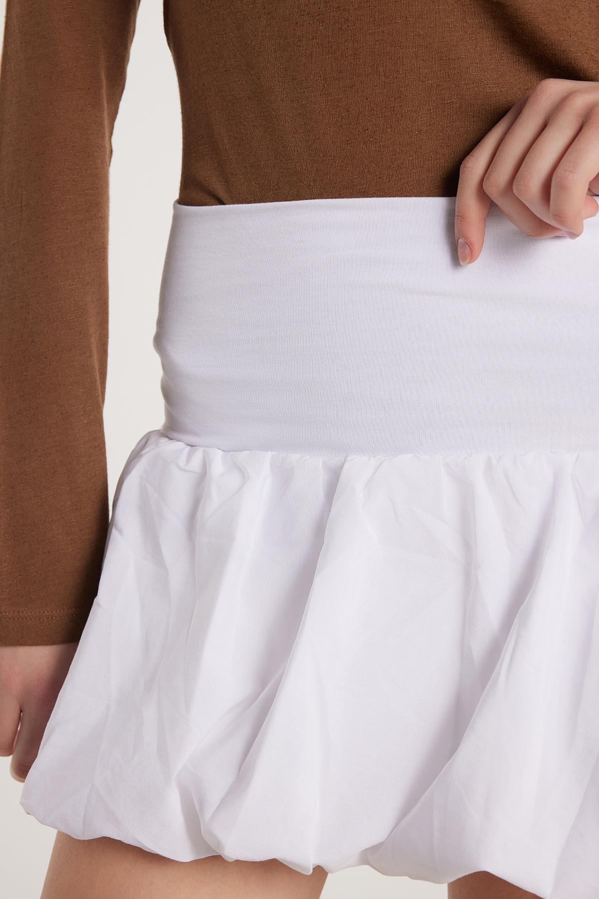 Kadın Slim Fit Pamuklu Lastikli Balon Mini Boy Beyaz Etek (KDN25035-1)