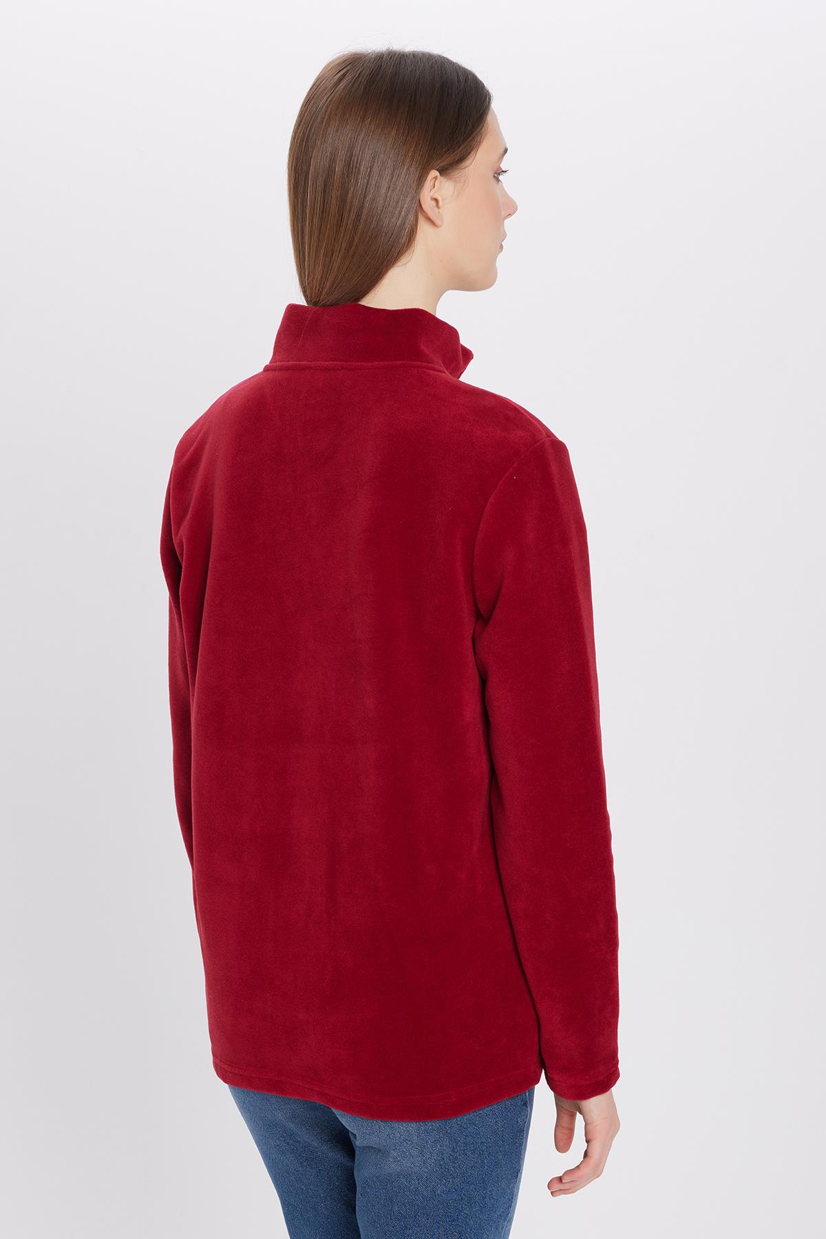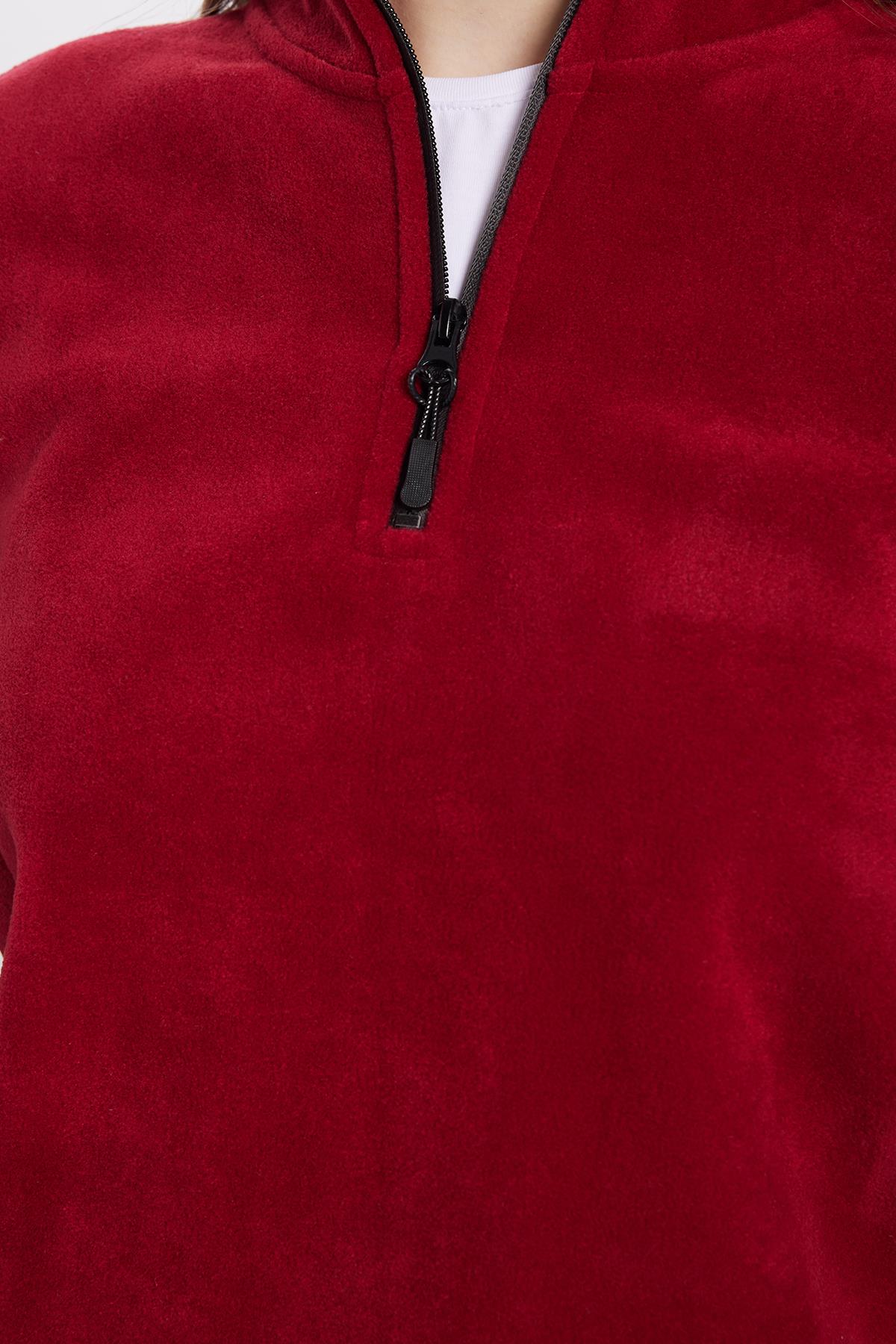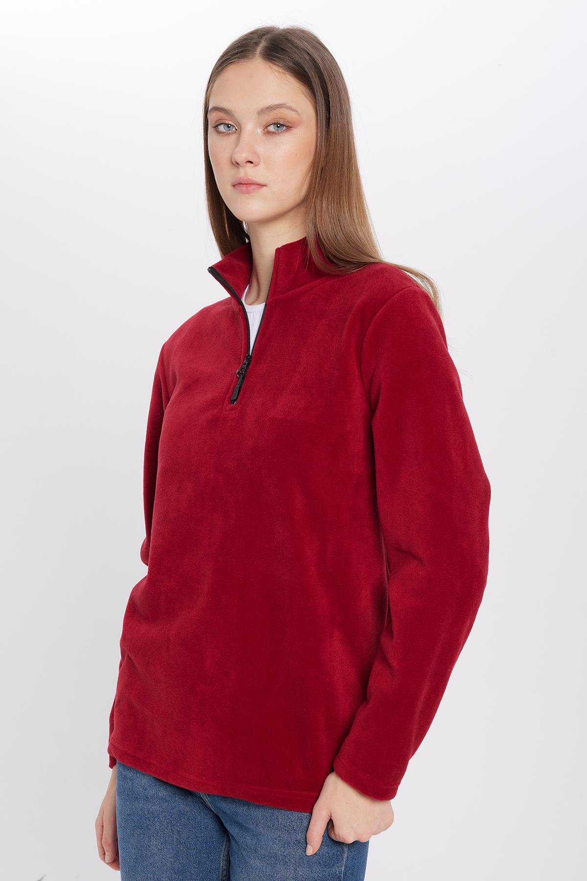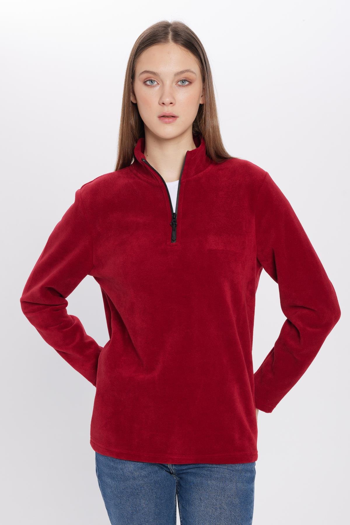 Kadın Standart Fit Anti-pilling Tüylenme Yapmayan Soğuk Geçirmez Bordo Dik Bato Yaka Polar Sweatshirt (SW230007-08)
