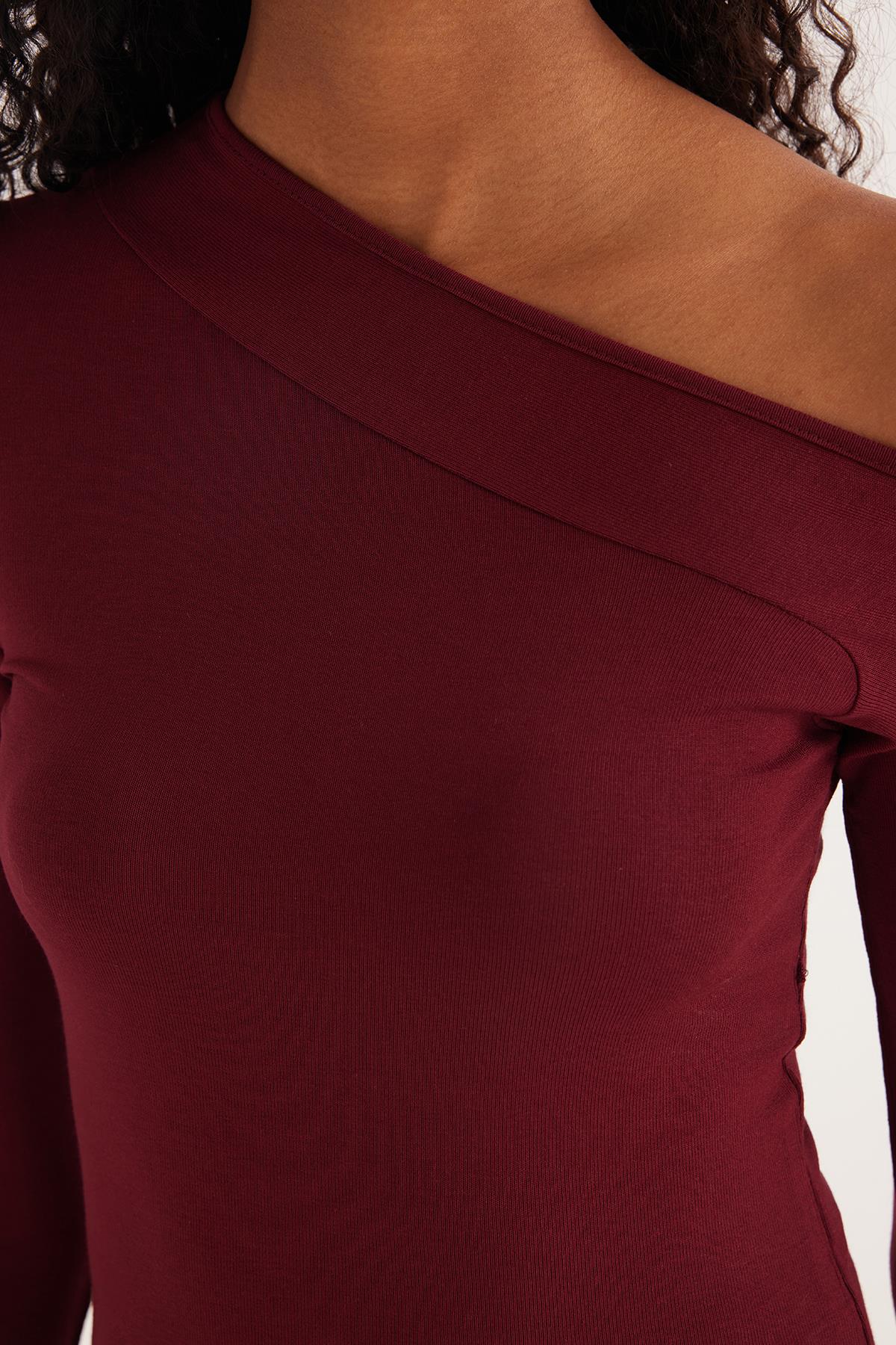 Kadın Standart Fit Asimetrik Yaka Viskon Bordo Bluz (KDN25261-08)