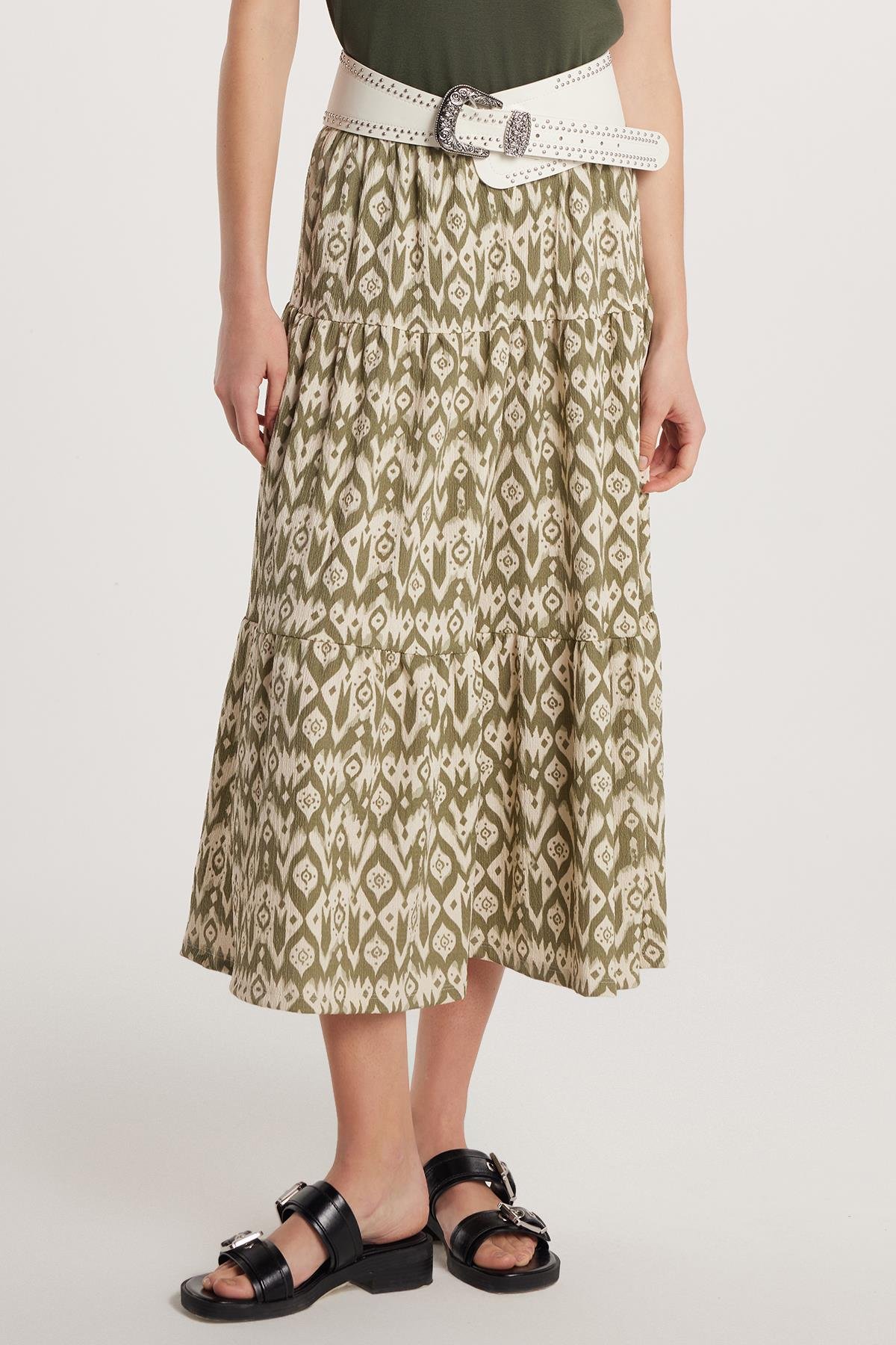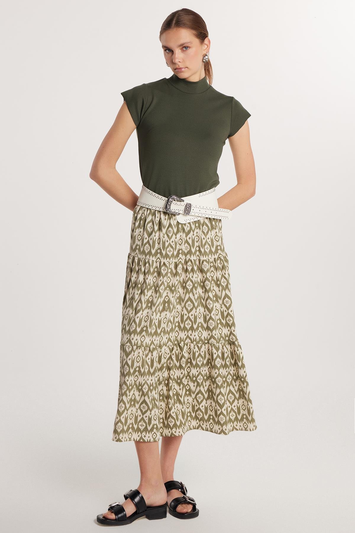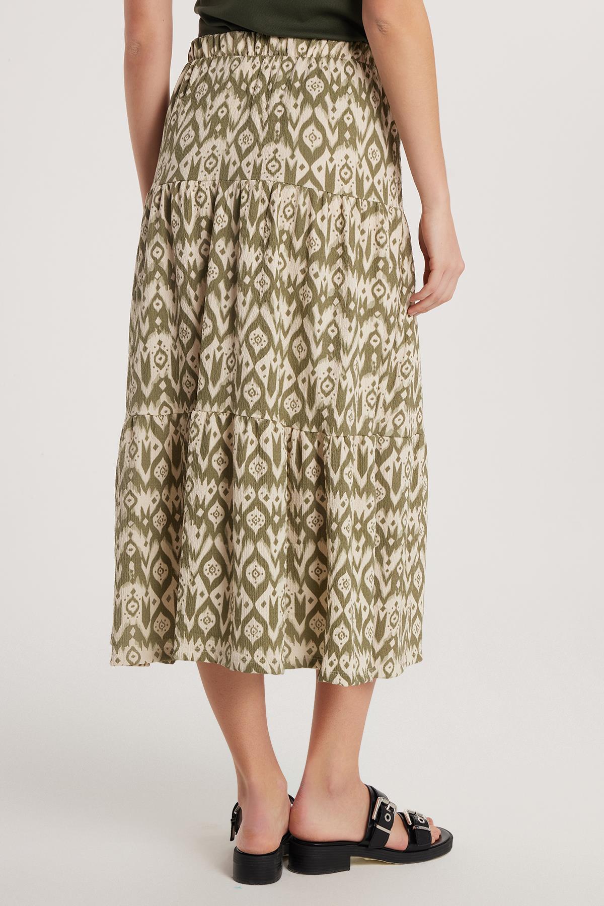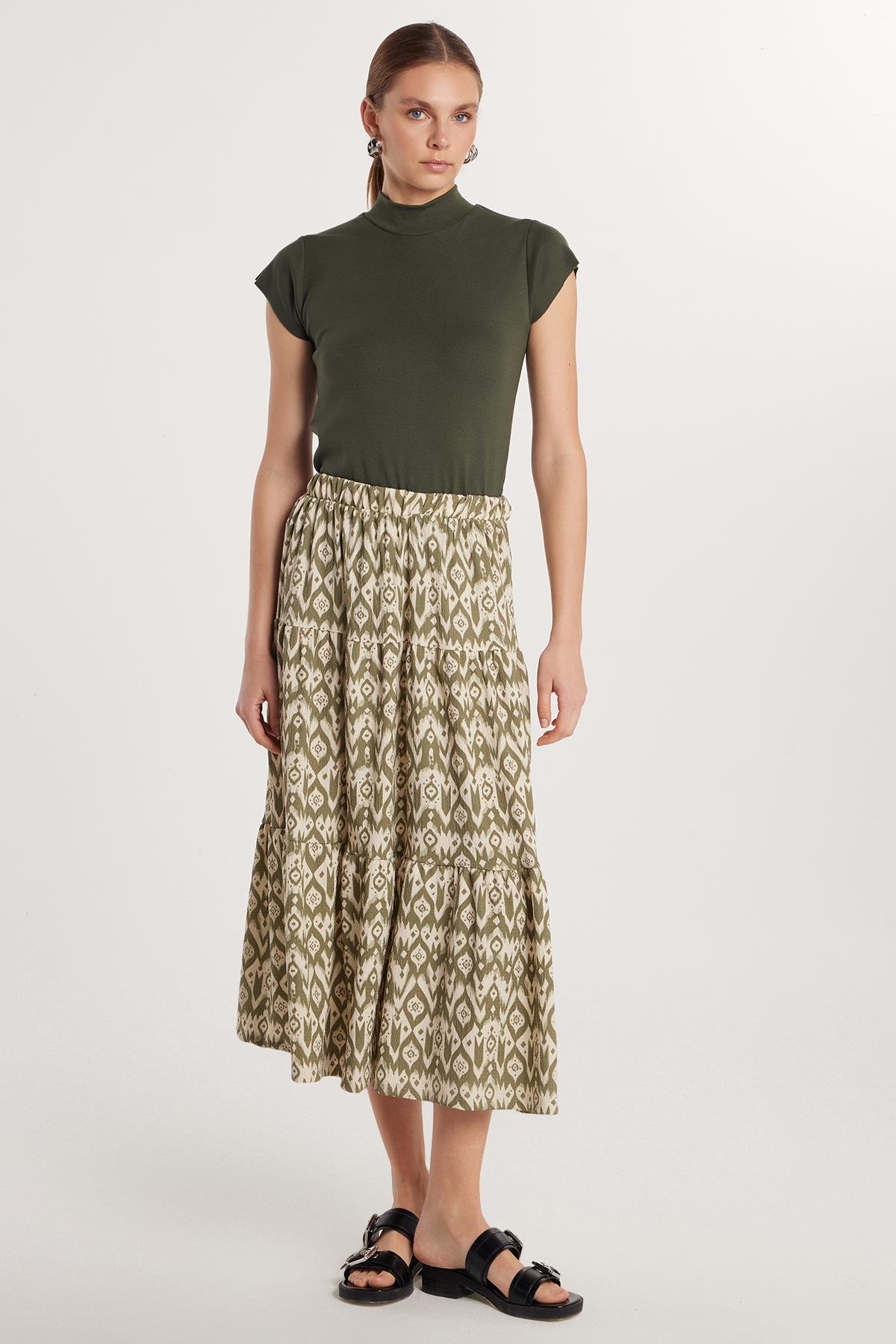 Kadın Standart Fit Beli Lastikli Baskılı Midi Boy Etek (KDN25038-753)