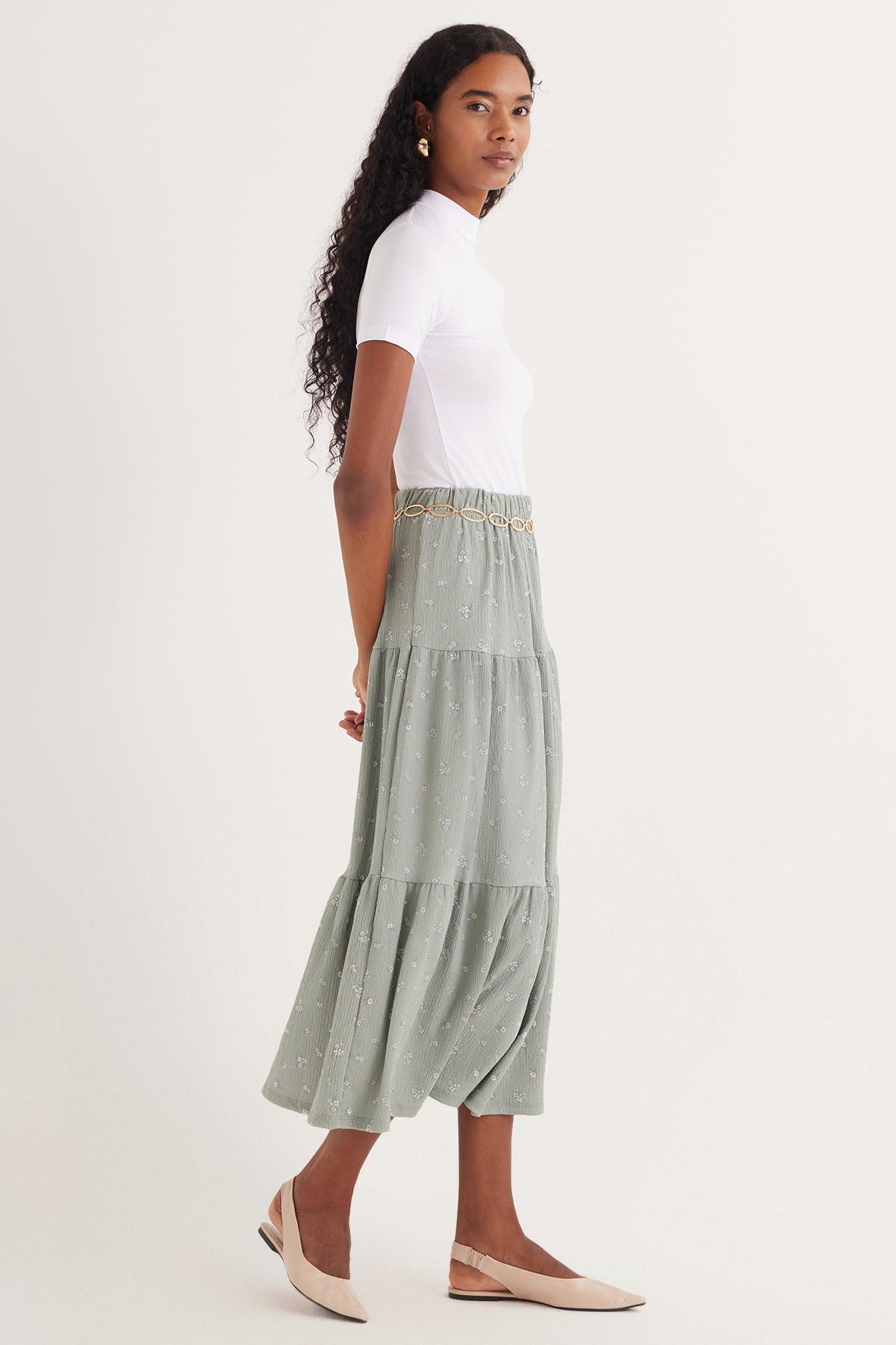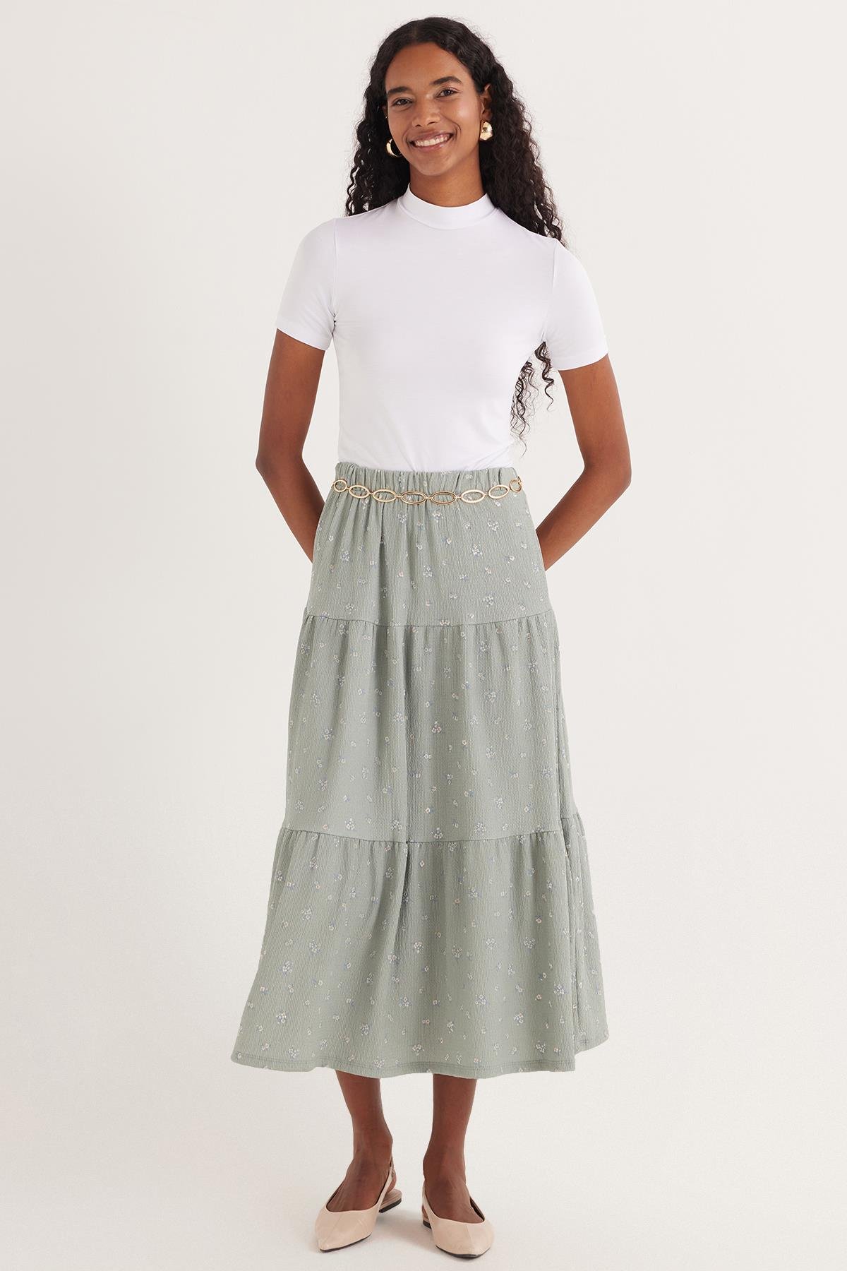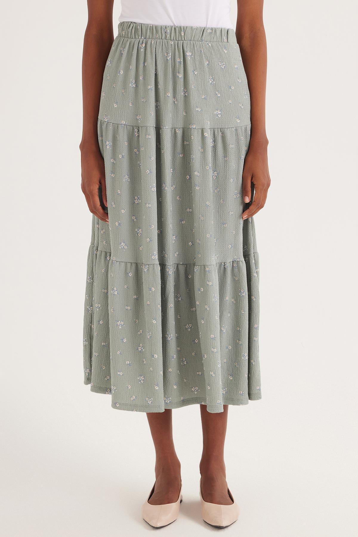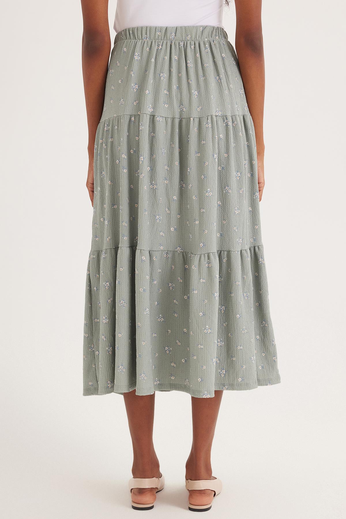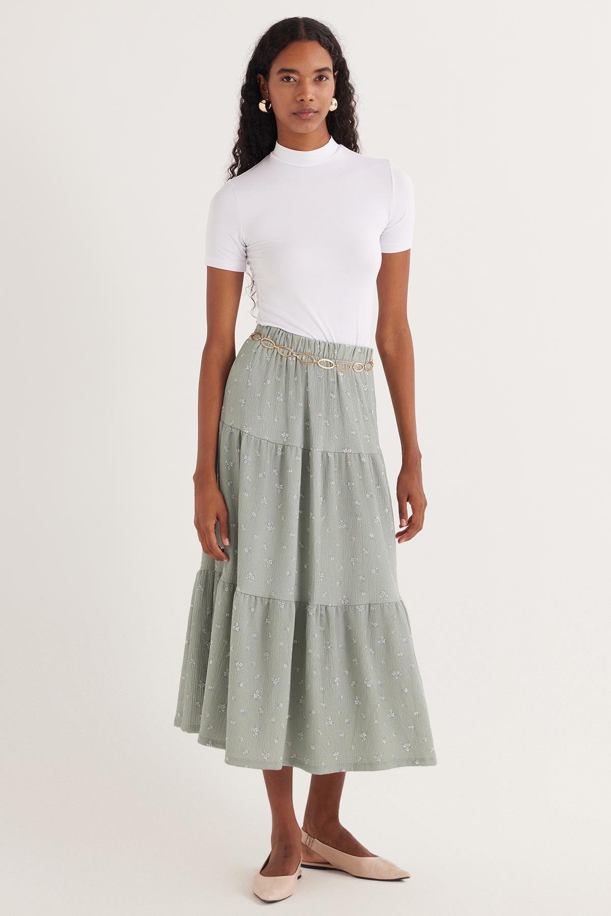 Kadın Standart Fit Beli Lastikli Baskılı Midi Boy Etek (KDN25038-754)