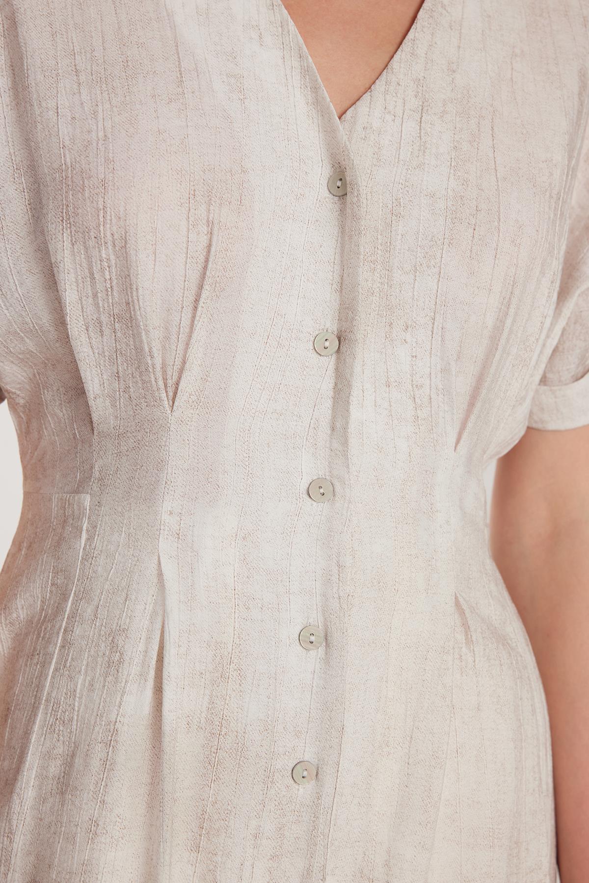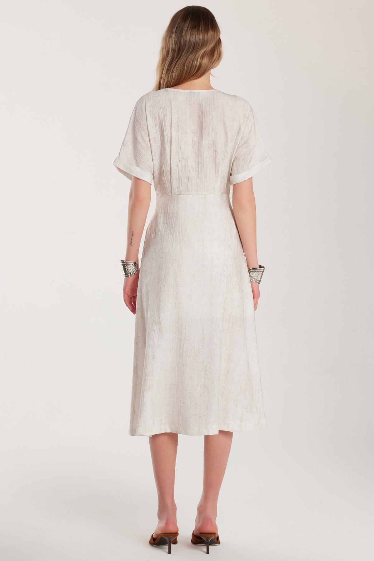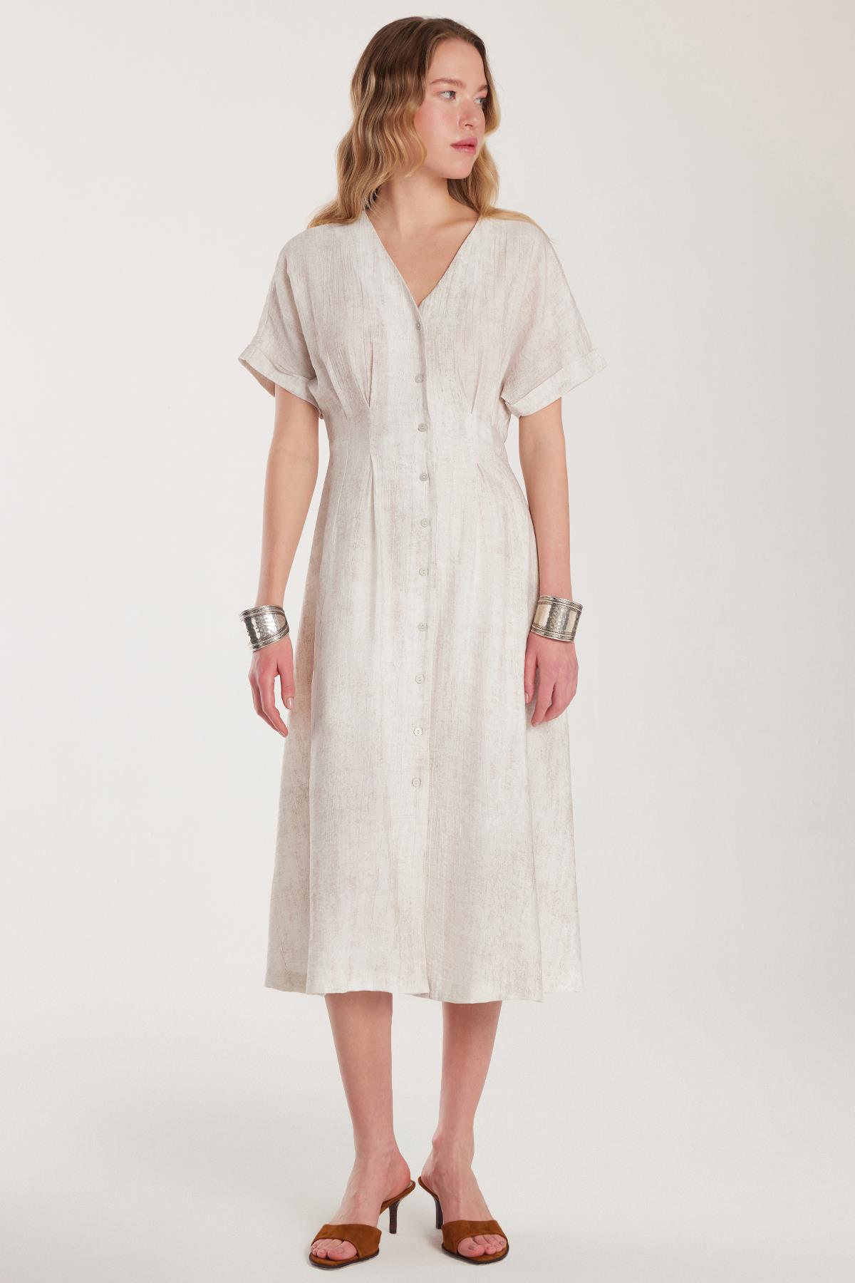 Kadın Standart Fit Düğmeli V Yaka Taş Elbise