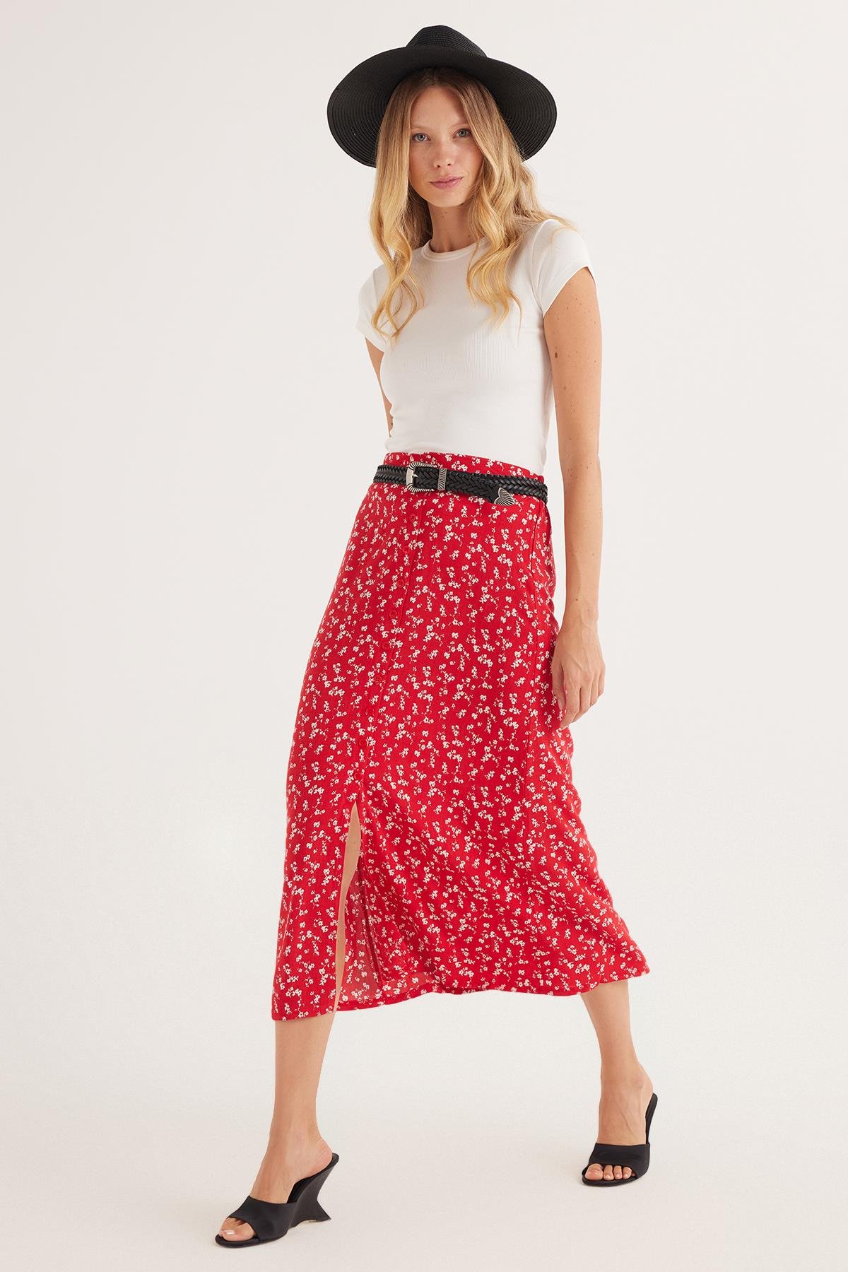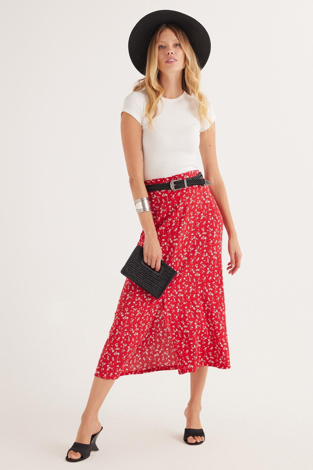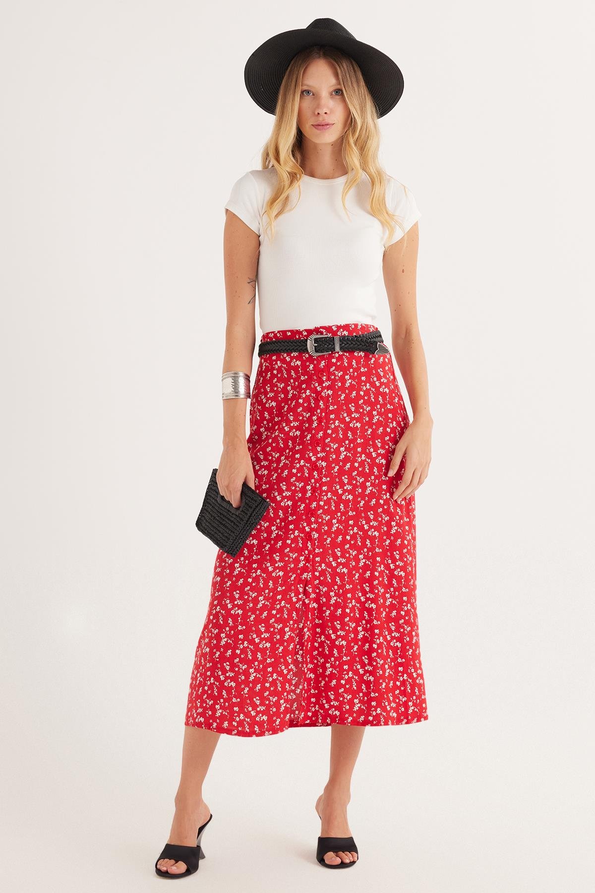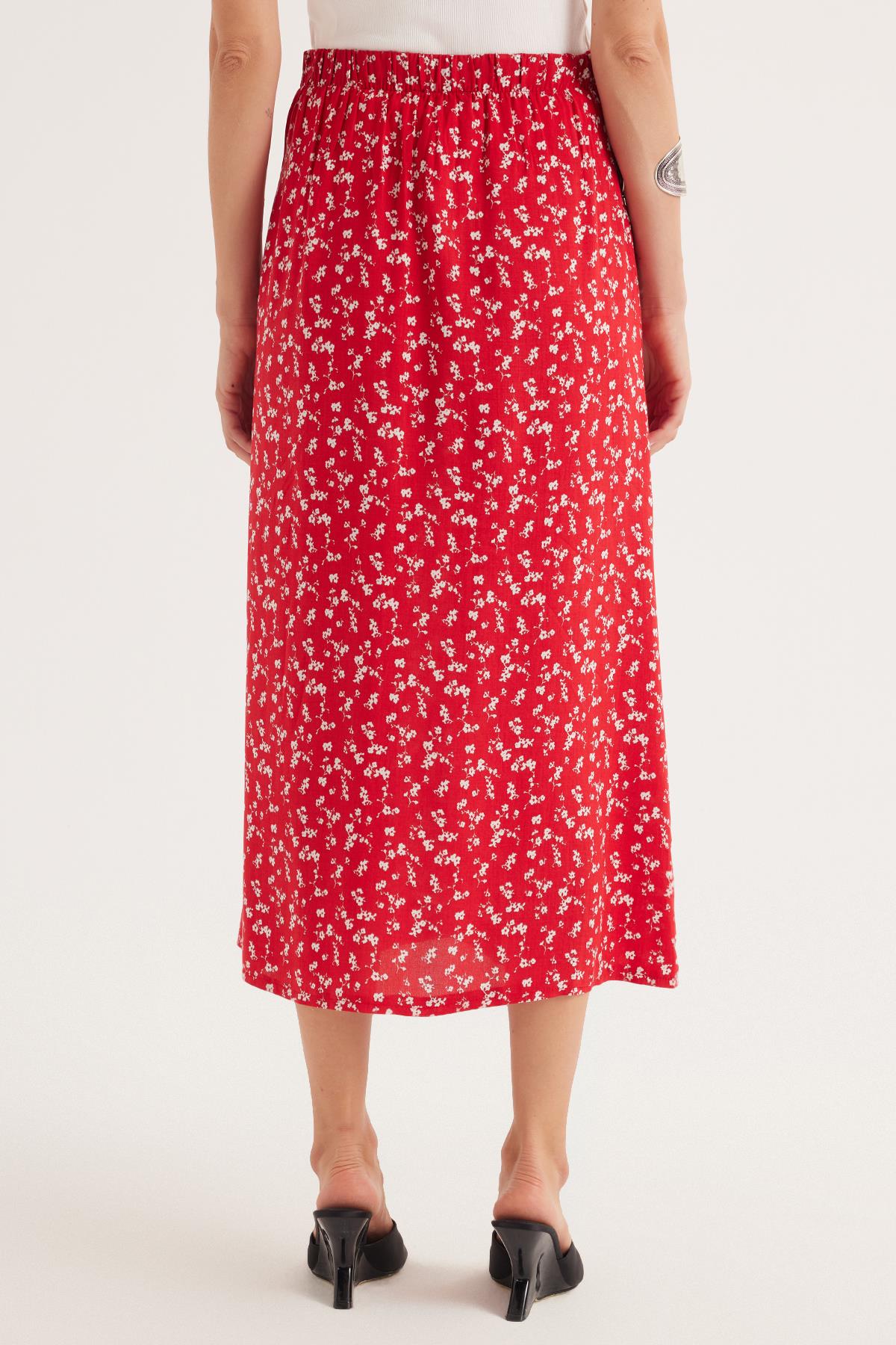 Kadın Standart Fit Düğmeli Viskon Lastikli Baskılı Midi Boy Etek (KDN25033-905)