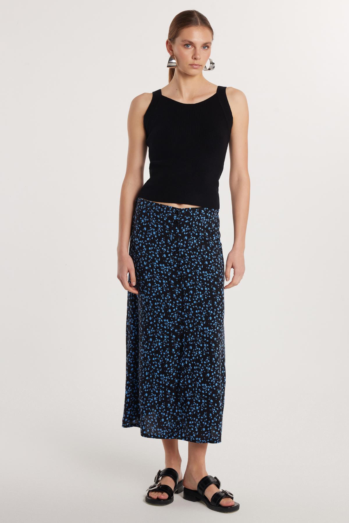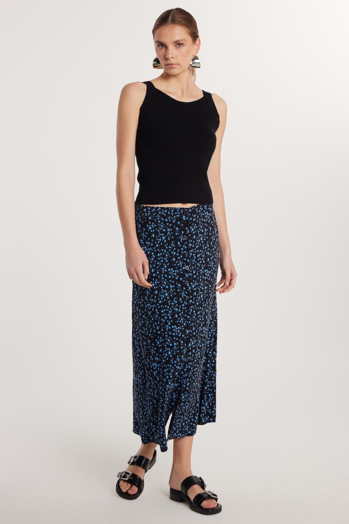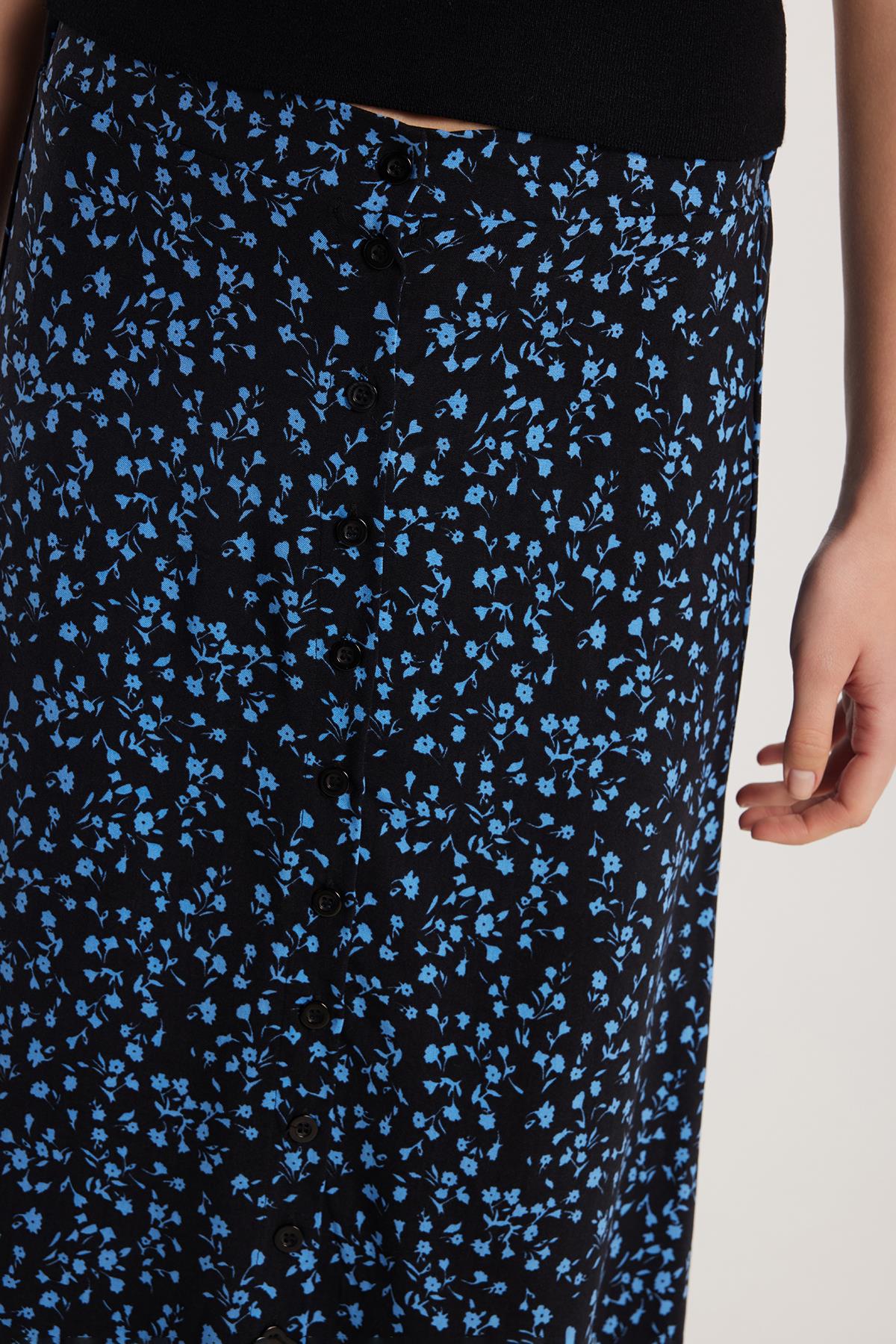Kadın Standart Fit Düğmeli Viskon Lastikli Baskılı Midi Boy Etek (KDN25033-906)