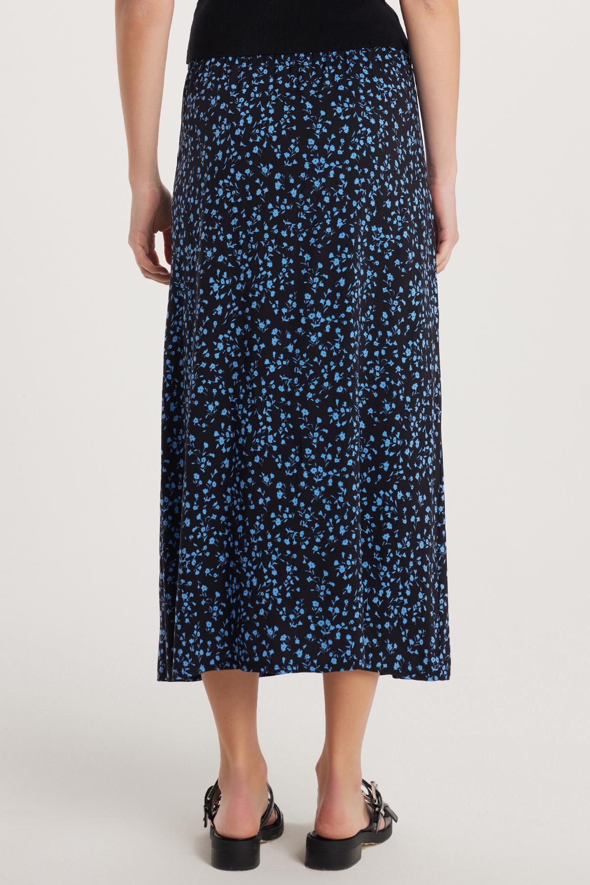 Kadın Standart Fit Düğmeli Viskon Lastikli Baskılı Midi Boy Etek