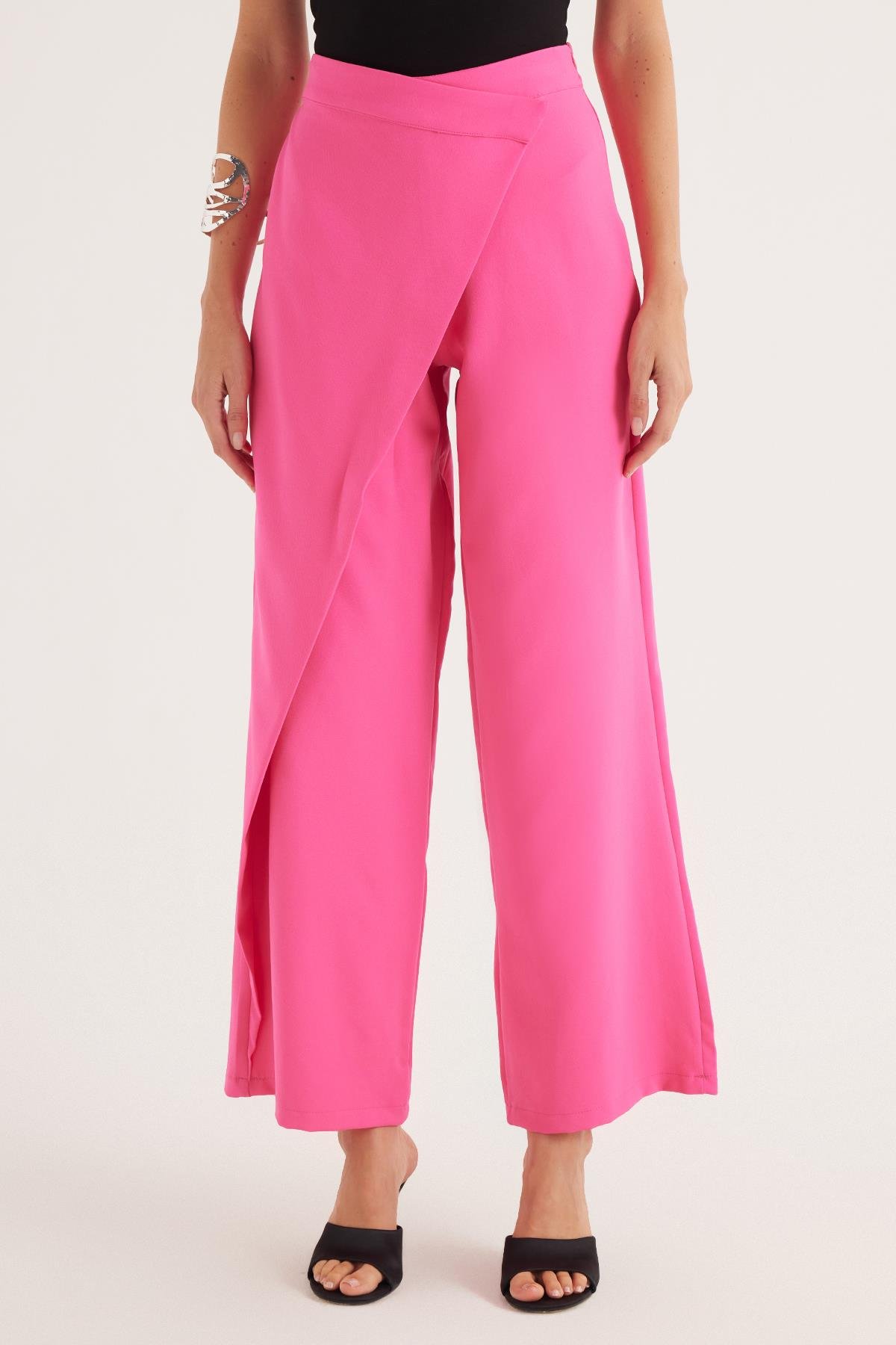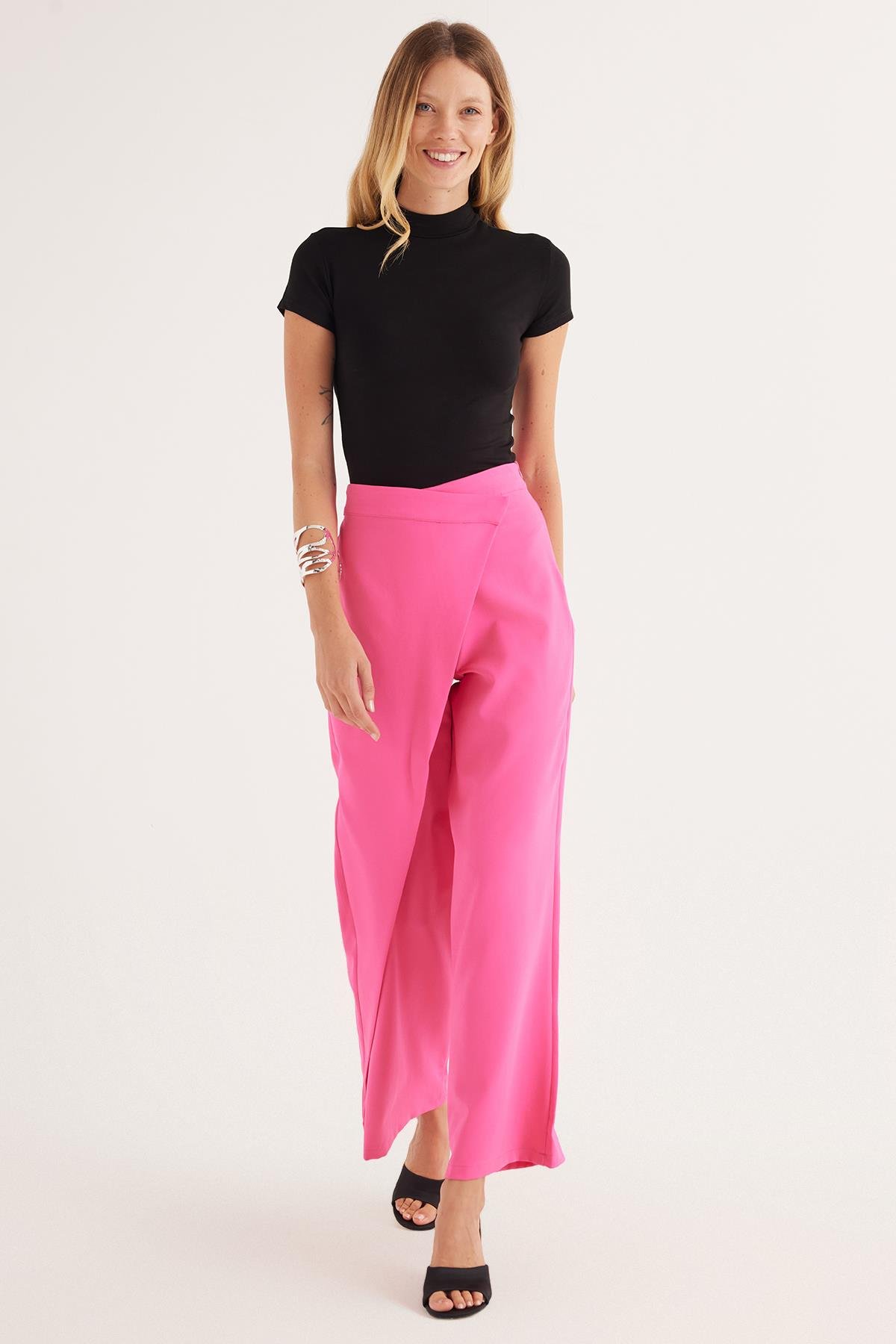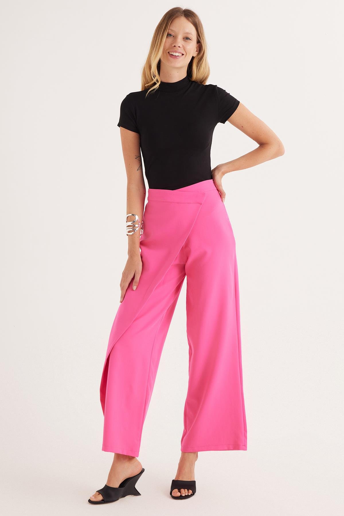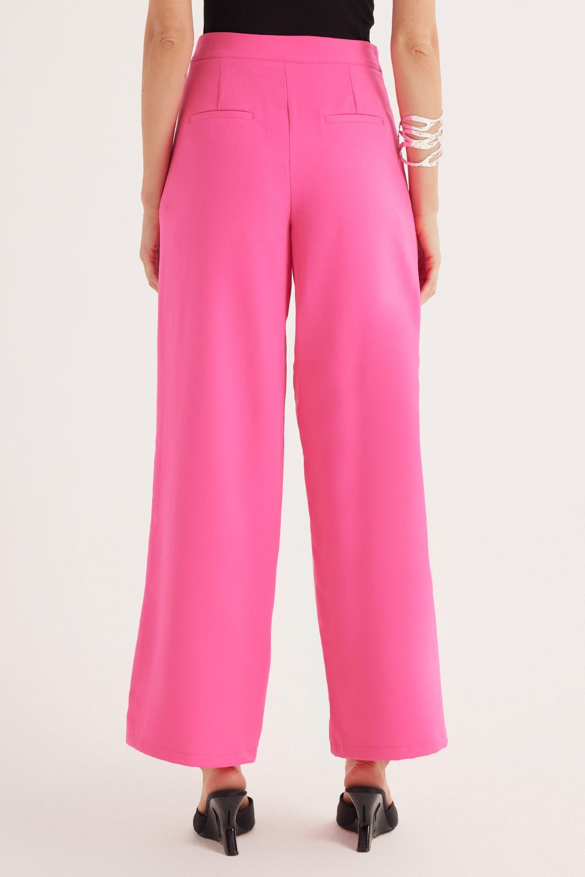 Kadın Standart Fit Geniş Paça Fuşya Double Pantolon